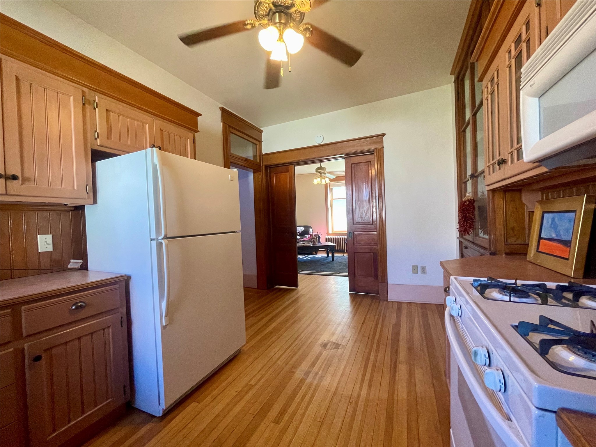 Stunning 1898 stone Queen Anne style home has a history of being the residence and office of the first female doctor in New Mexico, Dr. Alice Rice. The main part of the house has 3 bedrooms and one and a half bathrooms, with hard wood floors, built in display cabinets, transom windows, large pocket doors, a spacious living room and eat-in kitchen, as well as a little dining room/office. The downstairs bedroom has a laundry area in the closet. The attached home has a living room, large kitchen, office/den, two bedrooms, one and a half bathrooms, and was formerly the office space for Dr. Alice Rice, but was converted to an accessory dwelling unit in the 1990s when the home was completely updated, including double paned windows, new wiring, new plumbing, new insulation, and drywall. The ADU is currently rented on a month to month basis and comes complete with separate electric meter, separate water heater, and laundry in the half bathroom, Charm abounds with a truly park like yard with numerous covered porches and balconies, antique style metal fencing, covered grape trellis, many perennials, pathways, and stone patio. The basement is easily accessible and spacious. And with a Propanel roof, 3 car garage, and large alley access what more could you ask for?