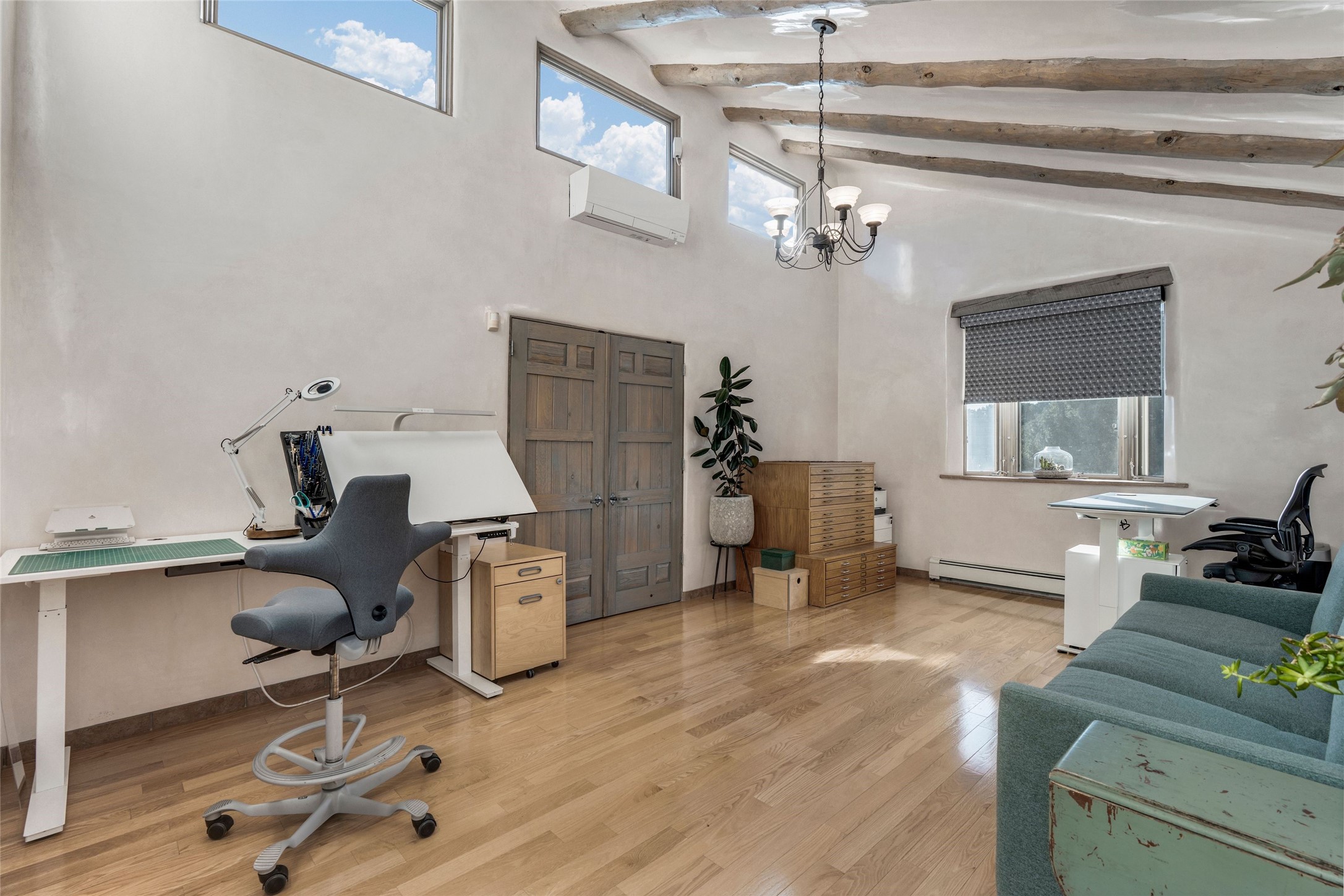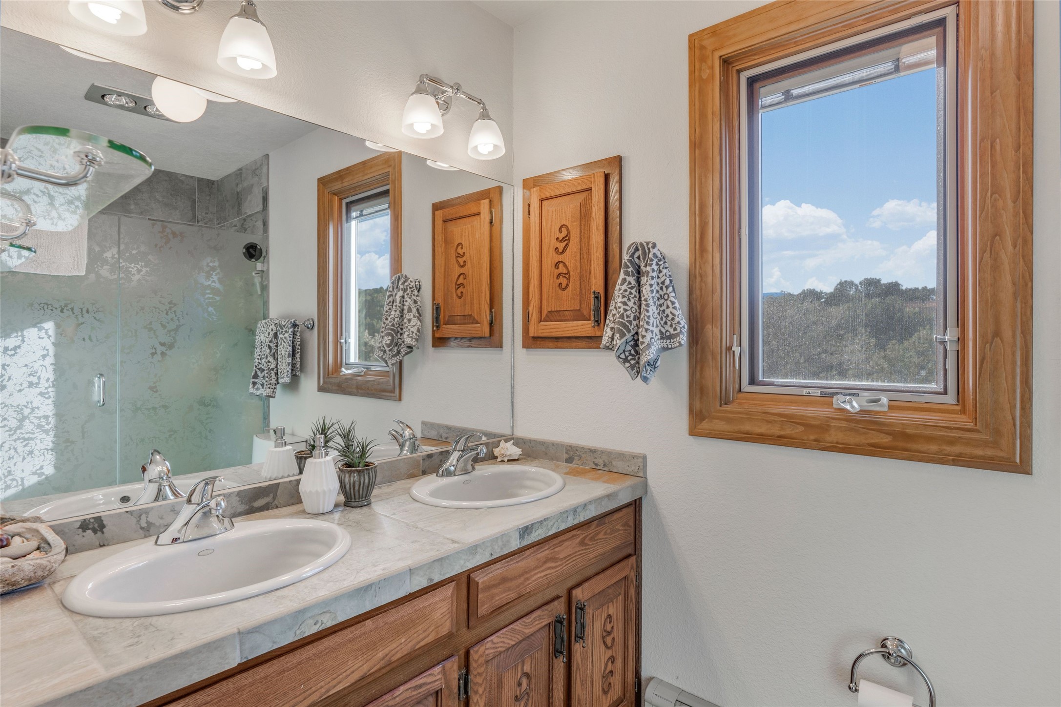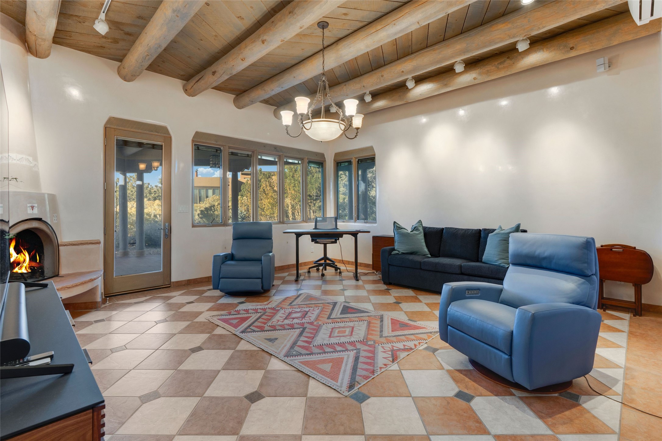 This authentic Santa Fe Home has Mountain Views and Timeless Details.Just five minutes from the Santa Fe Plaza, this classic pueblo-style home is nestled in the north hills with beautiful views of Sun and Moon Mountain. Traditional New Mexico finishes include hand-troweled plaster walls, vigas, tile and wood floors, and five kiva fireplaces throughout. The flexible floor plan offers spacious living and dining areas, two kitchens, cozy private spaces, and excellent indoor-outdoor flow. Expansive portals wrap around the home, providing multiple areas to relax and take in the surrounding mountain scenery. With no HOA and on over an acre of land there is room to expand or add a casita. Additional conveniences include a 2-car garage, air conditioning, steam shower and hot tub for star-gazing.A true blend of old-world craftsmanship and modern livability, this home captures the essence of Santa Fe style--serene, soulful, and close to everything.