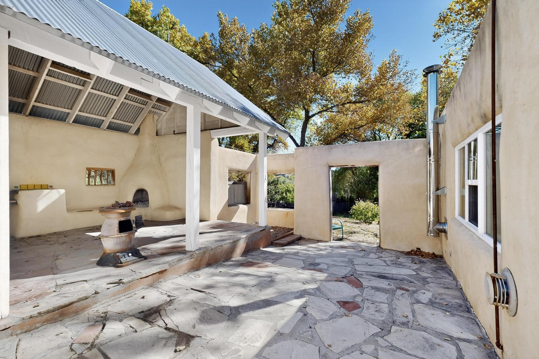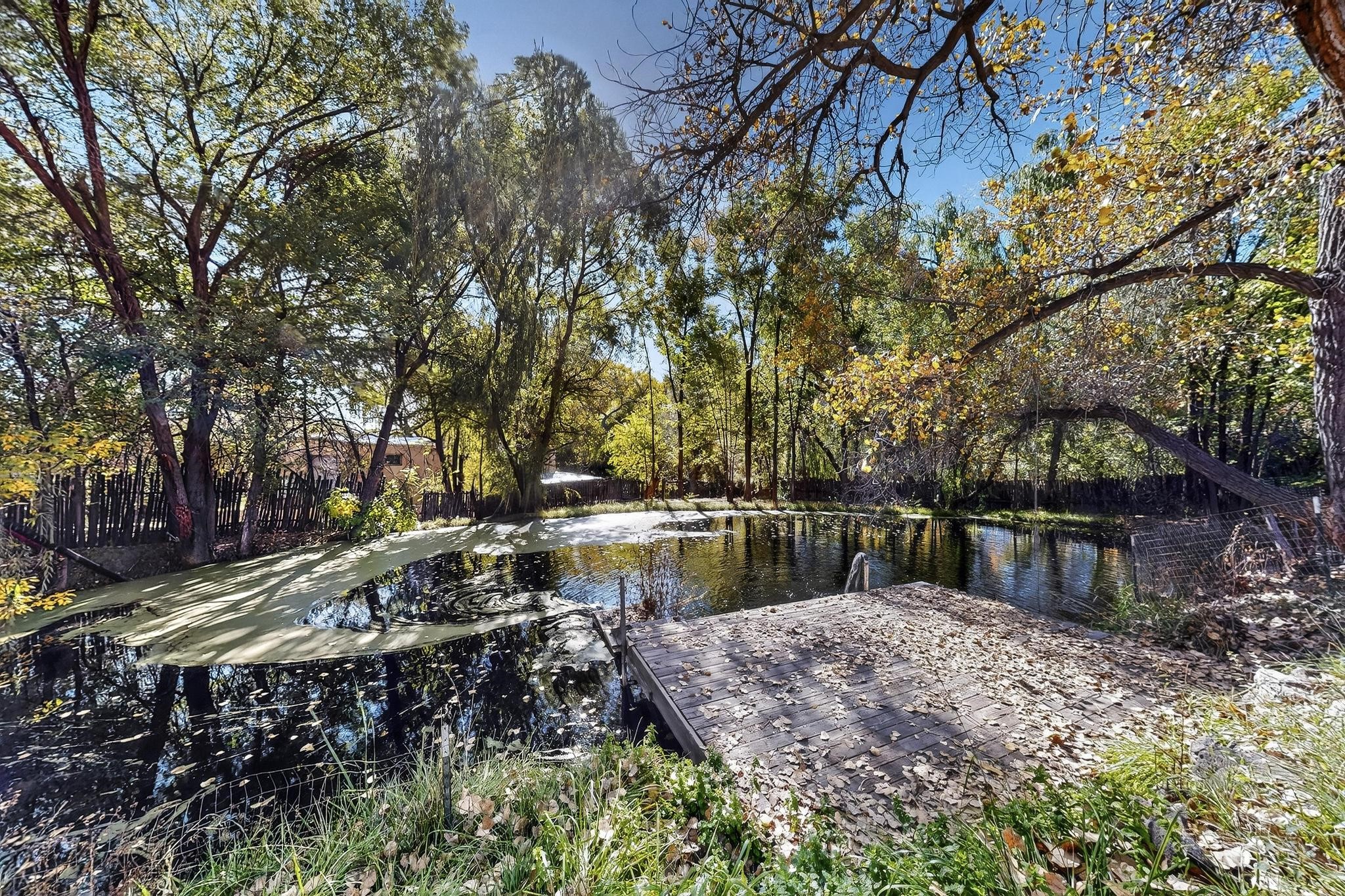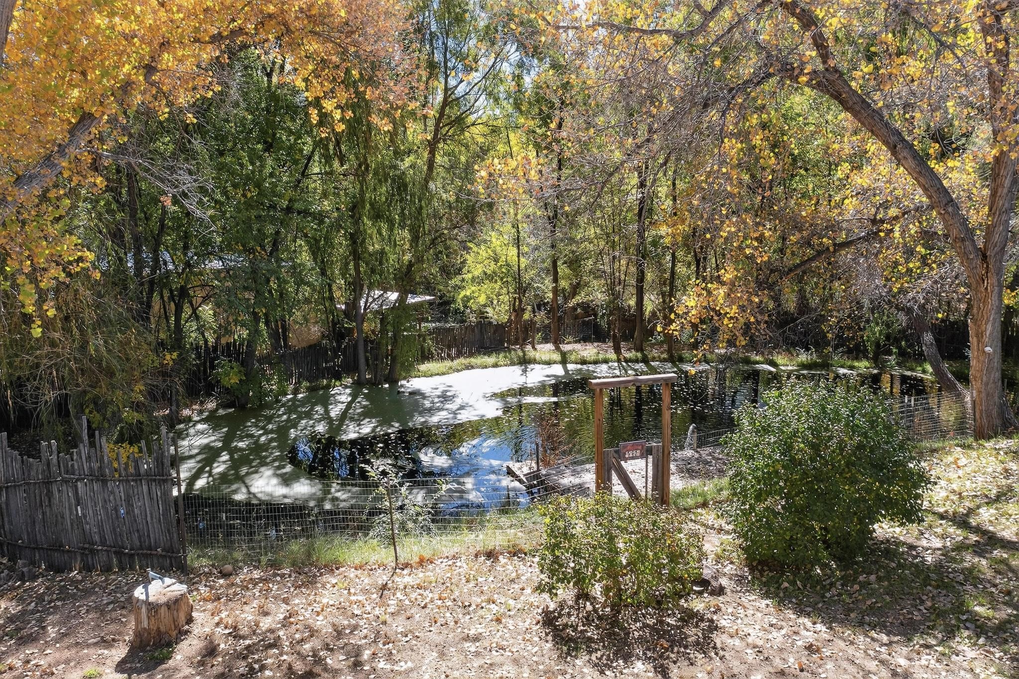 Historic Adobe Retreat with Private Pond in La CienegaTucked away in the heart of the historic village of La Cienega, this one-of-a-kind adobe home exudes timeless Southwestern charm, rich history, and a serene natural setting. Originally built in the 1940s and lovingly owned since 1976, the property reflects nearly 50 years of thoughtful additions, creativity, and connection to the land.Set on .74 acres, the home features 2 bedrooms and 1 bath in the main house, plus a private attached mother-in-law suite--ideal as a guest casita, studio, or home office--with its own entrance, kitchenette, full bath, and fenced yard. The main home offers a spacious living room, full kitchen, and large bath with a clawfoot tub. Classic adobe craftsmanship shines throughout, highlighted by four traditional kiva fireplaces that add warmth and ambiance.Expanded over time, the home includes a sunken living room with pond views, an enlarged kitchen and bedroom, and a covered outdoor summer kitchen with patios, porches, and an outdoor fireplace--perfect for entertaining or relaxing under the stars.At the heart of the property lies a 100-year-old spring-fed pond with a sunning deck and aeration system, surrounded by mature trees, native grasses, and seasonal blooms. Whether for swimming, fishing, floating, or simply soaking in serenity, it's a truly special retreat.Conveniently located just 20-25 minutes from downtown Santa Fe and near the airport, the home offers peaceful country living with city access. Ideally positioned between Ojo Santa Fe Spa & Resort and Rancho de las Golondrinas.Recent upgrades include roof improvements by Northway Roofing (warranty through Feb 2027) and well maintenance by Luhan Water Well Services (June 2025). Offered as-is, this is a rare opportunity to own and personalize a historic adobe in one of Northern New Mexico's most cherished communities.