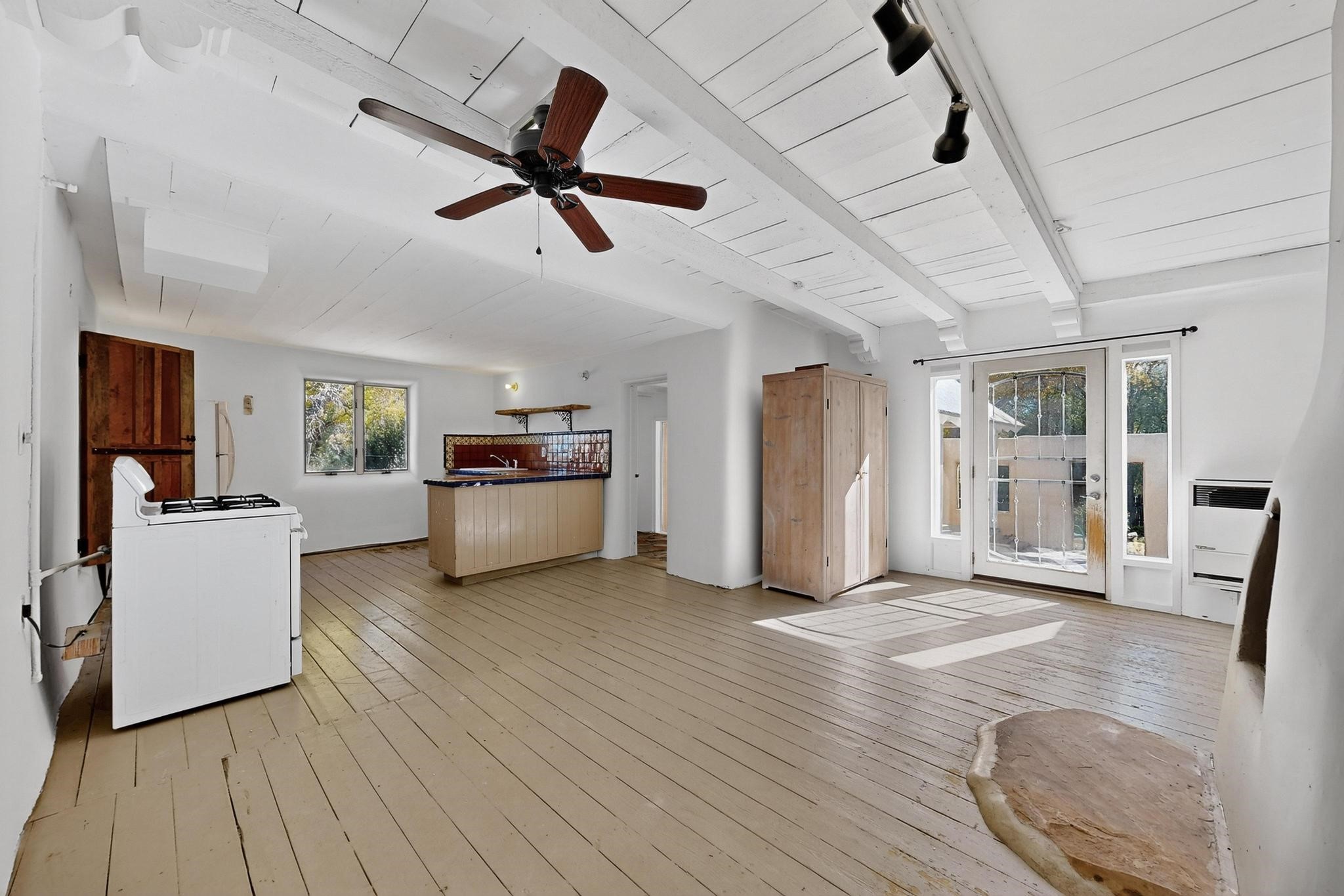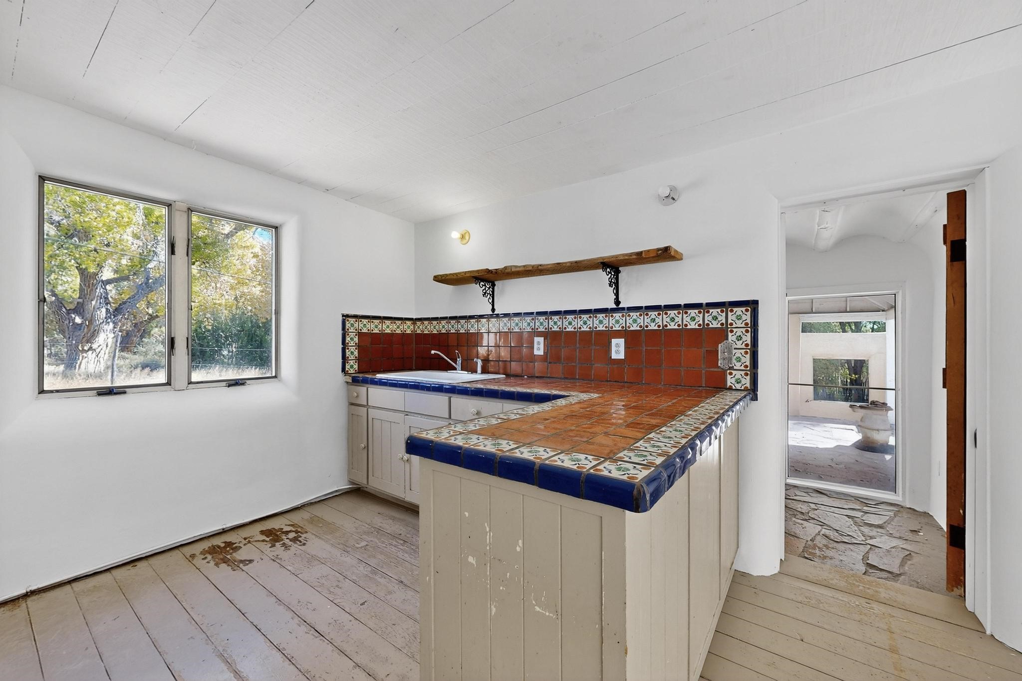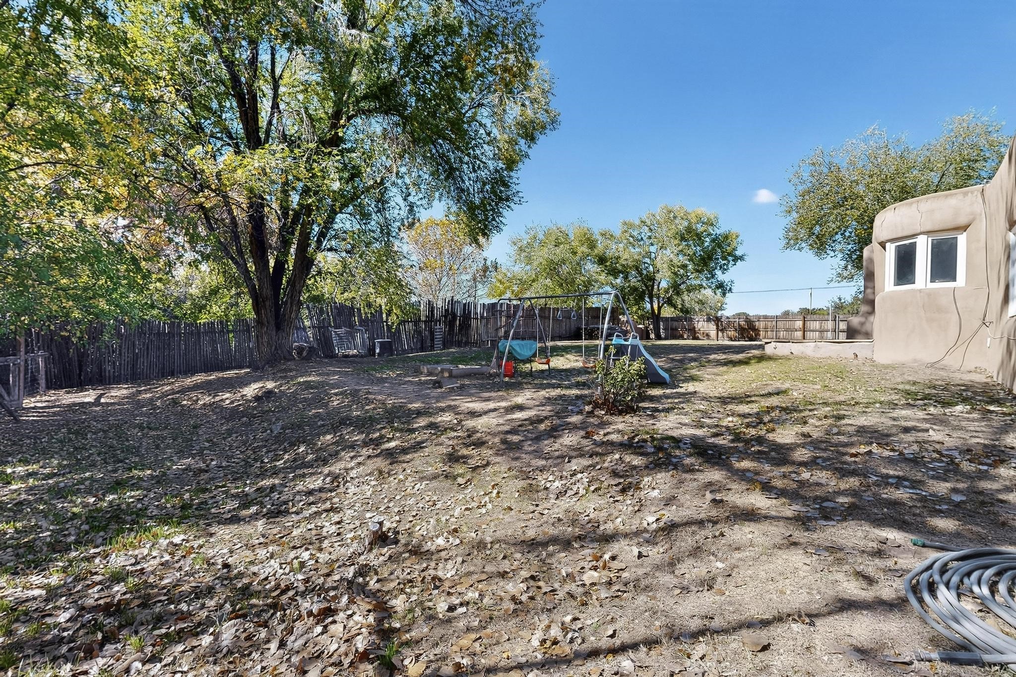 Historic Adobe Retreat with Private Pond in La CienegaTucked away in the heart of the historic village of La Cienega, this one-of-a-kind adobe home exudes timeless Southwestern charm, rich history, and a serene natural setting. Originally built in the 1940s and lovingly owned since 1976, the property reflects nearly 50 years of thoughtful additions, creativity, and connection to the land.Set on .74 acres, the home features 2 bedrooms and 1 bath in the main house, plus a private attached mother-in-law suite--ideal as a guest casita, studio, or home office--with its own entrance, kitchenette, full bath, and fenced yard. The main home offers a spacious living room, full kitchen, and large bath with a clawfoot tub. Classic adobe craftsmanship shines throughout, highlighted by four traditional kiva fireplaces that add warmth and ambiance.Expanded over time, the home includes a sunken living room with pond views, an enlarged kitchen and bedroom, and a covered outdoor summer kitchen with patios, porches, and an outdoor fireplace--perfect for entertaining or relaxing under the stars.At the heart of the property lies a 100-year-old spring-fed pond with a sunning deck and aeration system, surrounded by mature trees, native grasses, and seasonal blooms. Whether for swimming, fishing, floating, or simply soaking in serenity, it's a truly special retreat.Conveniently located just 20-25 minutes from downtown Santa Fe and near the airport, the home offers peaceful country living with city access. Ideally positioned between Ojo Santa Fe Spa & Resort and Rancho de las Golondrinas.Recent upgrades include roof improvements by Northway Roofing (warranty through Feb 2027) and well maintenance by Luhan Water Well Services (June 2025). Offered as-is, this is a rare opportunity to own and personalize a historic adobe in one of Northern New Mexico's most cherished communities.