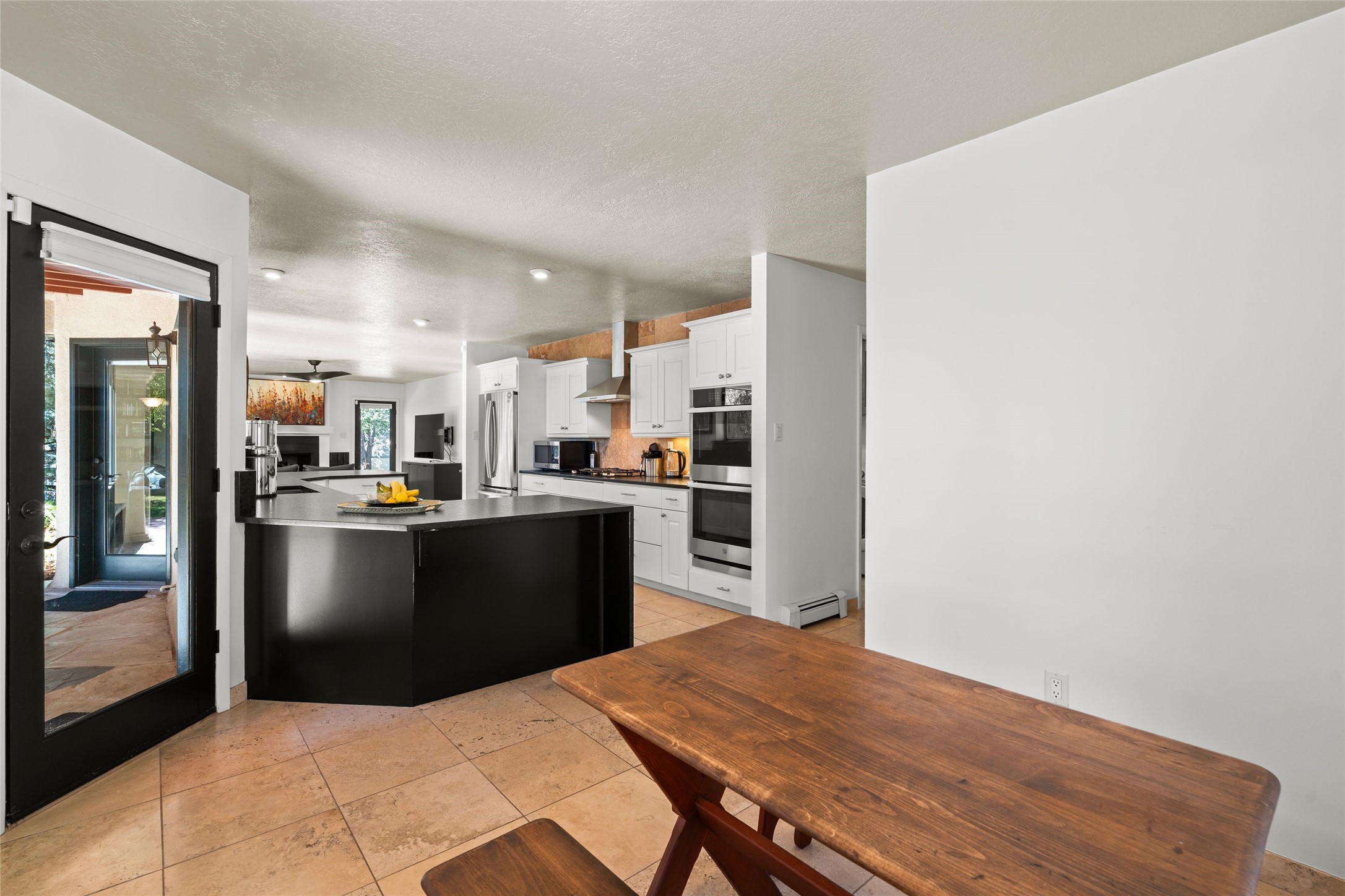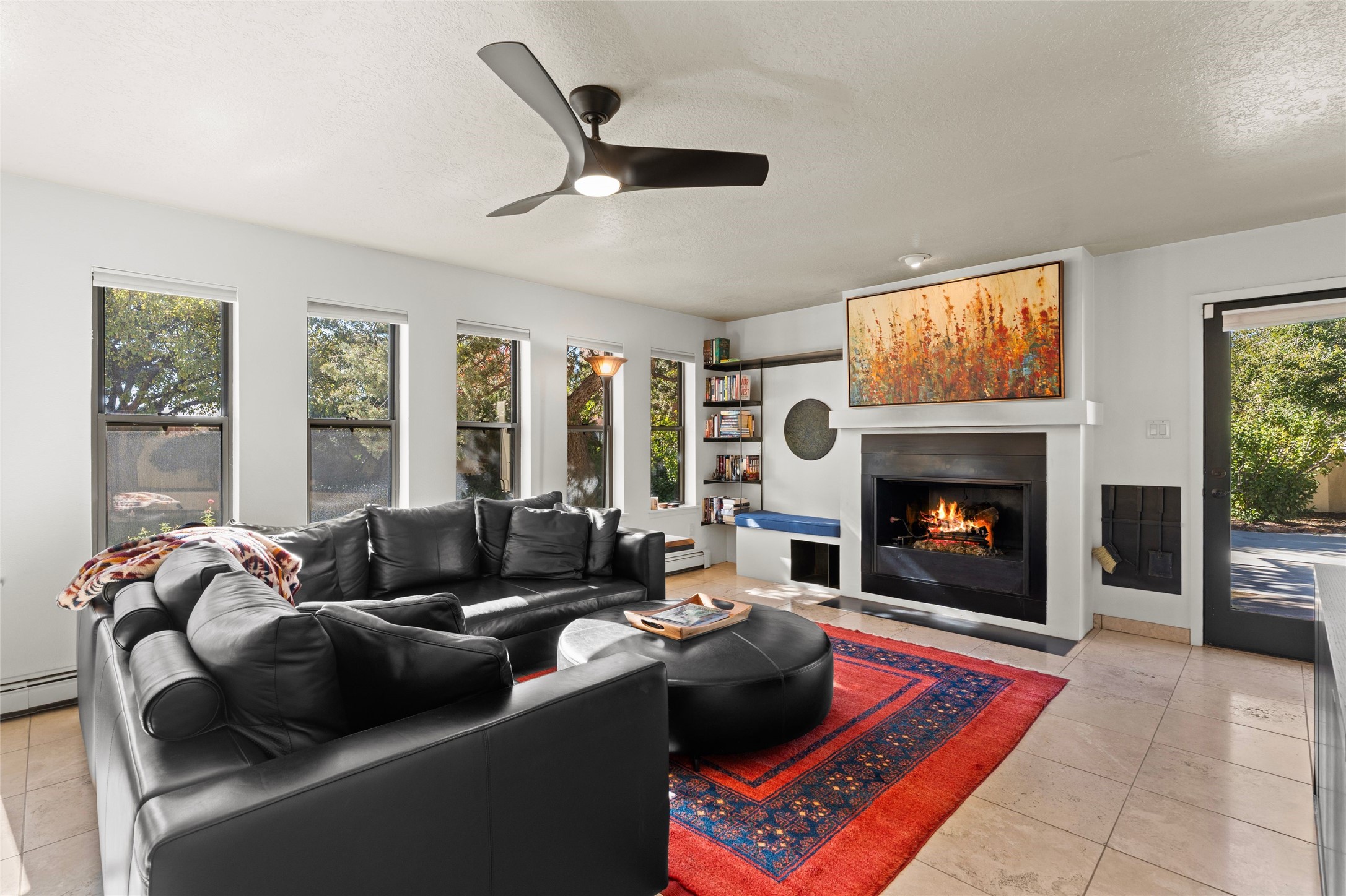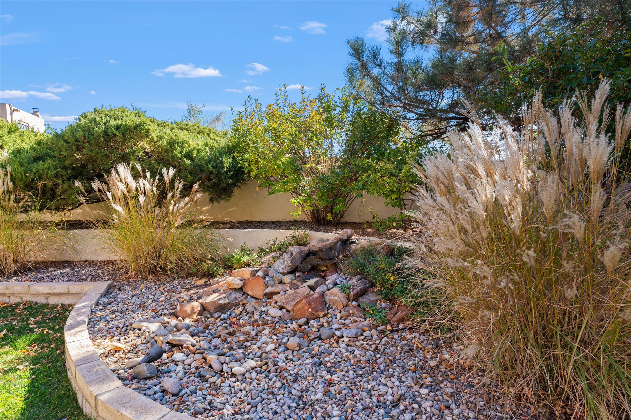 Views, views, views. Breathtaking Sangre de Cristo Views from a Refined Contemporary Mediterranean HomePerched in the desirable Via Caballero III neighborhood, this exceptional 3,660 sq. ft. residence captures panoramic views of the Sangre de Cristo Mountains and the twinkling city lights of Santa Fe. Thoughtfully renovated in 2008, 2016, and 2017, the home blends elegant Mediterranean architecture with modern sophistication.The heart of the home features a sleek, remodeled kitchen with a bright breakfast area and an expansive family room--perfect for gatherings or quiet mornings enjoying the mountain vistas. Travertine floors, energy-efficient windows, custom lighting, and designer interior finishes create a seamless, refined atmosphere throughout.The spacious primary suite offers a serene sitting area, a luxurious bath, and a 15-foot custom California Closet. Step onto the private covered balcony to experience the breathtaking sunsets and sweeping mountain panorama--a daily reminder of Santa Fe's beauty.The flexible 4/5-bedroom layout accommodates a variety of lifestyles, currently configured with three bedrooms plus a study/exercise room, with a generous game room that efficiently serves as a fifth bedroom or guest suite.Outdoor living is equally inviting, with a flagstone-paved portal and terrace ideal for entertaining, walled and landscaped gardens with pion and fruit trees on timed irrigation, and a charming fountain that adds a peaceful ambiance. The backyard is a true sanctuary--private, verdant, and ideally suited for relaxation or play.Experience the magic of Santa Fe's mountain light from a home designed to celebrate it at every turn.