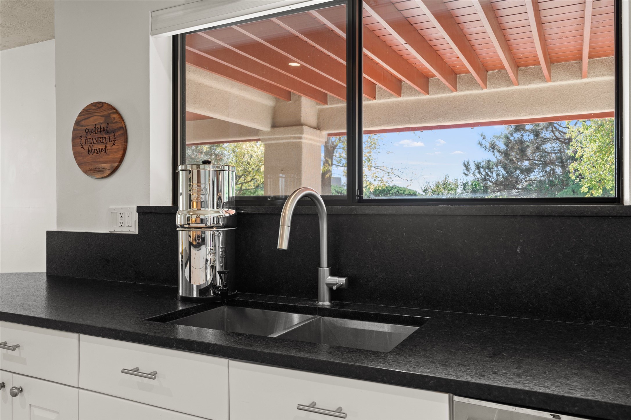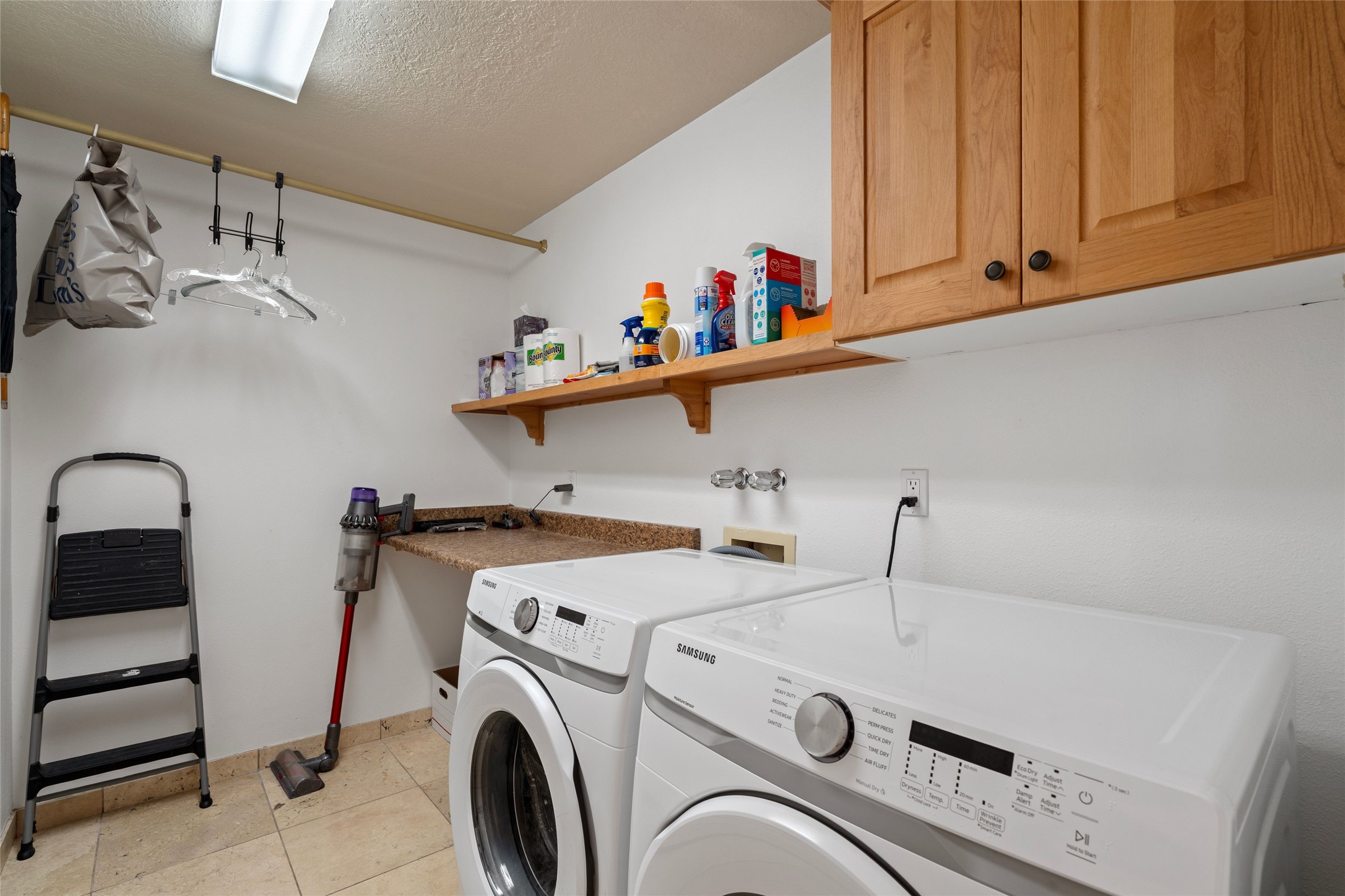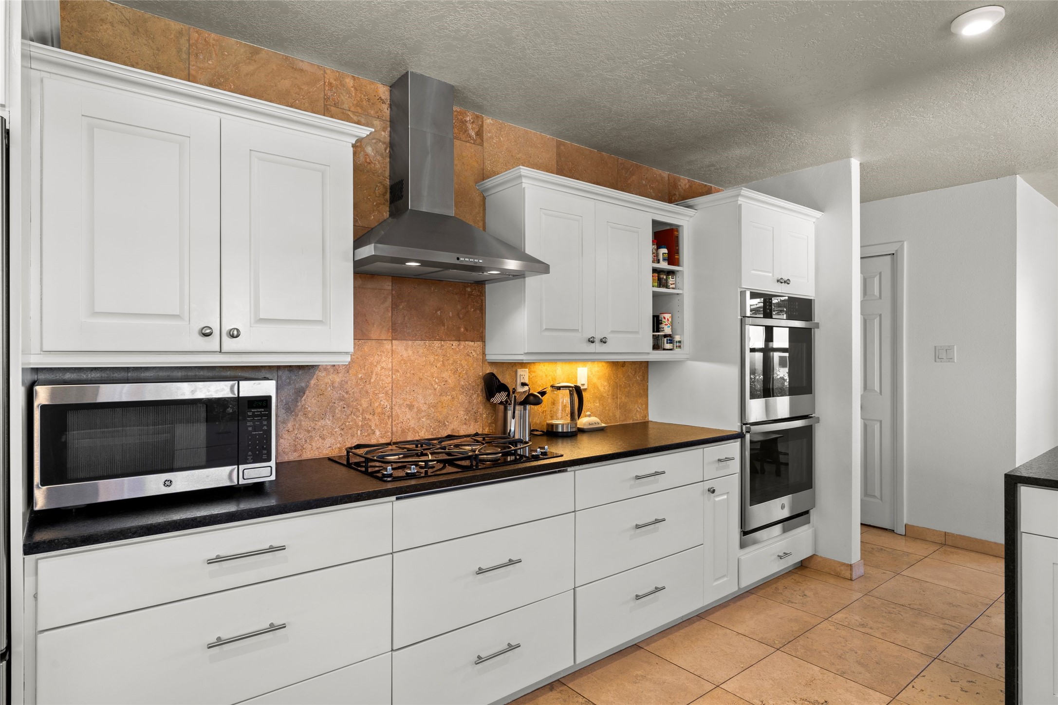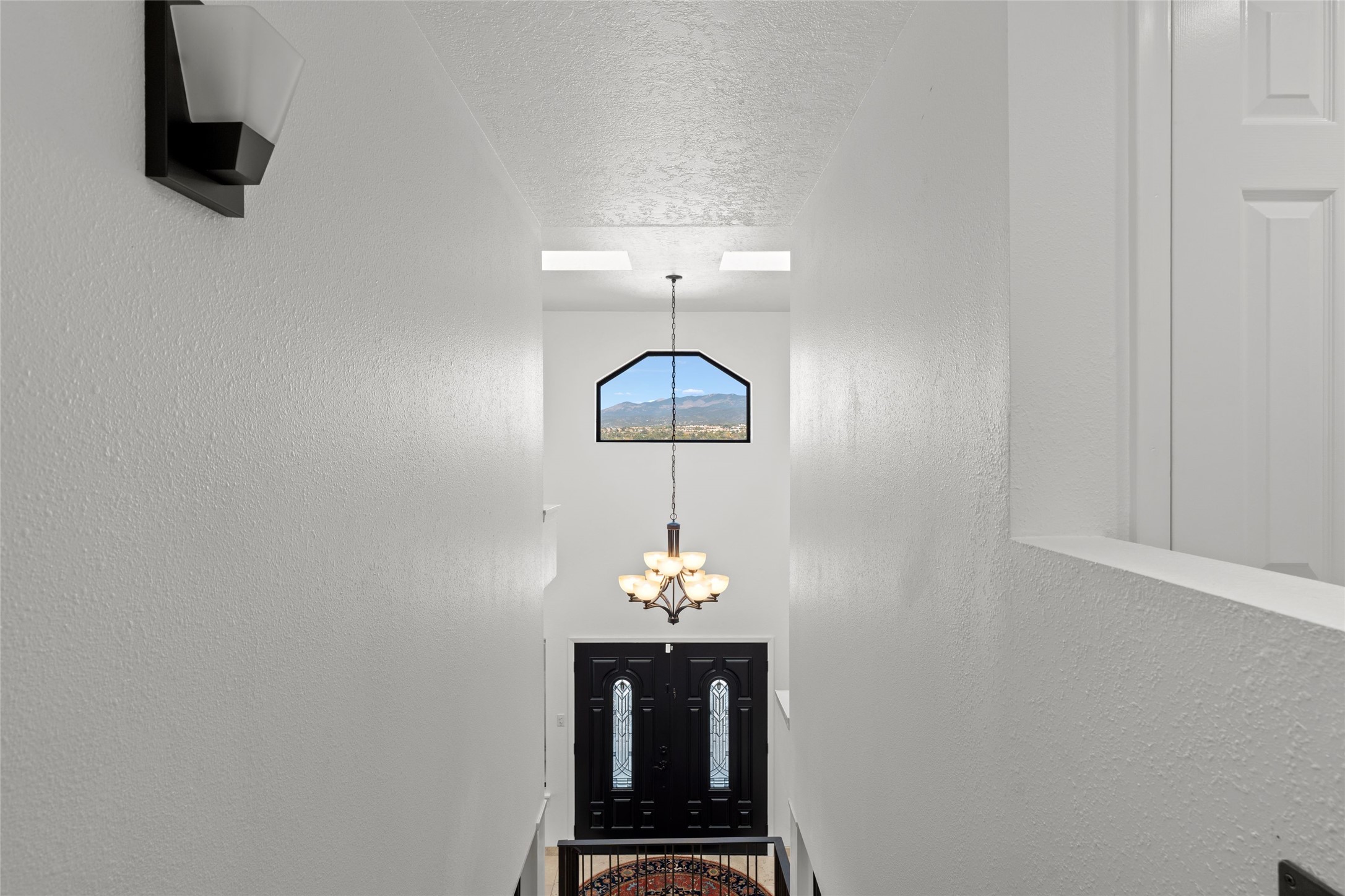 Views, views, views. Breathtaking Sangre de Cristo Views from a Refined Contemporary Mediterranean HomePerched in the desirable Via Caballero III neighborhood, this exceptional 3,660 sq. ft. residence captures panoramic views of the Sangre de Cristo Mountains and the twinkling city lights of Santa Fe. Thoughtfully renovated in 2008, 2016, and 2017, the home blends elegant Mediterranean architecture with modern sophistication.The heart of the home features a sleek, remodeled kitchen with a bright breakfast area and an expansive family room--perfect for gatherings or quiet mornings enjoying the mountain vistas. Travertine floors, energy-efficient windows, custom lighting, and designer interior finishes create a seamless, refined atmosphere throughout.The spacious primary suite offers a serene sitting area, a luxurious bath, and a 15-foot custom California Closet. Step onto the private covered balcony to experience the breathtaking sunsets and sweeping mountain panorama--a daily reminder of Santa Fe's beauty.The flexible 4/5-bedroom layout accommodates a variety of lifestyles, currently configured with three bedrooms plus a study/exercise room, with a generous game room that efficiently serves as a fifth bedroom or guest suite.Outdoor living is equally inviting, with a flagstone-paved portal and terrace ideal for entertaining, walled and landscaped gardens with pion and fruit trees on timed irrigation, and a charming fountain that adds a peaceful ambiance. The backyard is a true sanctuary--private, verdant, and ideally suited for relaxation or play.Experience the magic of Santa Fe's mountain light from a home designed to celebrate it at every turn.