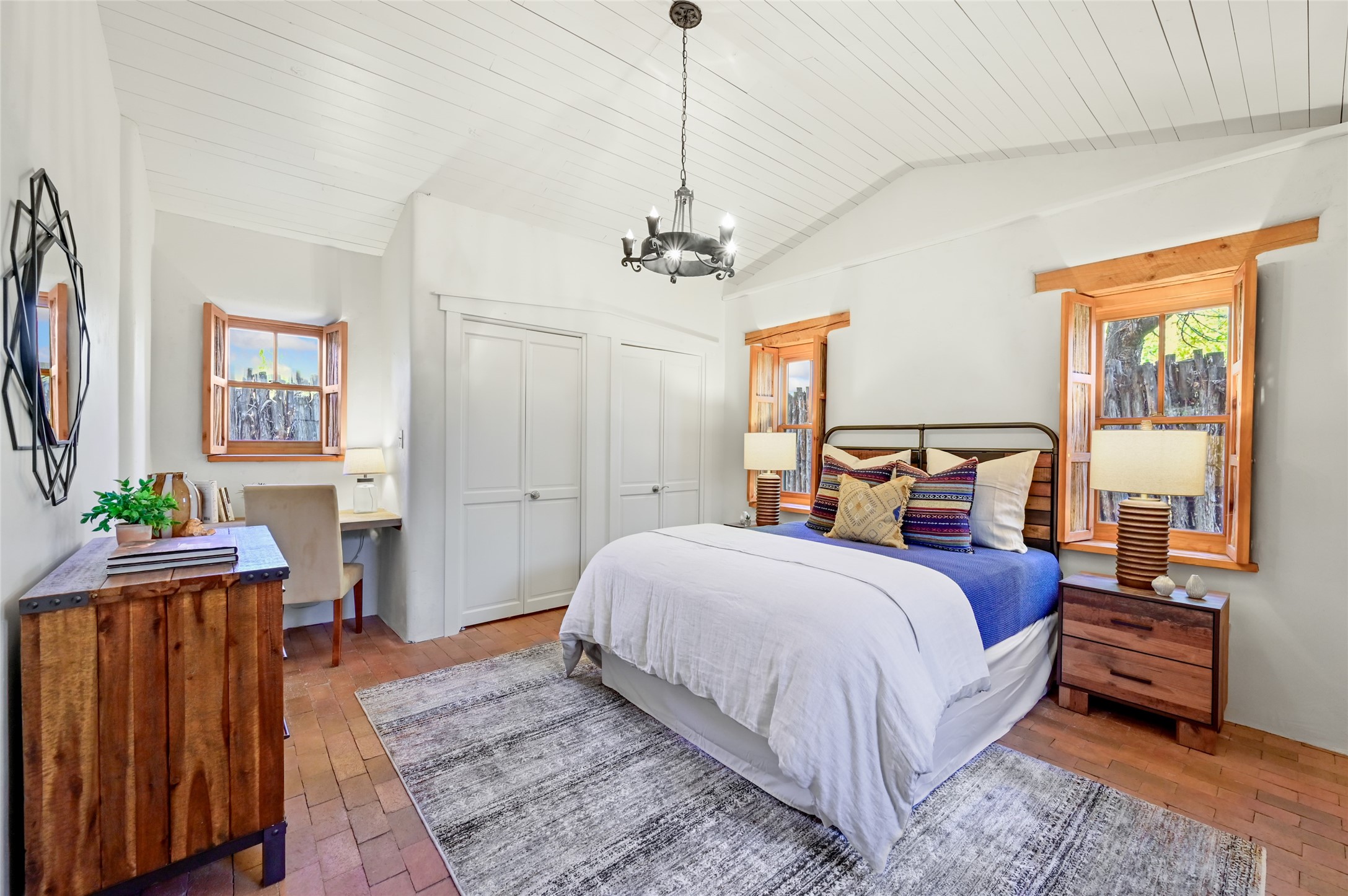 Discover the perfect gated downtown pied--terre--an ideal getaway second home or an effortless lock-and-leave casita for full-time living in Santa Fe. This charming residence features classic Santa Fe character throughout, including brick floors, hand-crafted wood shutters made with latillas, and timeless post-and-beam accents. High ceilings enhance the sense of space, while radiant heat keeps the home cozy and warm. Enjoy privacy, convenience, comfort, and the benefit of new appliances in a beautifully maintained, inviting retreat.