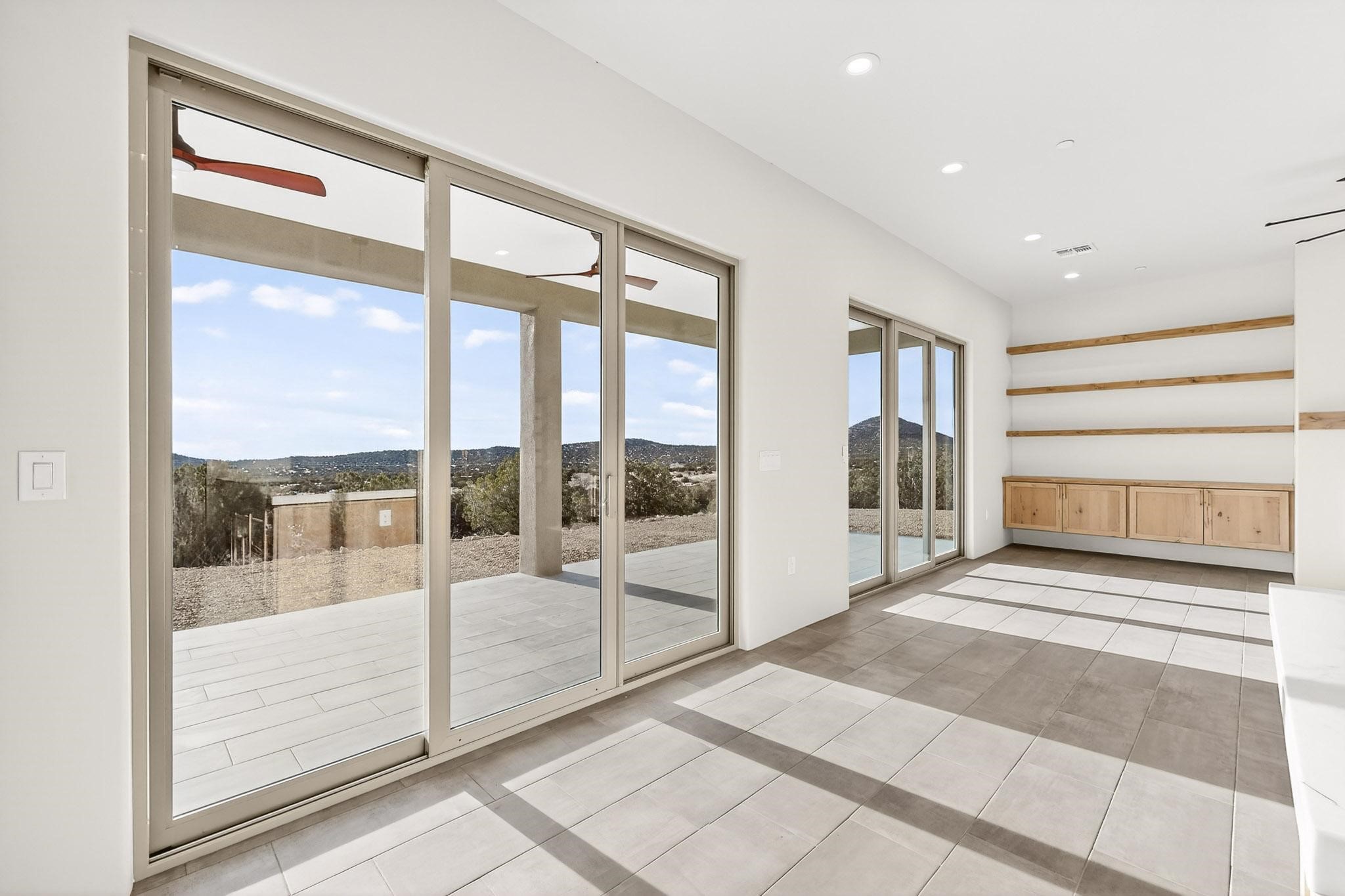New Construction. Located in the exclusive Longview gated community, this 3-bedroom, 3-bath home with a 3-car garage offers breathtaking views of the Sandia and Galisteo Basin. Thoughtfully designed with two primary suites plus an office, the home features custom cabinetry, a walk-in pantry, and light-filled open living spaces. Enjoy seamless indoor-outdoor living, a spacious three-car garage, and the tranquility of one of Santa Fe's most sought-after settings. Owner/Broker.