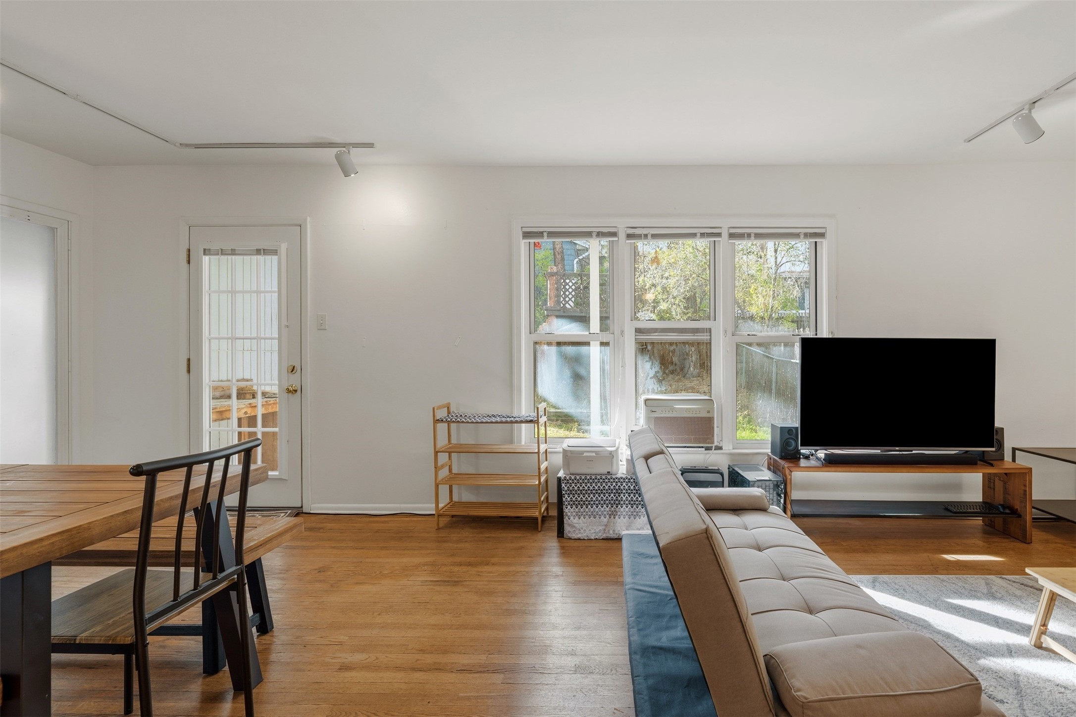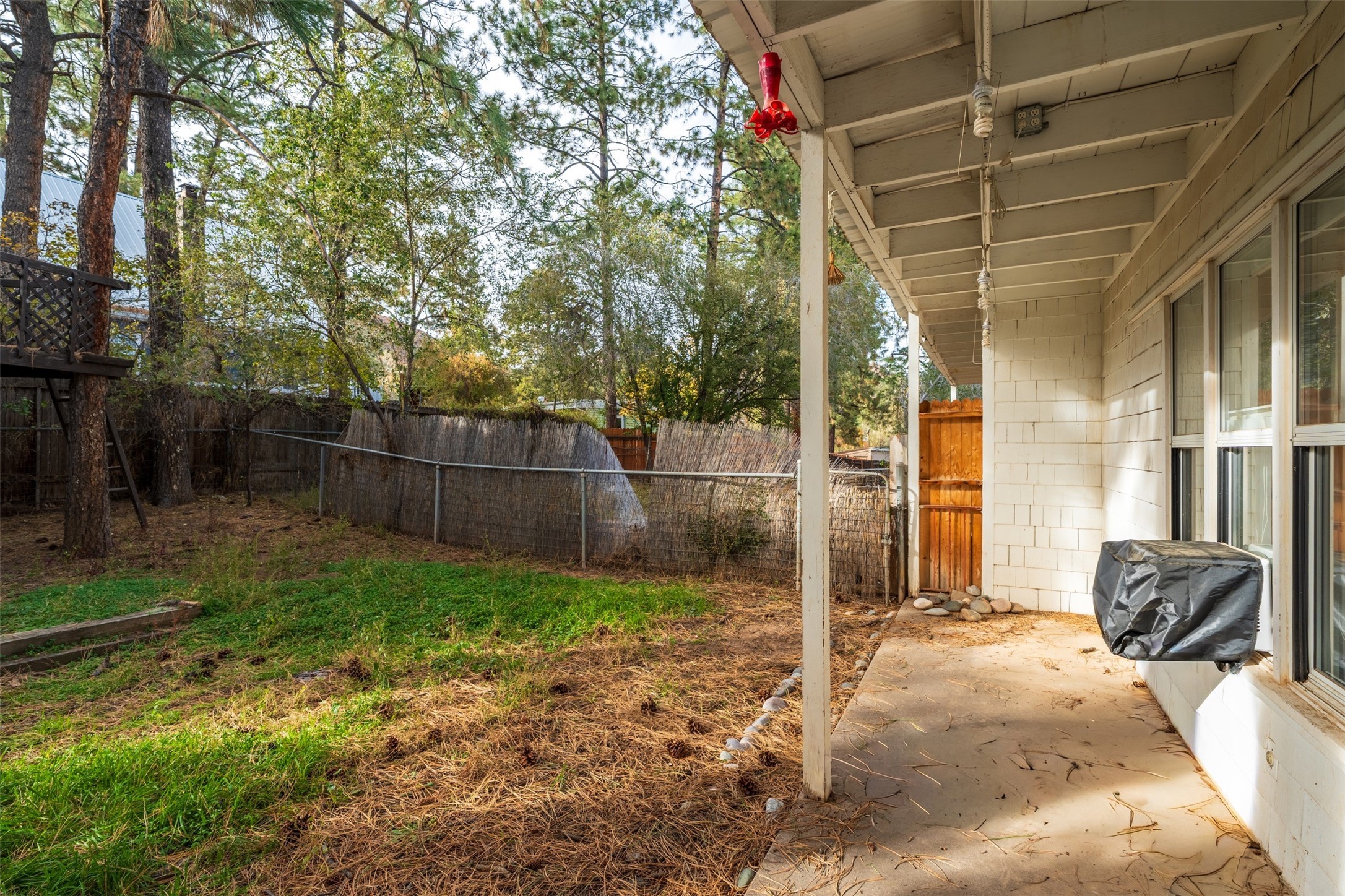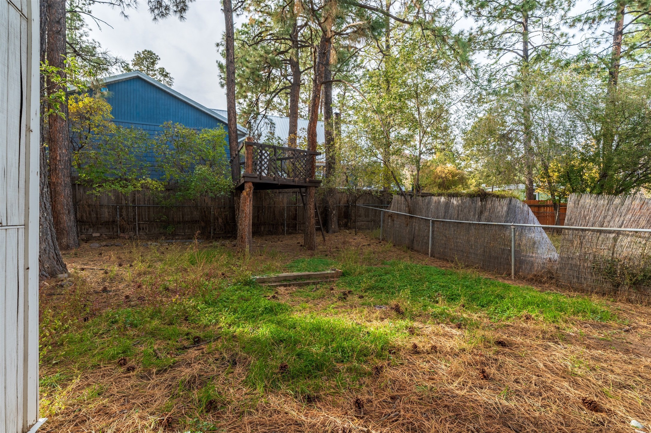 Charming North Community Condo with Expansive Yard & GreenhouseSet on a spacious corner lot in the quiet North Community neighborhood, this two-story condo offers privacy, character, and exceptional outdoor space--just 5 minutes from Los Alamos National Lab (LANL).Upstairs, you'll find three generously sized bedrooms with hardwood floors and large windows that fill the space with natural light. Two bedrooms are connected by a convenient walk-through closet, and the full bath features a clean, classic design with a pedestal sink and tub/shower combo.The main level offers a bright galley kitchen with white cabinetry, chrome hardware, and all appliances--including washer and dryer. The adjacent dining area opens to an enclosed back porch with a storage closet, while the large living room features original hardwood floors, track lighting, and access to a unique greenhouse with built-in workbench.Outdoors, the home offers a mix of privacy and open space with established landscaping, a treehouse platform, a covered patio, and a fully fenced backyard--perfect for gardening, entertaining, or simply relaxing.Located steps from Urban Park and close to hiking trails, excellent schools, and the amenities of downtown Los Alamos. Schedule your showing today!
