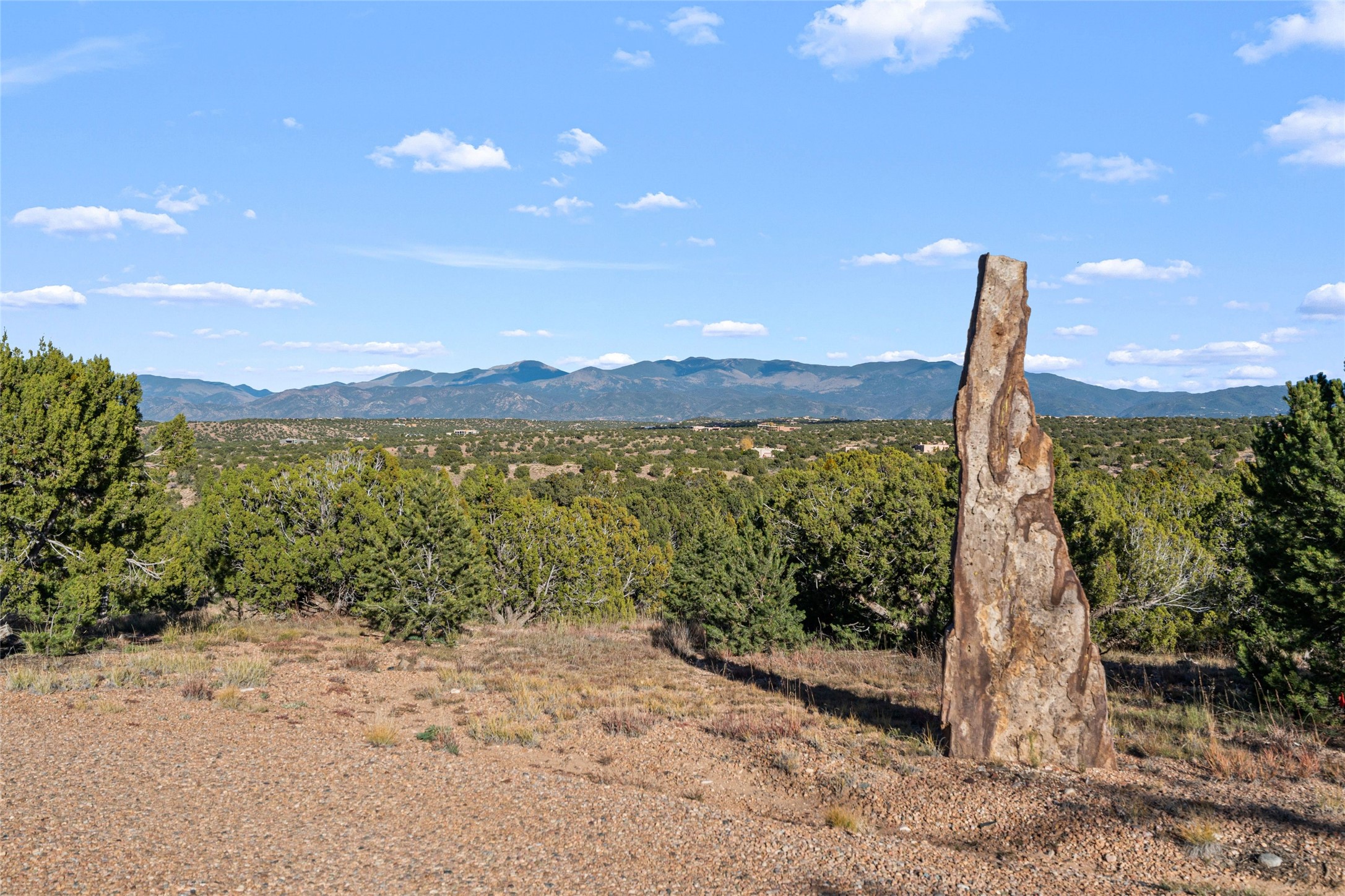 Private La Tierra custom home topping 12 Pinion and Juniper covered acres, set high to capture panoramic Jemez and Sangre de Cristo Mountain views. Experience exceptional privacy and independence just 15 minutes from downtown Santa Fe. Combining modern design with classic New Mexico craftsmanship, this unique property offers a rare balance of seclusion and easy access to Santa Fe's world-class restaurants, galleries, and culture. The main residence showcases soaring ceilings, wide-plank pine and flagstone floors, and handcrafted Saltillo tile details. Walls of glass bathe the interior in natural light and frame sweeping vistas in every direction, creating an atmosphere of calm and inspiration. Currently configured as a three-bedroom home, the flexible layout includes a spacious home office easily convertible to a fourth bedroom, a second office or studio and a dedicated exercise room, a stunning west-facing sunroom perfect for year-round enjoyment of the sunset skies, a luxurious owner's suite with kiva fireplace, high ceilings, and extraordinary Sangre views. Outdoors, a Japanese-inspired courtyard offers serenity and shade. Keep up to four horses with ample space to add a barn or equestrian facilities. Birdwatching at it's best, from inside or outside. Recent Upgrades & Highlights include New stucco (2024) and new flat roof (2025) with transferrable 12-year warranty, Solar electricity system (9 kW ground-mounted, installed 2022 by Positive Energy Solar), Standing-seam pitched roof with high decked ceilings, Forced air & mini-split A/C for year-round comfort, New KitchenAid & Bosch appliances, Silestone countertops, Pre-inspected and lovingly maintained, Septic system sized for four bedrooms. This La Tierra retreat offers a lifestyle of quiet sophistication--a private mountain-view sanctuary minutes from the heart of Santa Fe. Watch the video tour for the full story.