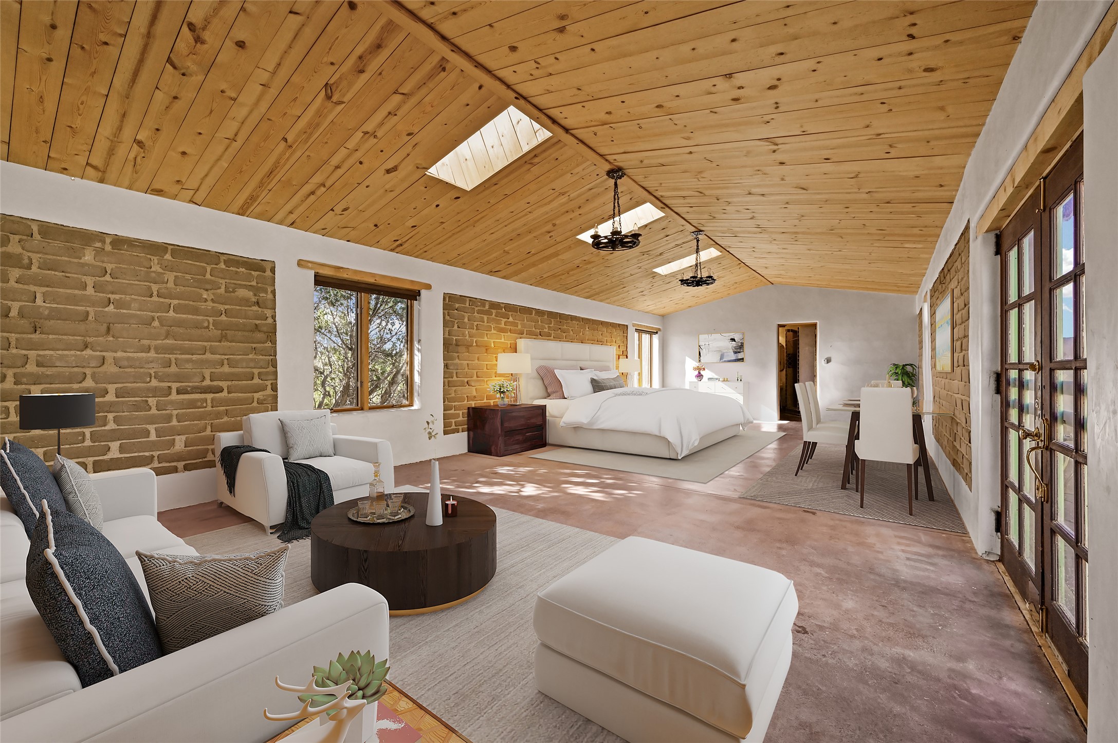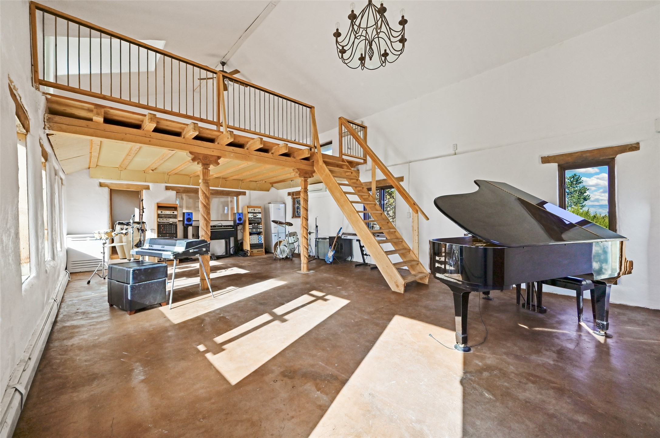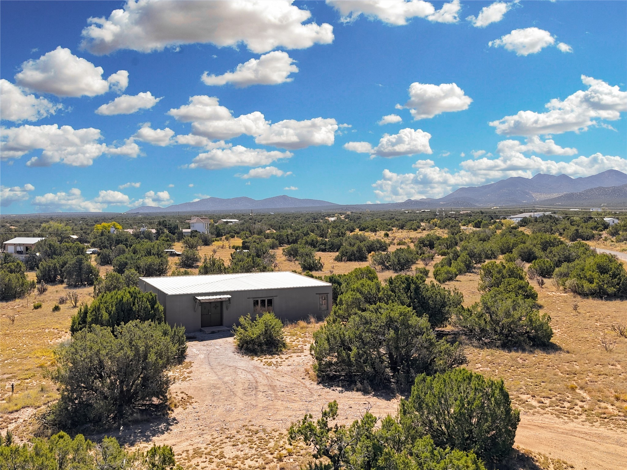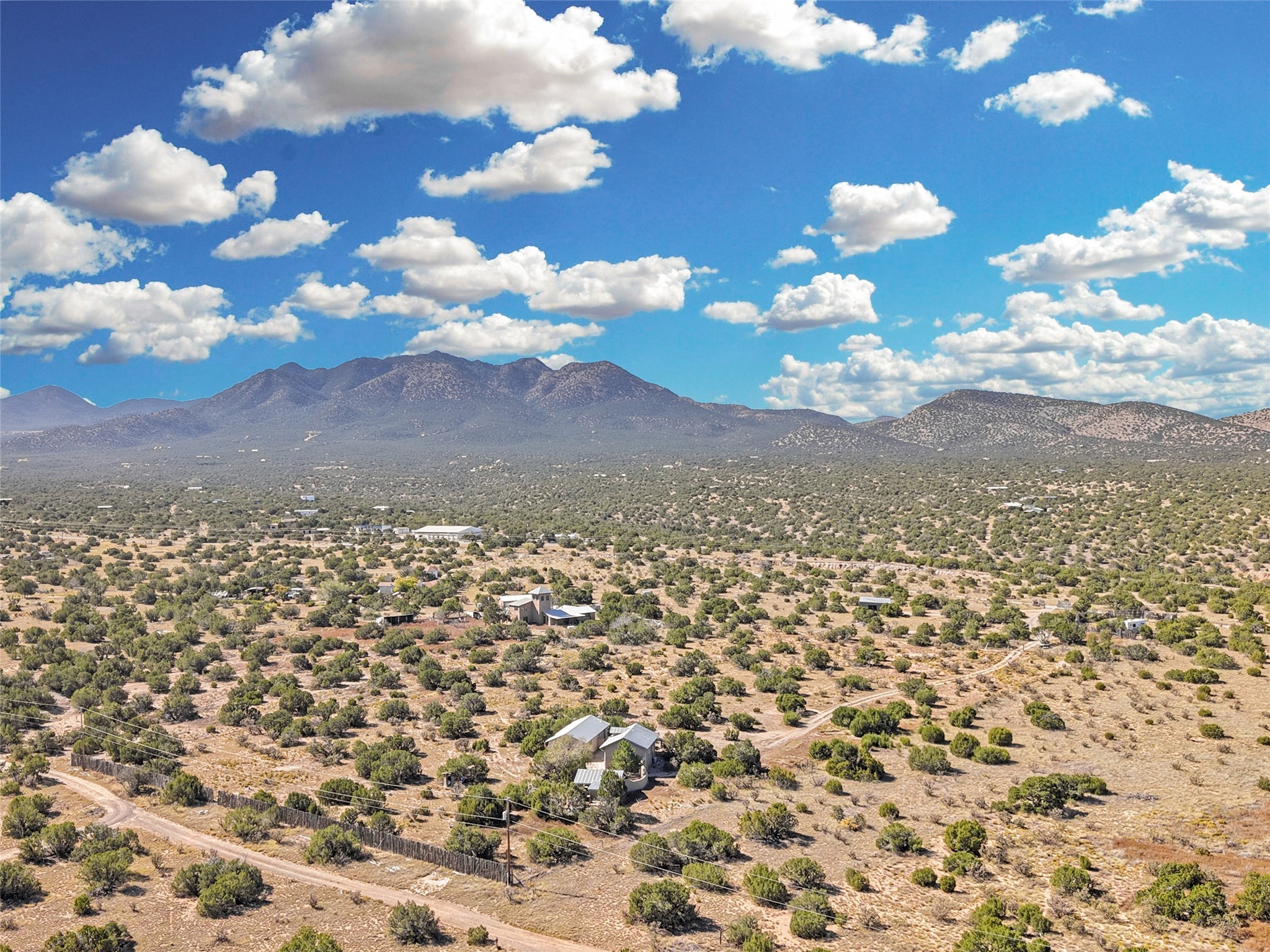Welcome to this remarkable property that exudes the rustic charm of the old west and features the adobe walls that distinguishes true Santa Fe from the rest! Settled on just under a 10 acre naturally landscaped parcel of land with dreamy mountain views and populated with Pinon and Juniper Trees throughout, this property is the one you've been waiting for. The one bedroom one bath private main home boasts an open concept floor plan and 1,500+/- heated square feet. In addition to the main home there are three separate studios for your use and imagination! A 1,000 +/- sqft adobe with one bath would be great for your guests. The 985+/- sqft "music studio" with one bath attracts great natural light and contains a loft up above the main level. The cute 300 +/- detached studio is just off of the walled courtyard and next to the outdoor hot tub. Another great feature and added benefit to this property is the designated RV parking and hookup area! Come and own your own unique perspective of the gorgeous sunrise and sunset views that Santa Fe is known for from this one of a kind property. The property is fully-fenced and is about a 20 minute drive from the Santa Fe city limits.