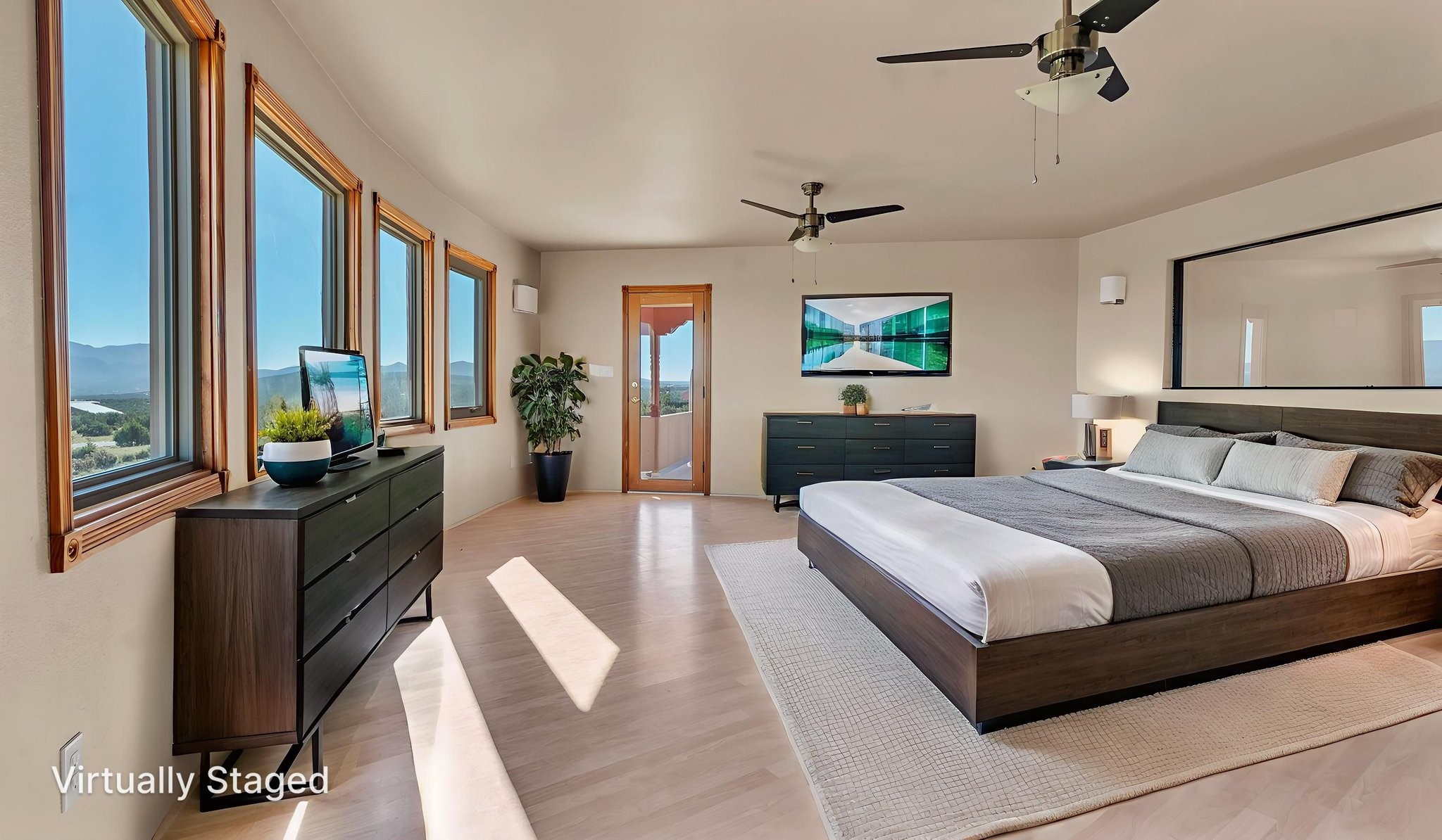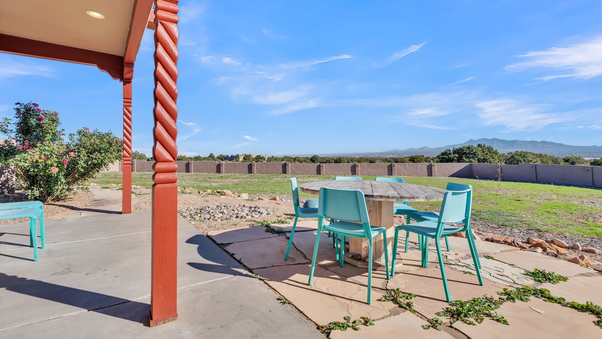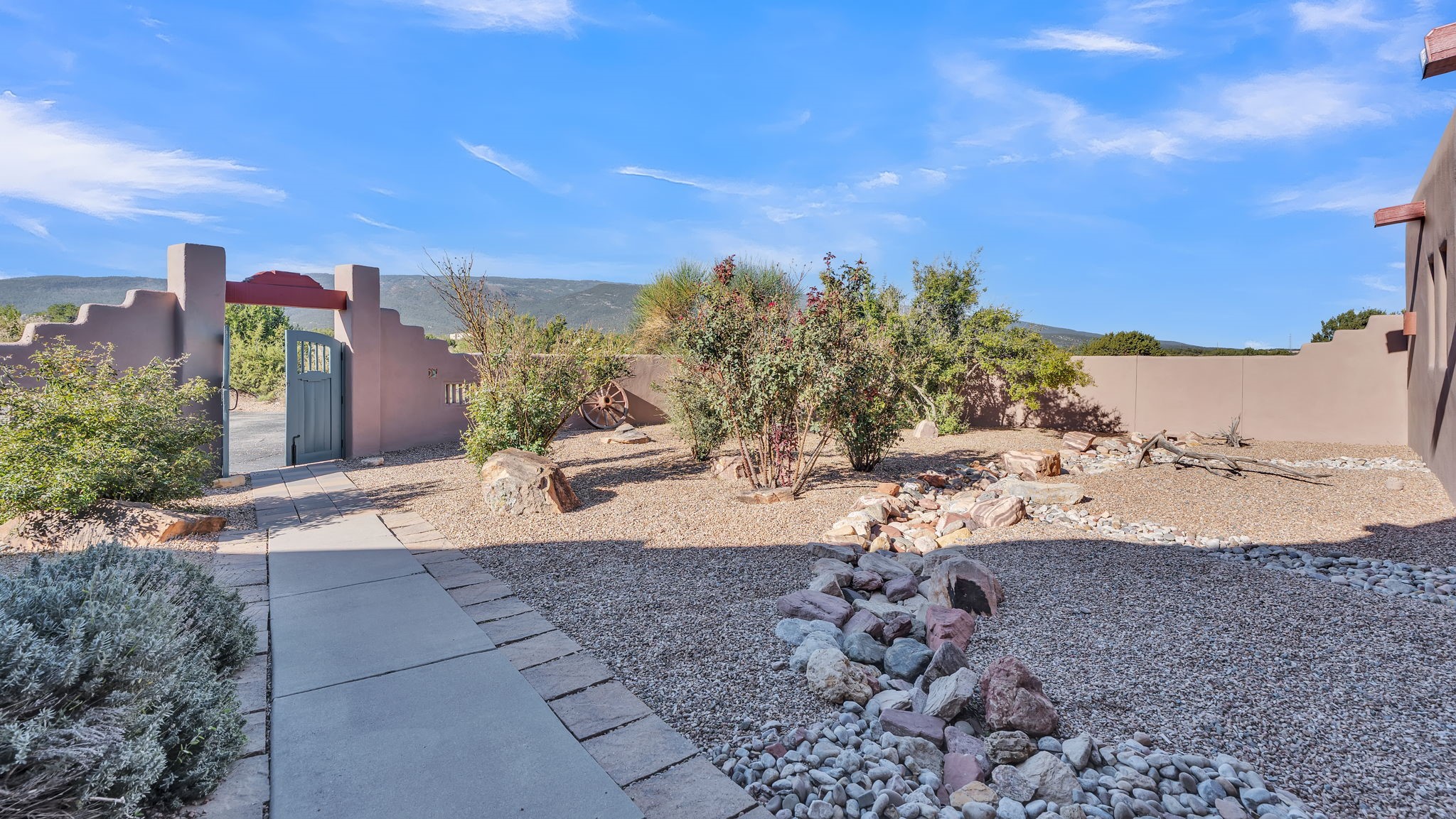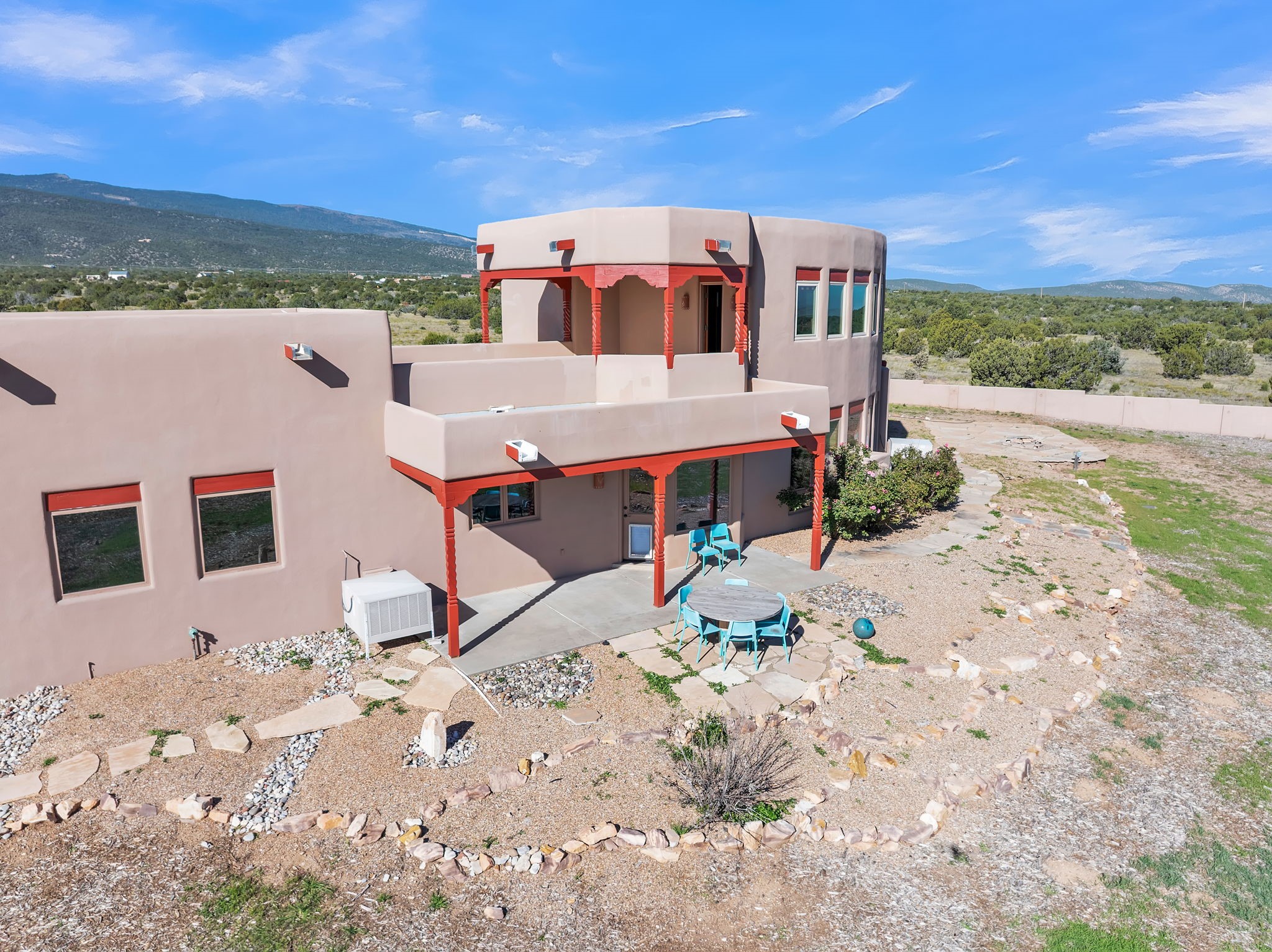 Welcome to 5 La Aguapa, Sandia Park, NM Experience luxury rural living in San Pedro Creek Estates! This custom 4,000+ sq ft home on 10.57 acres offers breathtaking views of five mountain ranges. Featuring 4 bedrooms, 4 baths, and two primary suites, this home combines comfort and elegance. The great room with soaring ceilings, a gas log fireplace, and panoramic views. The gourmet kitchen includes granite countertops, a built-in gas stove, pantry, and access to a workshop and three-car garage. Enjoy radiant heat, travertine tile flooring, a large utility room, and a walled backyard with access to Golden Open Space Los Duendes Trail. This is luxury rural living within reach.Situated on 10.57 acres in the prestigious San Pedro Creek Estates, this impressive 4,000+ square foot home offers refined comfort, privacy, and spectacular views of five separate mountain ranges. Featuring 4 bedroomsincluding two primary suites and 4 bathrooms, this thoughtfully designed home blends elegance with everyday functionality. The spacious great room showcases a gas log fireplace and sweeping views for miles, creating a warm and inviting central gathering space. The downstairs primary suite features a large walk-in closet and a generously sized bathroom, while the upstairs primary suite includes a private balcony the perfect spot to take in the serene landscape. Enjoy cooking in the large kitchen, complete with granite countertops, a built-in gas stove, ample cabinetry, a nice-sized pantry, and access to a spacious workshop and three-car garage perfect for hobbies, projects, or extra storage. The home is equipped with efficient radiant heat and features travertine tile throughout the downstairs, adding both beauty and functionality. A spacious utility room includes a sink and plenty of storage. Outside, you'll find a large walled-in backyard, ideal for relaxing, entertaining, or pets. The property also includes private gate access (key fob provided) to the Golden Open Space Los Duendes Trail, offering opportunities for hiking, biking, and horseback riding. Ideally located, this home is just 32 miles from Albuquerque, offering all the amenities of city living, 21 miles from Madrid, known for its artistic charm, and 50 miles from Santa Fe, celebrated for its rich culture and dining.POVEvery window frames a different view five mountain ranges that change colors with the seasons. It's peaceful, quiet, and filled with natural light. Mornings start with coffee on the balcony, and evenings end by the fire watching the sunset roll across the hills. There's room to breathe, create, and enjoy life at a slower pace yet you're still close enough to everything you need. It's truly the best of both worlds.