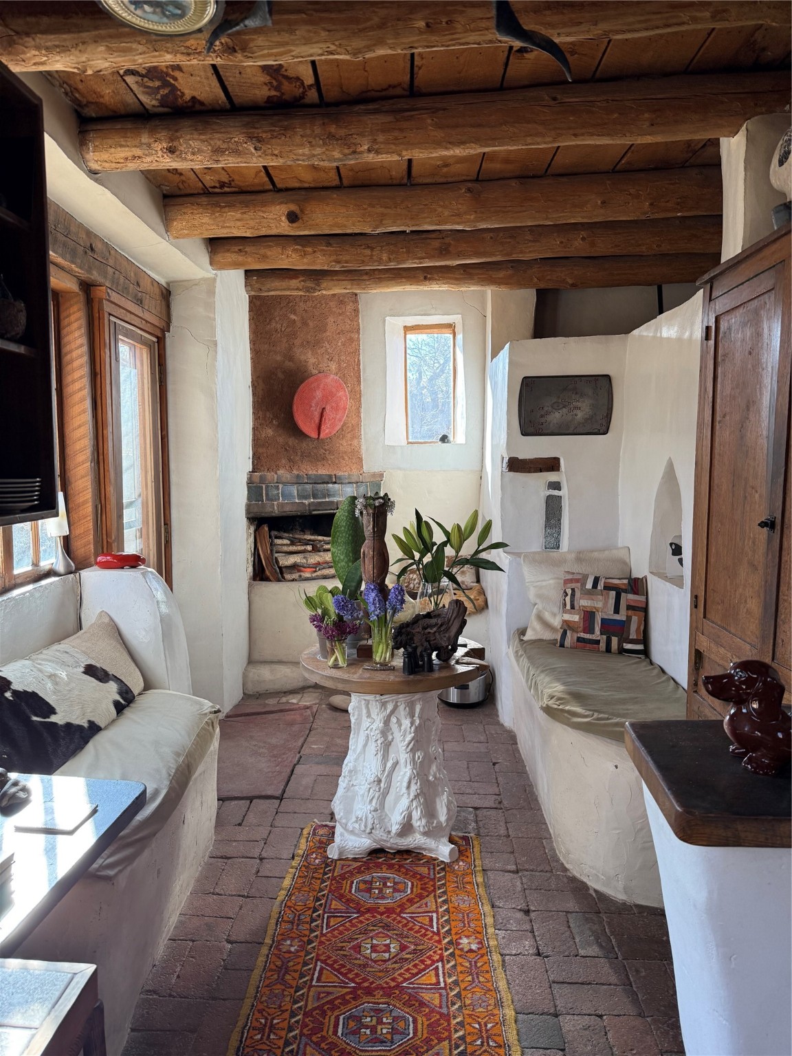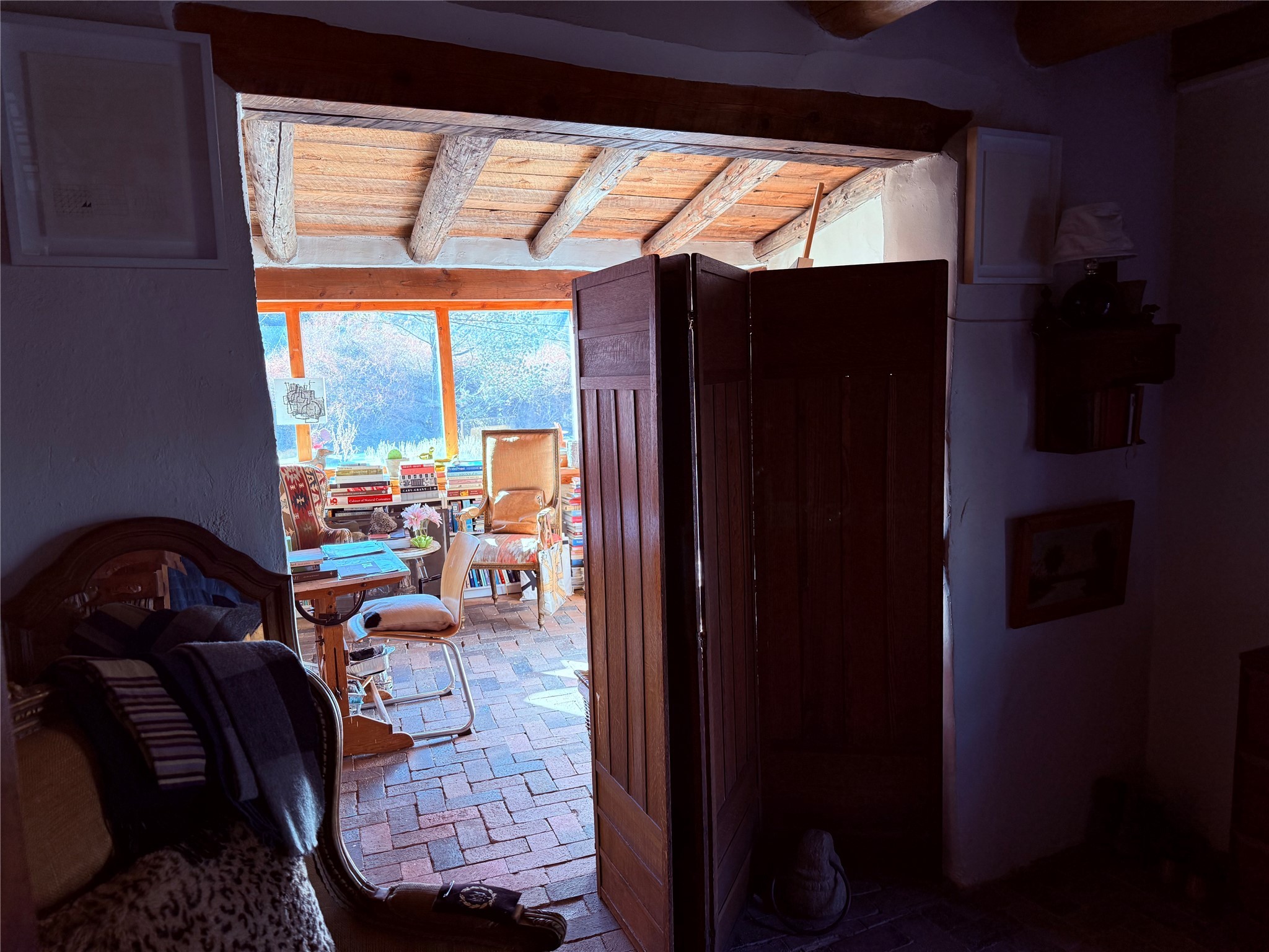 A rare opportunity in the heart of Santa Fe's historic East Side: two quintessential Santa Fe homes originally built in the early 1900's, set on a treed .94 acre lot, surrounded on three sides by multimillion-dollar properties. Added onto over the years, these adobe structures offer an exceptional buy-in opportunity for those with a creative eye. The structures retain many of the handcrafted details that define old world Santa Fe charm: --vigas, nichos, wide wood plank floors, soft, sculpted adobe walls and doorways--and are both ideal for restoration and expansion.The 1,138-sq-ft main house features a 1-bed/1-bath layout, plus a warmly lit studio that could be a comfortable second bedroom or joined for an enlarged primary bedroom. The 488-sq-ft casita offers its own kitchen/living/dining entry and separate living/sleeping area, with views from the lovely shaded portal.Quiet, authentic, and full of possibility, this is a unique chance to shape something extraordinary in one of the city's most cherished settings.