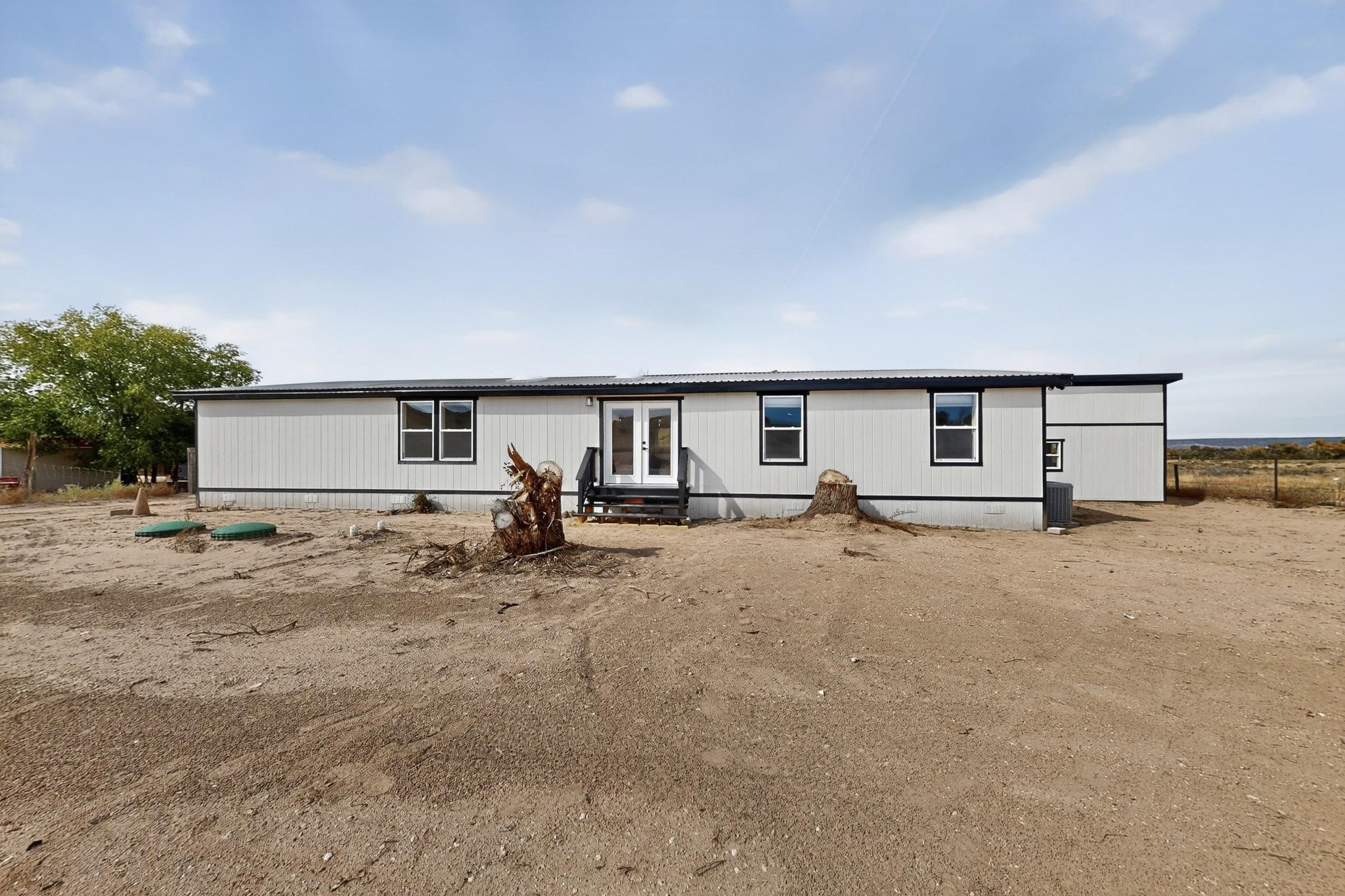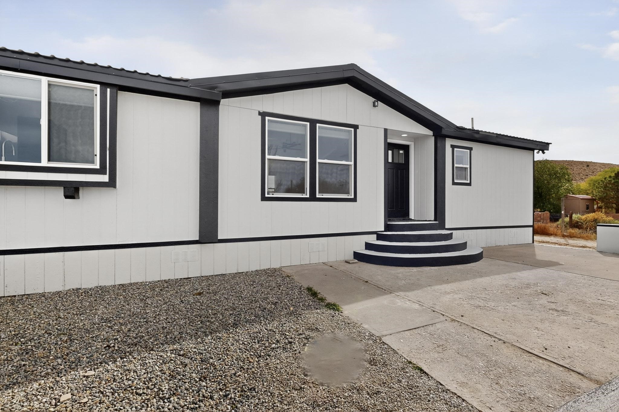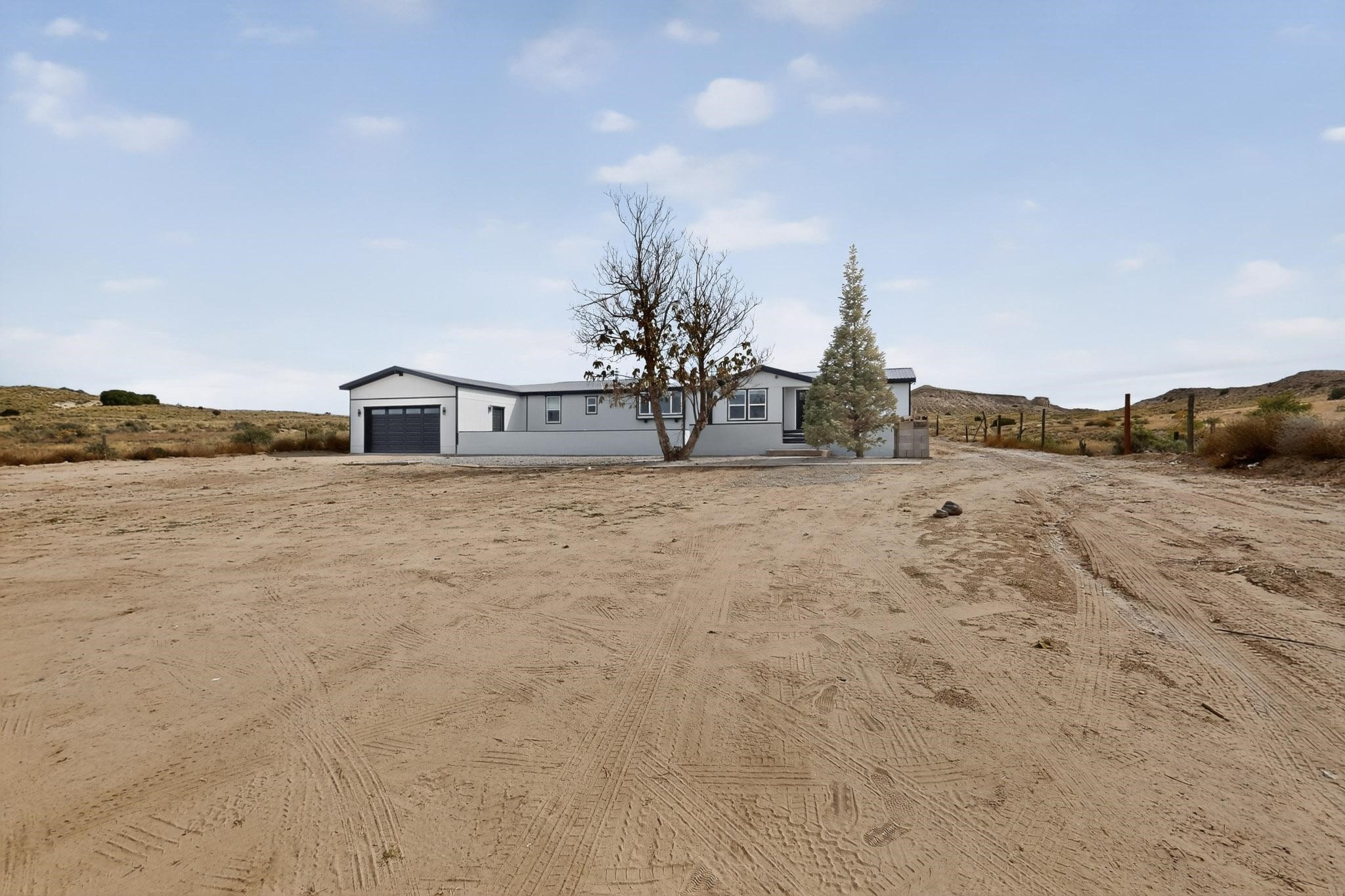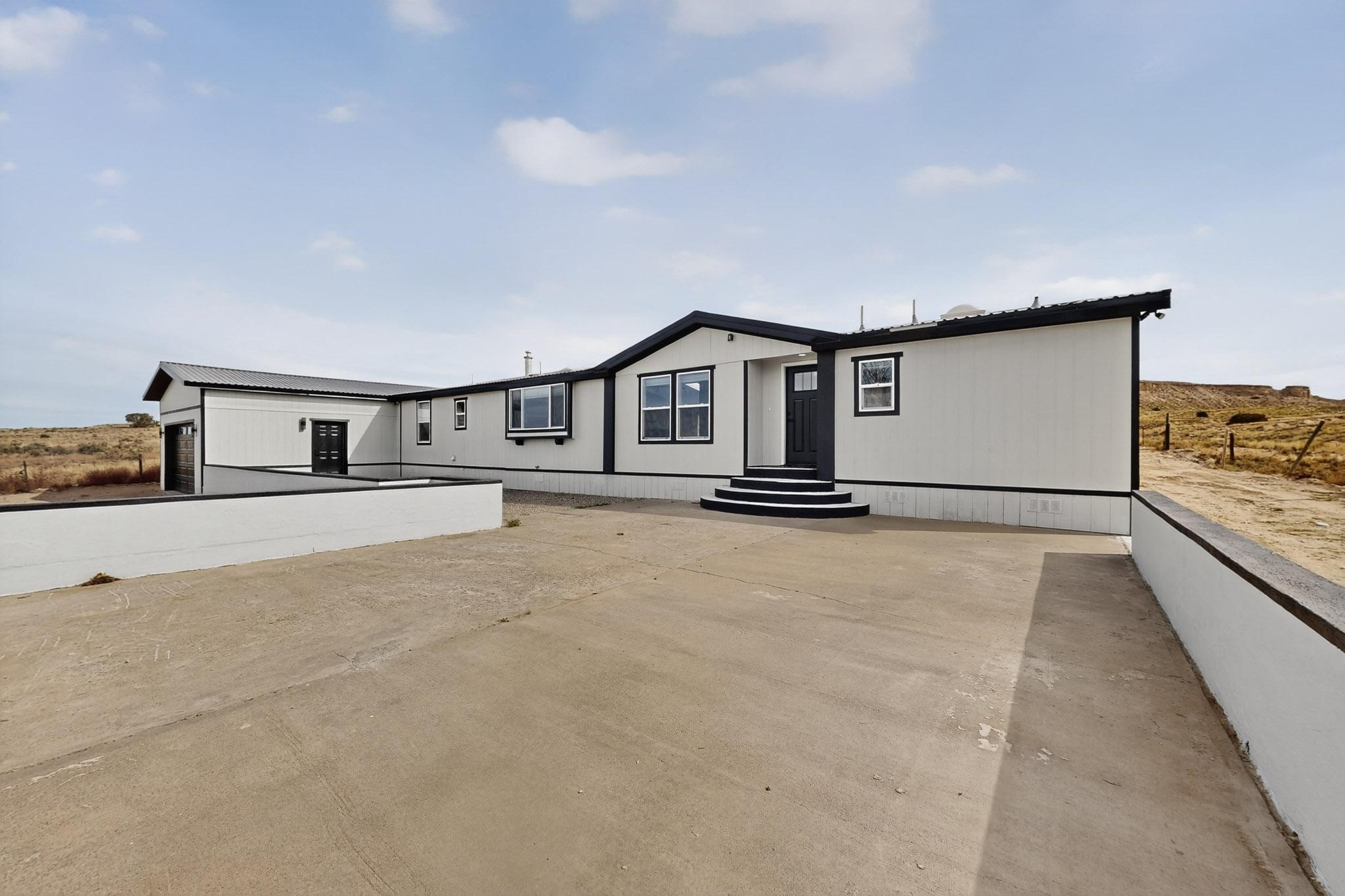 This beautifully remodeled 3-bedroom, 2 bath home offers modern comfort in a peaceful rural setting with spectacular views of the Jemez Mnts. Revel in the natural light that comes in through the 3 skylights. Enjoy a bonus room perfect for a home office or hobby space. Recent upgrades include new windows, new blinds, new roof, new tile flooring with plush carpet in the bedrooms, new lighting, and a new furnace and refrigerated air unit and new hot water heater. The kitchen has been thoughtfully redesigned with custom cabinetry, granite countertops and a new stainless appliance package.Home sits on a permanent foundation, with a new septic system and well improvements completed for peace of mind. Home also has an over sized 2-car garage. Property borders BLM land, providing privacy, open space and unmatched beauty right outside your door. Move-in ready and beautifully finished!!