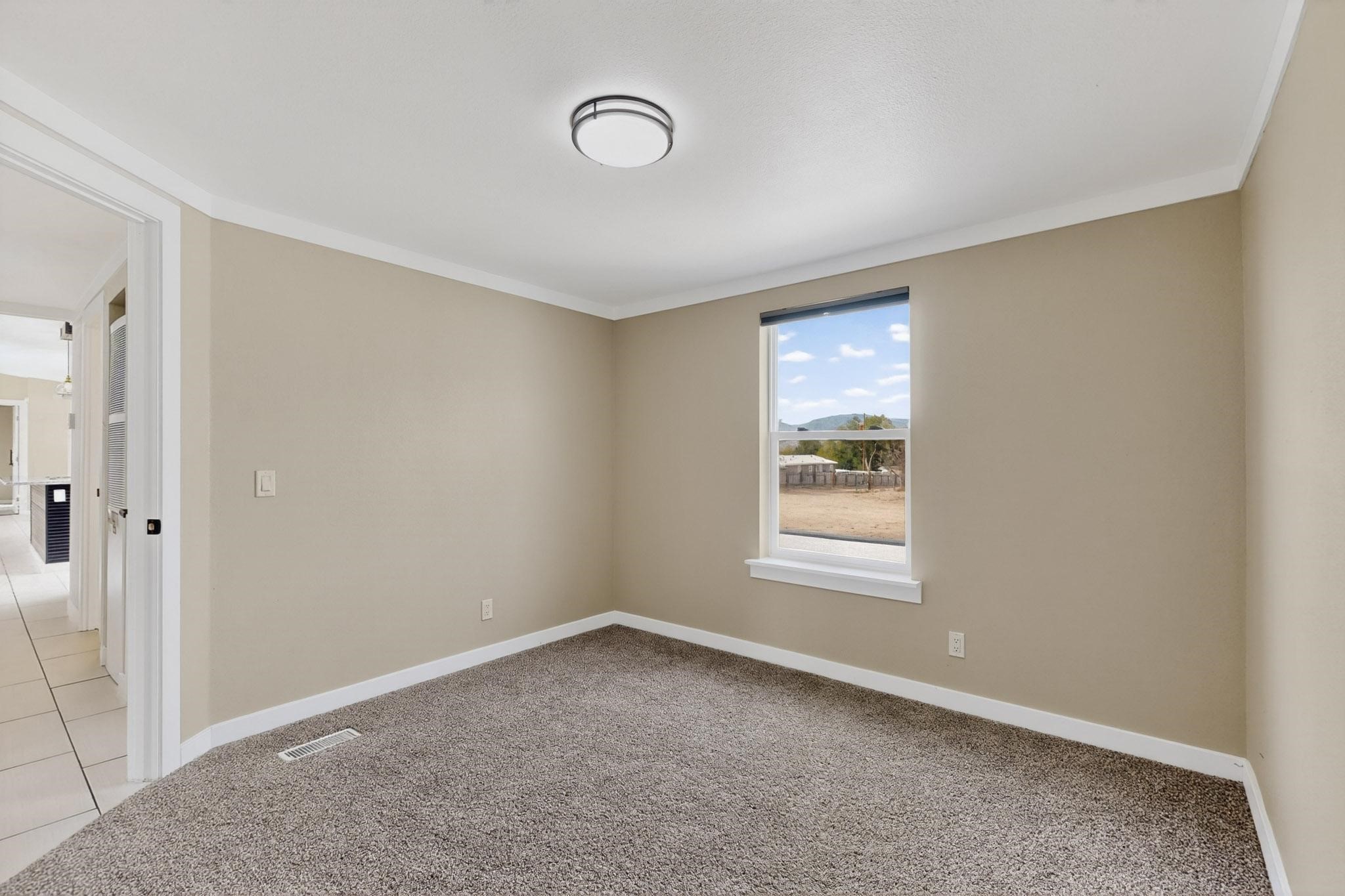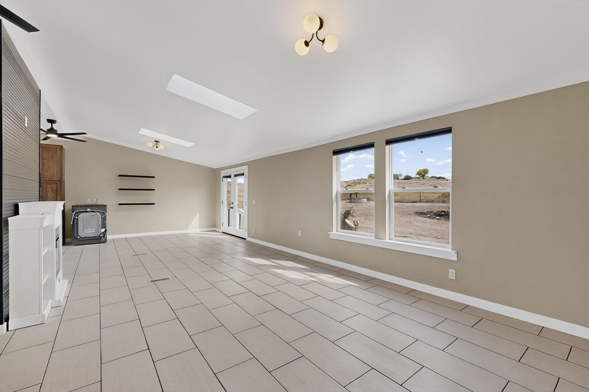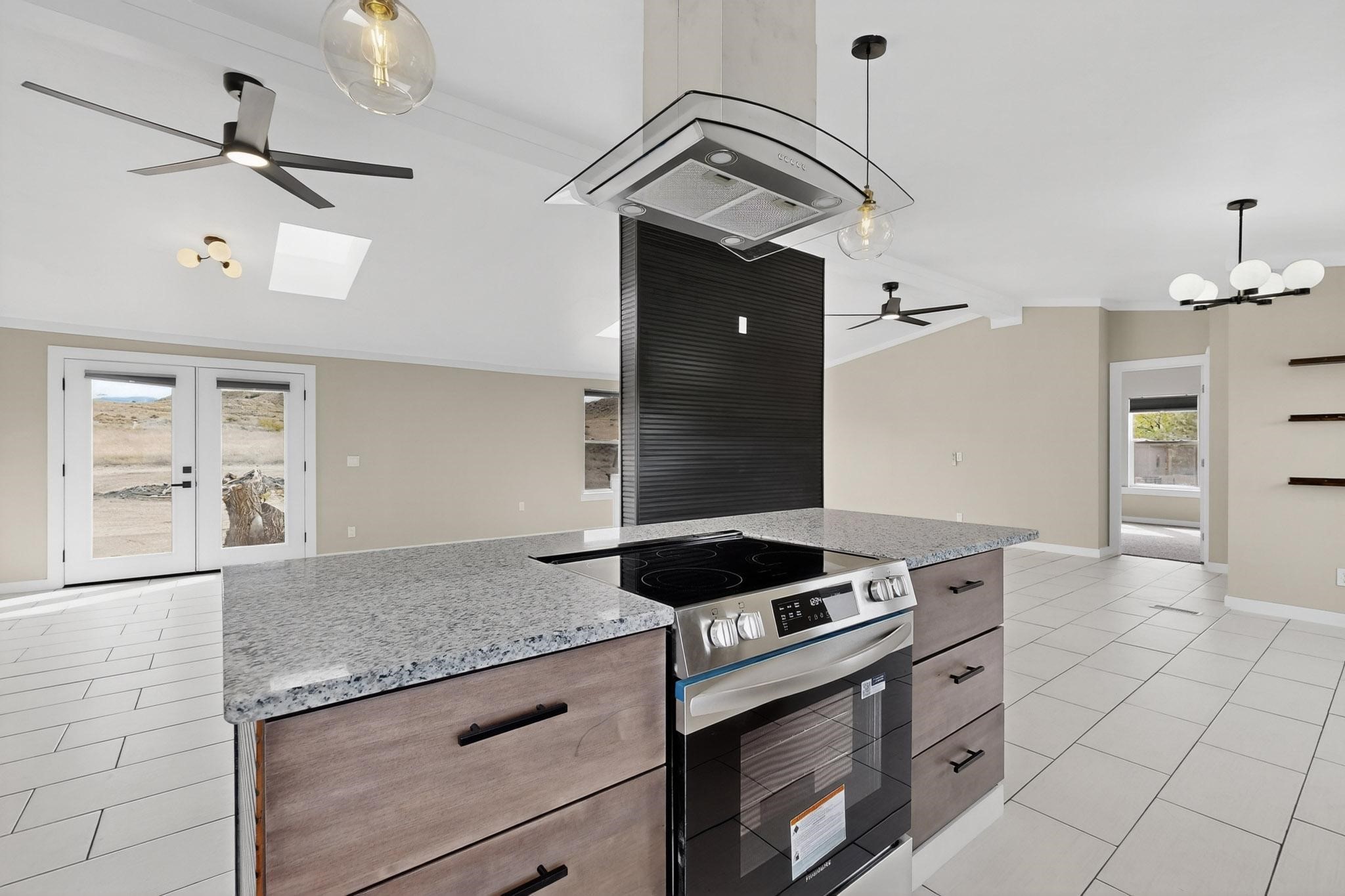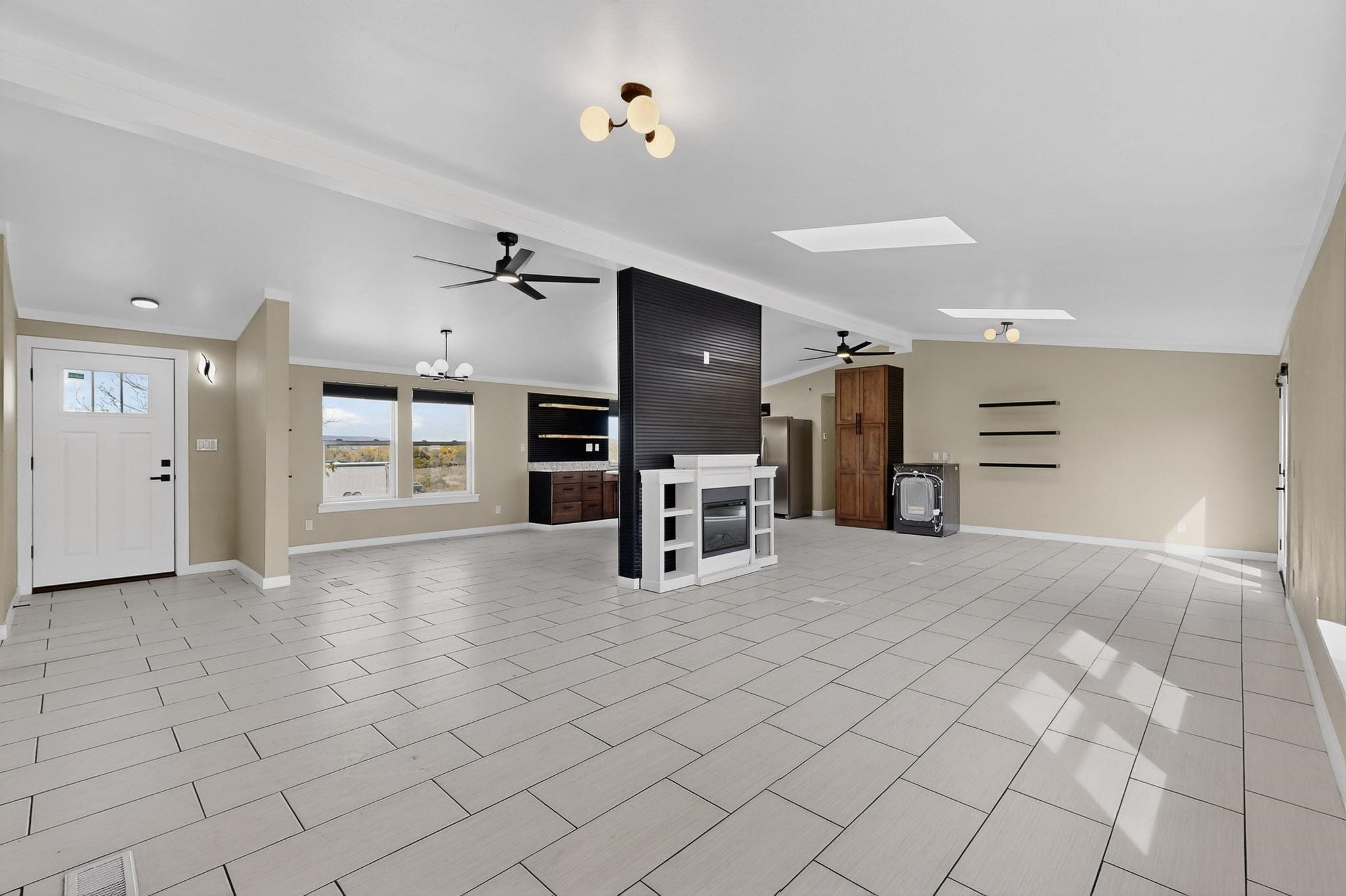 This beautifully remodeled 3-bedroom, 2 bath home offers modern comfort in a peaceful rural setting with spectacular views of the Jemez Mnts. Revel in the natural light that comes in through the 3 skylights. Enjoy a bonus room perfect for a home office or hobby space. Recent upgrades include new windows, new blinds, new roof, new tile flooring with plush carpet in the bedrooms, new lighting, and a new furnace and refrigerated air unit and new hot water heater. The kitchen has been thoughtfully redesigned with custom cabinetry, granite countertops and a new stainless appliance package.Home sits on a permanent foundation, with a new septic system and well improvements completed for peace of mind. Home also has an over sized 2-car garage. Property borders BLM land, providing privacy, open space and unmatched beauty right outside your door. Move-in ready and beautifully finished!!
