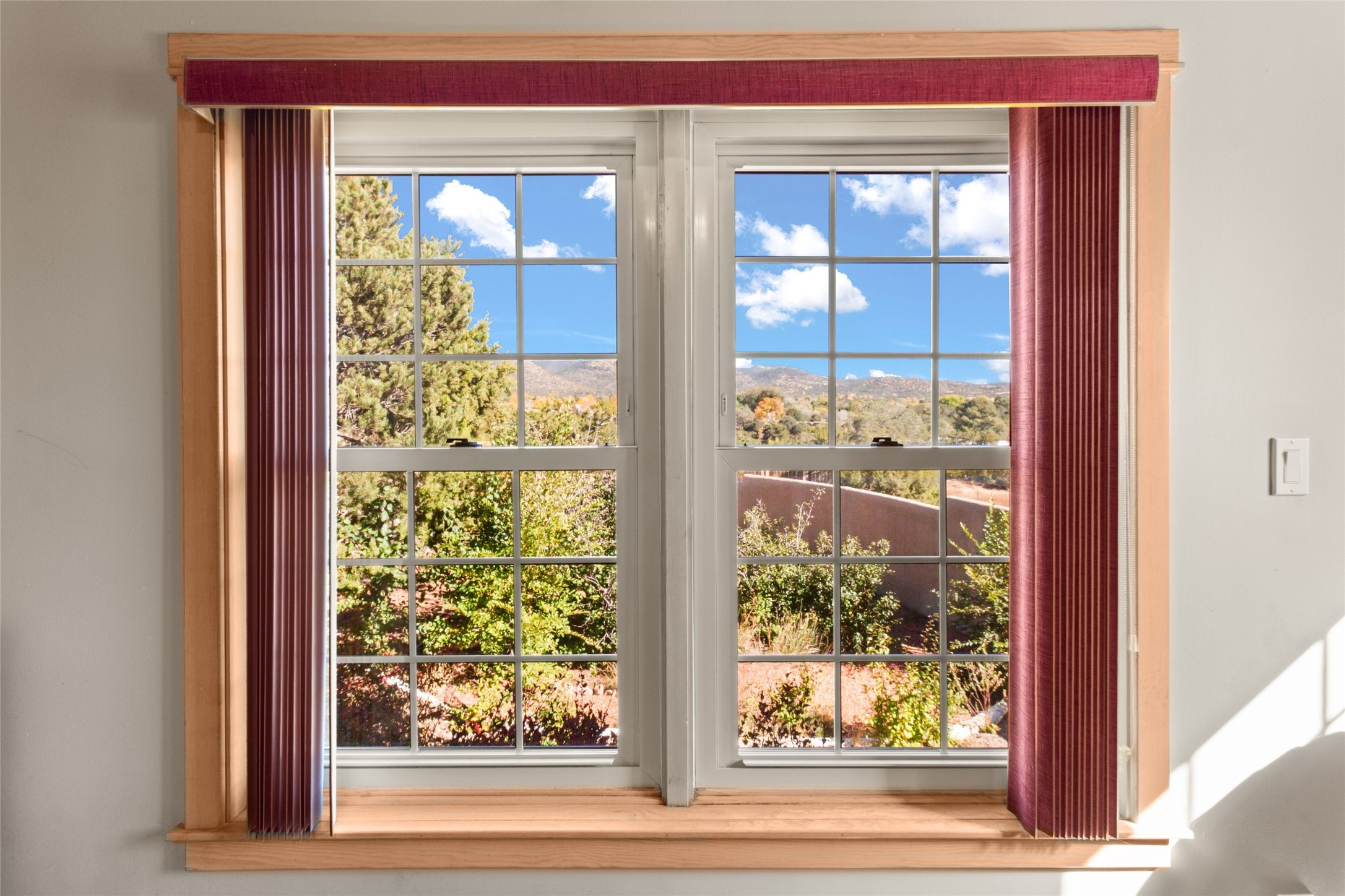 Discover the unmatched beauty of this in-town Calle Tecolote residence, a 4-bedroom, 2-bath home conveniently located and showcasing breathtaking mountain and sunset views from the living room and master suite. Every angle of this property was designed to highlight the stunning natural surrounding scenery that defines luxury living in Santa Fe. The spacious living room features soaring vigas, carved corbels, and hand-hewn beams, creating an impressive yet inviting atmosphere. Large picture windows and abundant skylights flood the space with natural light and capture the ever-changing clouds and colors of the sky. The kiva fireplace adds timeless warmth and charm. The kitchen offers a central island with seating, formal dining area, and open layout ideal for entertaining. The master suite with en-suite full bathroom is a private retreat with commanding views and serene ambiance -- a perfect place to start and end your day. Step outside to a gracious and protected walled courtyard with covered entertaining portal, perfect for al fresco dining and quiet evenings surrounded by panoramic mountain views. Additional highlights include an attached two-car garage with storage, functional intercom/radio system, baseboard gas heating, wood and carpet flooring, and ideal central location. Located just minutes from St. Vincent's and Presbyterian Hospitals, I-25, and top dining and shopping, this property captures and provides privacy, convenience, and authentic Santa Fe style.