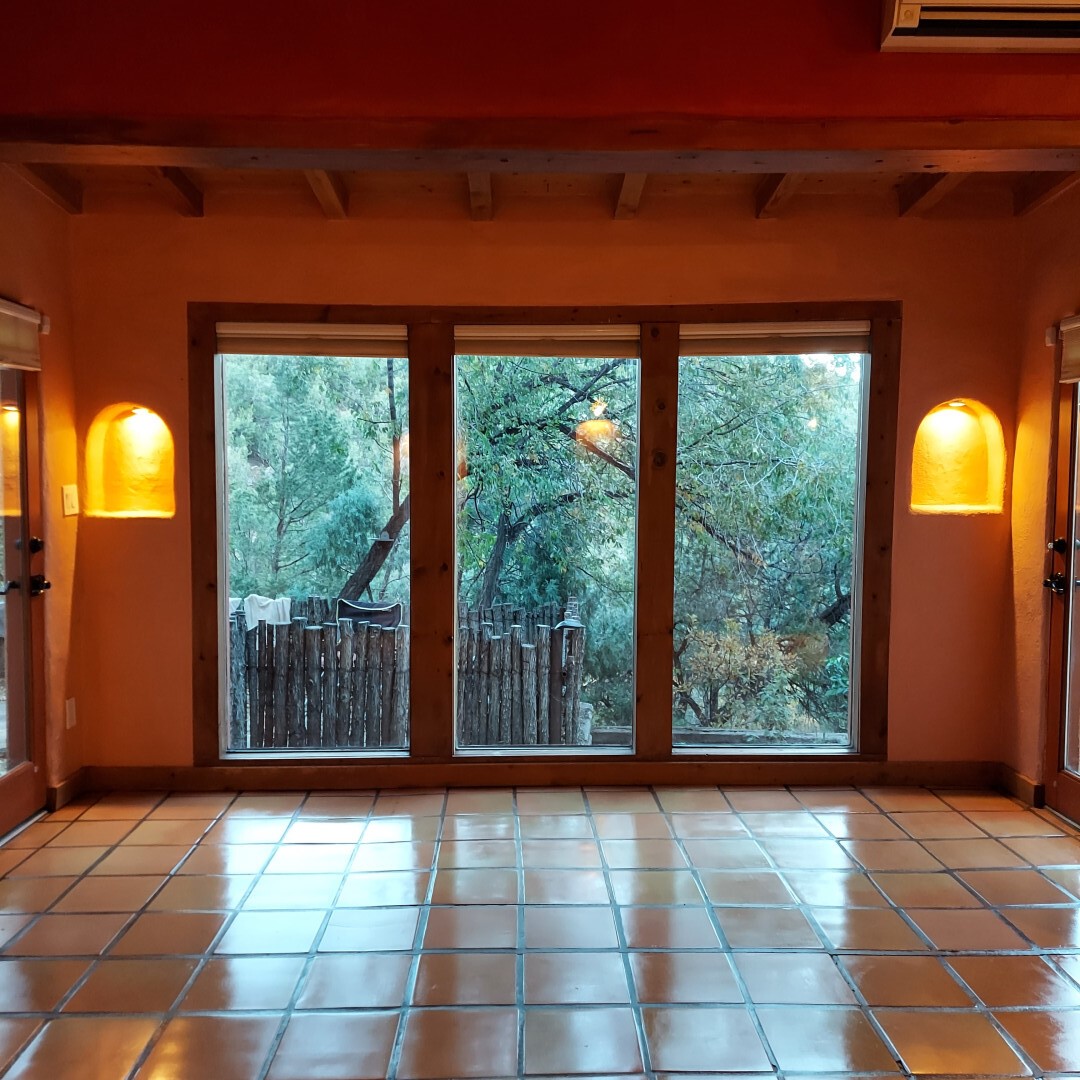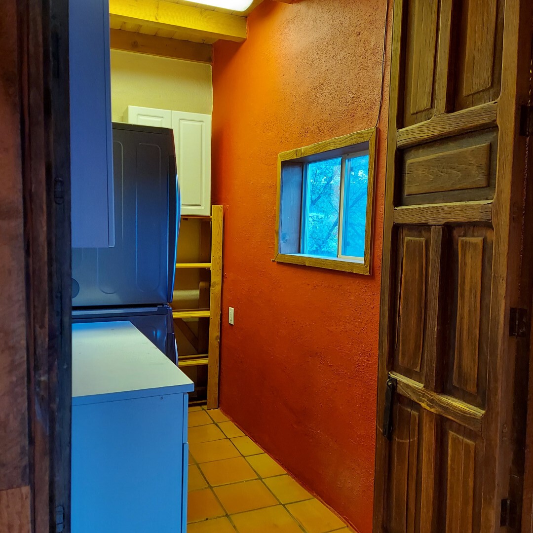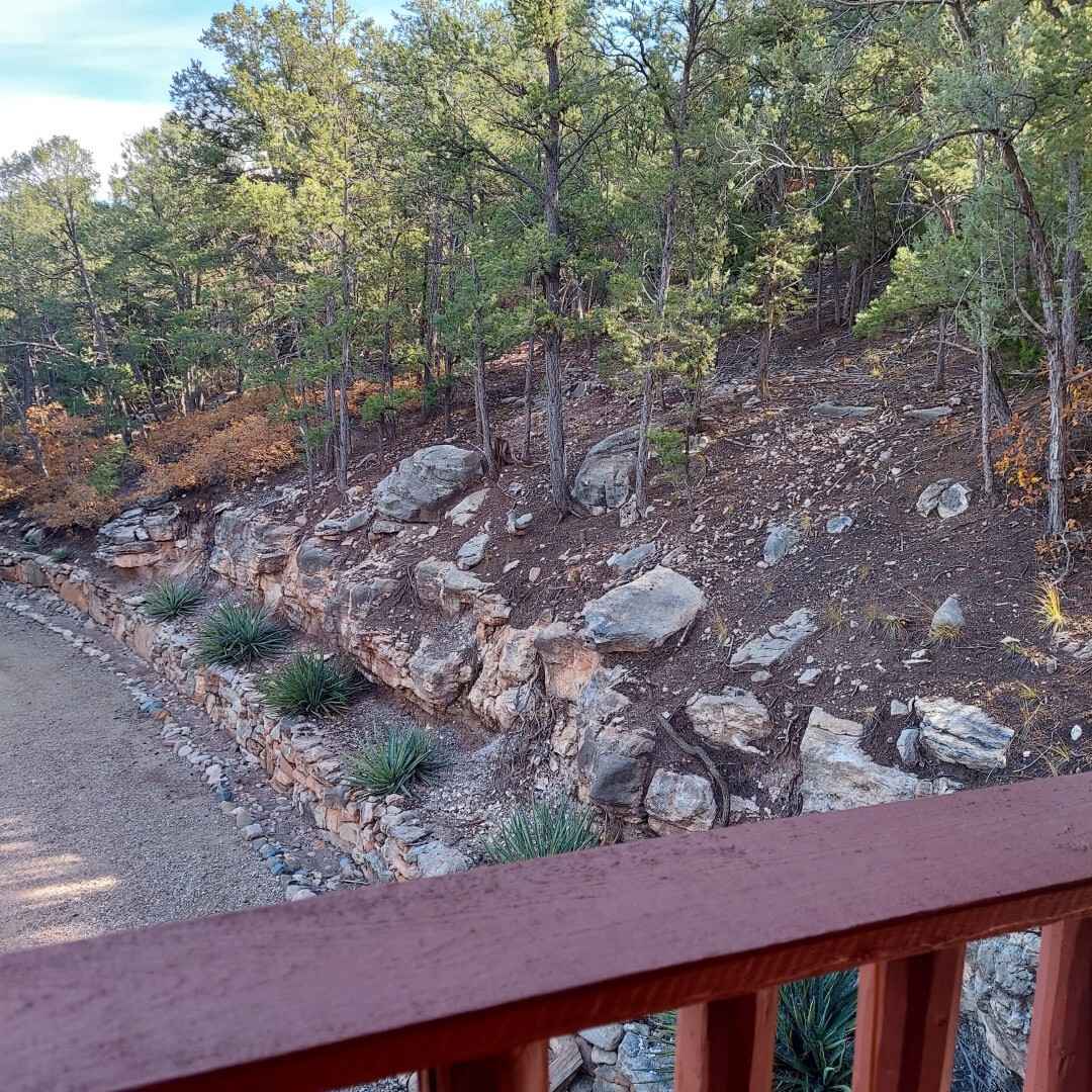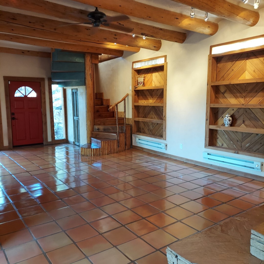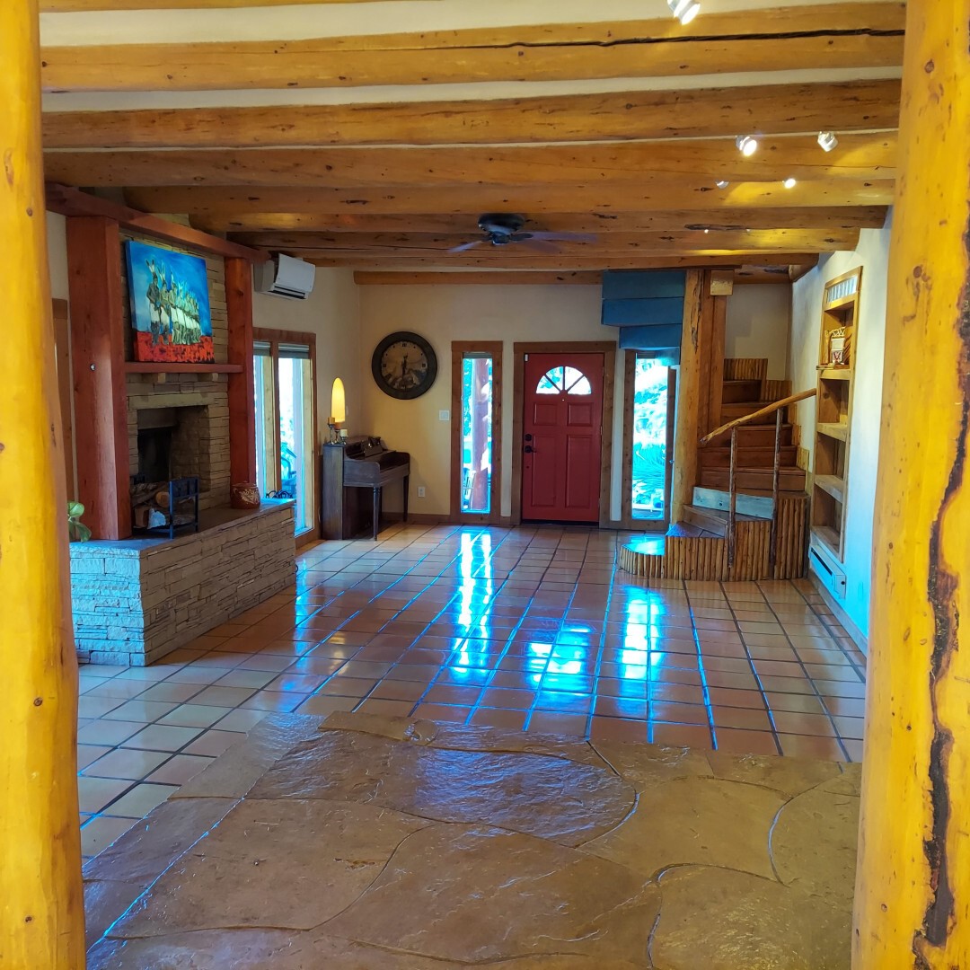 This stunning mission-style home is graced with incredible forest & mountain views along with close proximity to Santa Fe, & the Pecos Wilderness area recreation. The two bedrooms, two bathrooms, den/library, & two living room areas contribute to the spacious interior area of nearly 2,300 sq. ft. The beautiful exterior features multiple patios & gardens, all with drip systems, stone walls, & a mountainside terraced garden complete with solar lighting. Homeowners have made ongoing upgrades to this property during their 13 years here. During the past four years alone, the following enhancements have been made at a cost exceeding $120,000: Kitchen remodeling with GE Cafe appliances, soft-close doors with manypull-outs, a ventless, black glass range hood, recessed & pendant lighting, & white cabinets accented with Salt Cedar twigs; Primary bathroom remodeling with new lighting, custom Mexican tile work throughout, new enlarged window, upgraded fixtures, & custom shower; New (2023) Propanel roof; Two heat/AC pumps; His/hers shoe cabinets in the walk-in primary closet; Latilla privacy fencing around the back yard & coyote fencing around the new side yard patio; Demolition of former 2nd story deck; The wraparound deck was redesigned & rebuilt with maintenance-free composite wood flooring. A roof was added, & a custom gate & bridge now connect the deck to the mountainside for easy access to the Pinon Ridge neighborhood hiking trails. This two-story property sits on a generous forested 1.25 acres providing beauty & privacy. Two outdoor stairways give access to the large lower yard & raised bed garden. An 8' x 10' shed is newly installed. River rock streams divert monsoon rains away from the house & driveway & enhance the lovely landscaping. Every window & door features dual-cellular top-down, bottom-up energy efficient blinds. Only 20 minutes to Santa Fe, this exquisite home provides peace, charm, & convenience in a splendid setting. 2.25% assumable VA loan