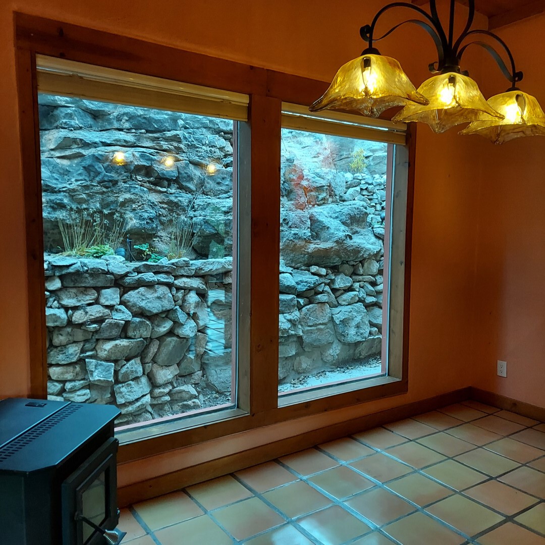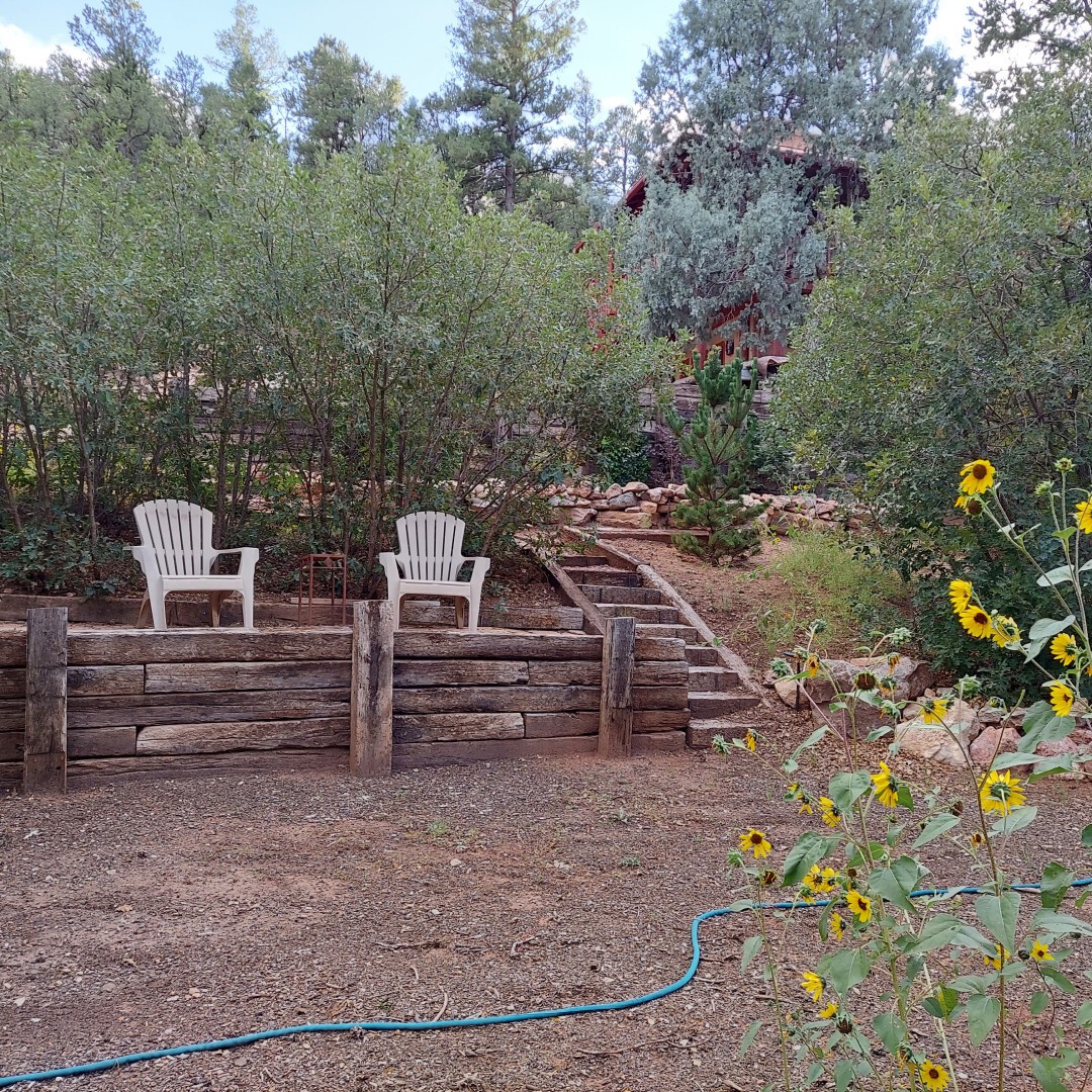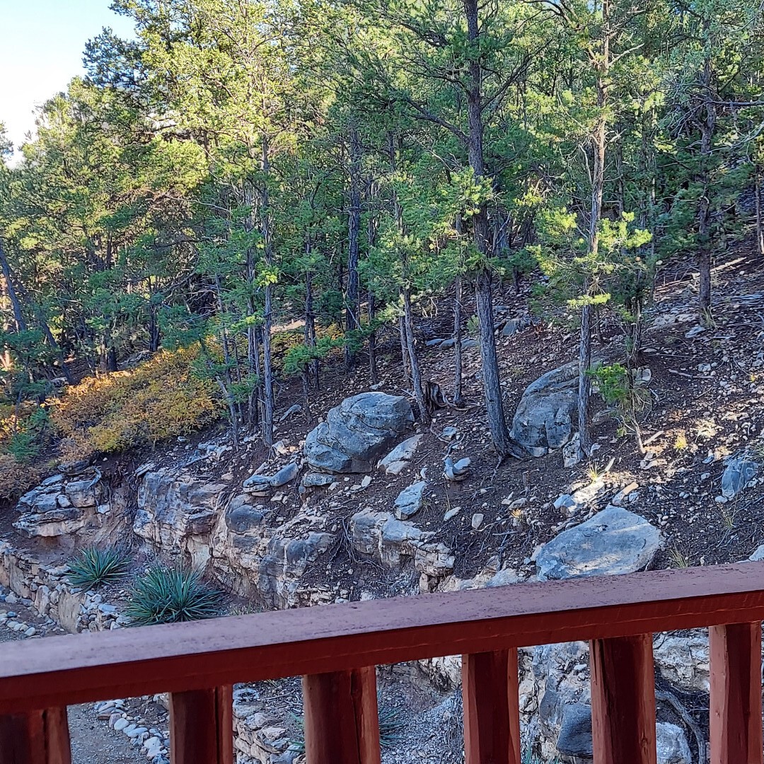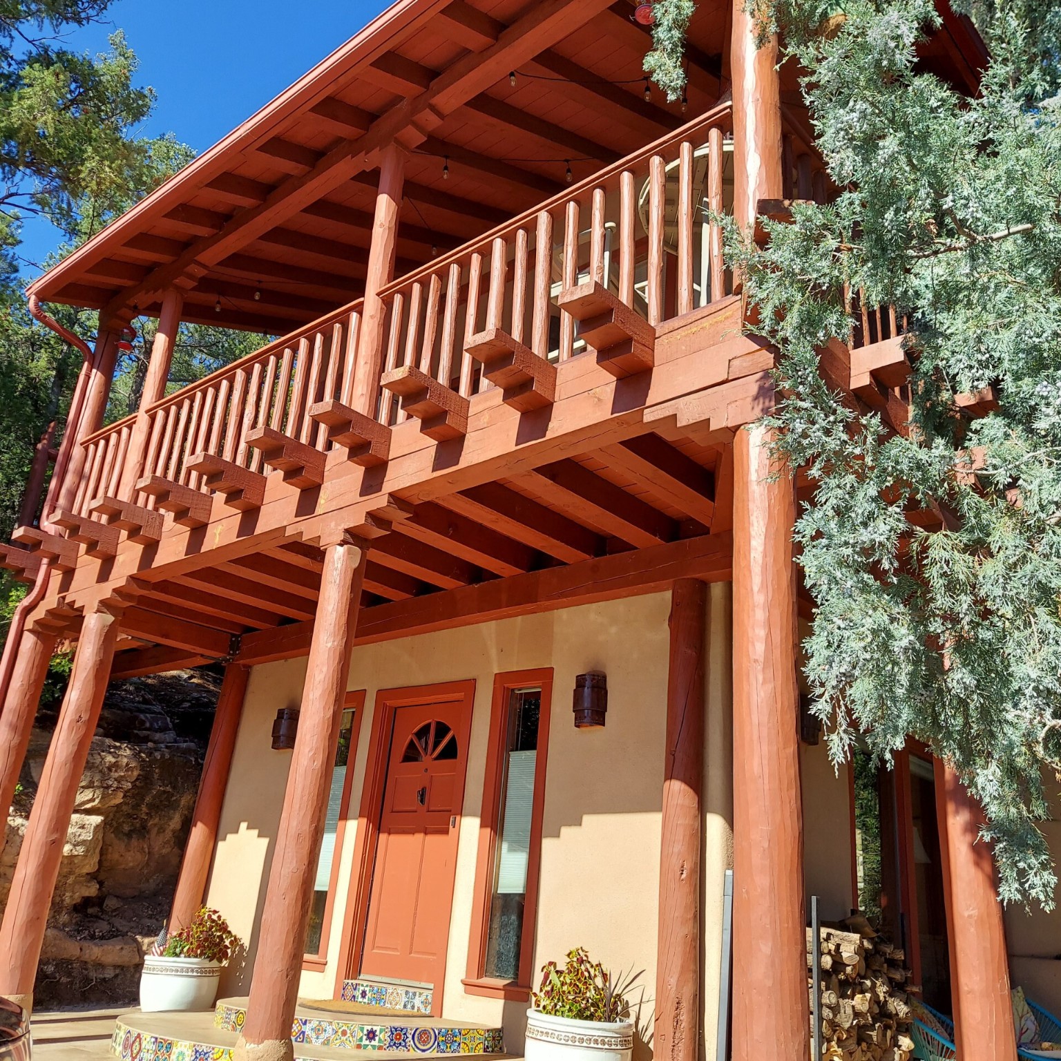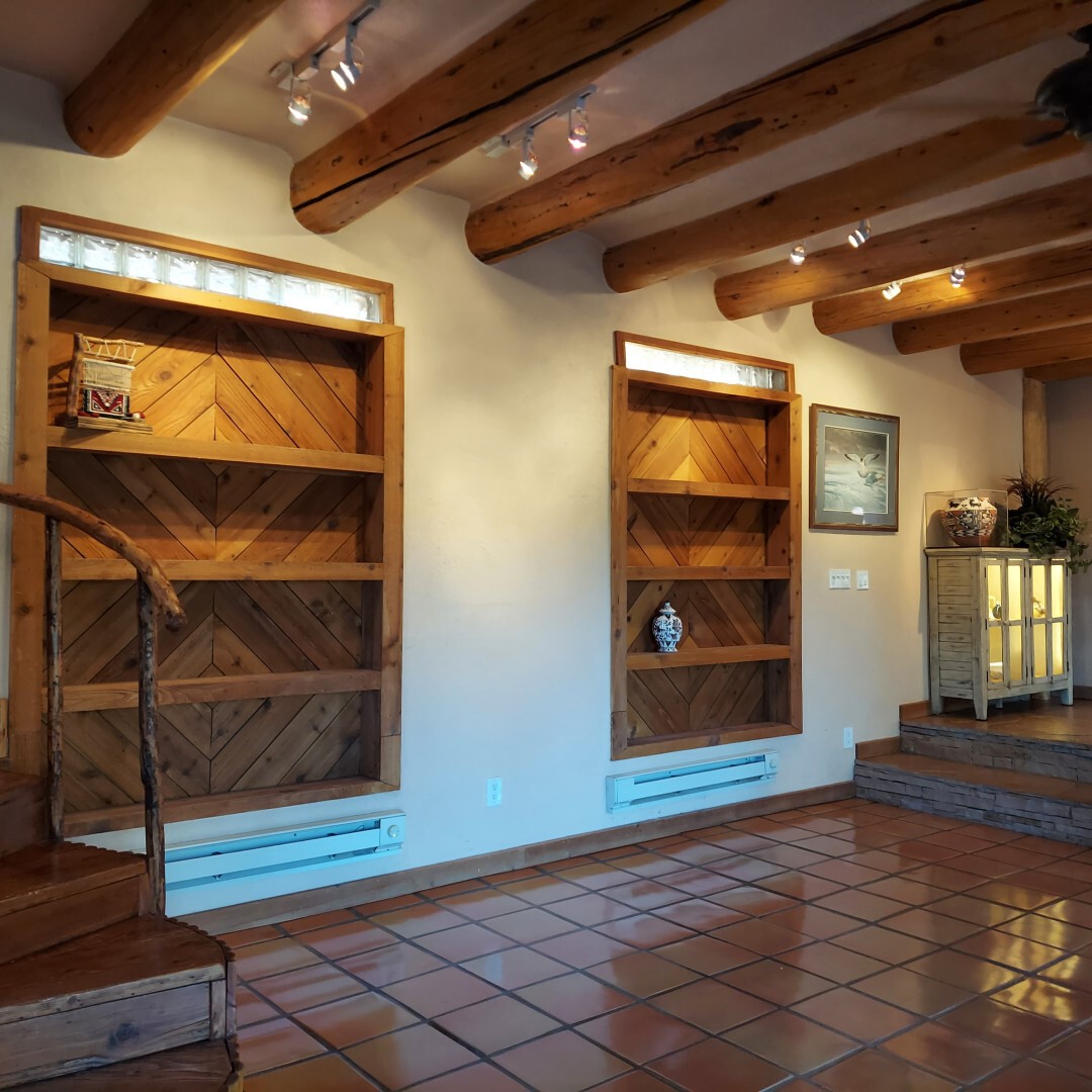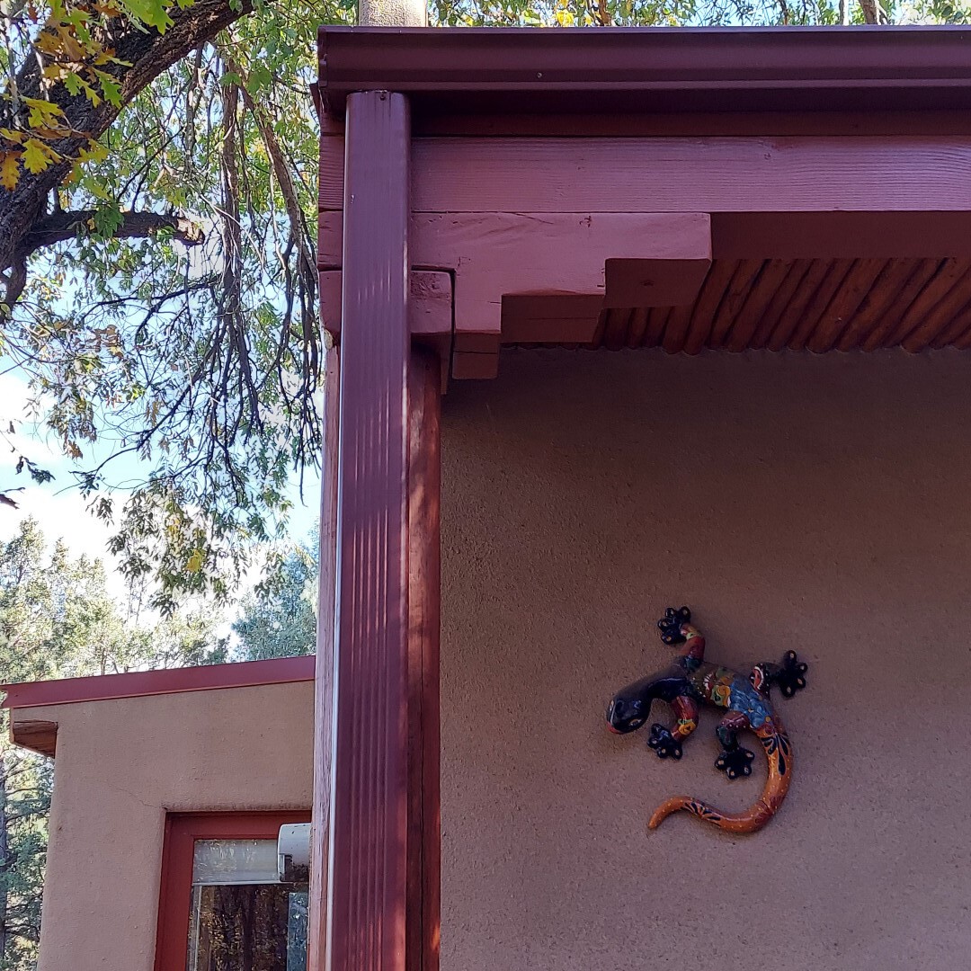 This stunning mission-style home is graced with incredible forest & mountain views along with close proximity to Santa Fe, & the Pecos Wilderness area recreation. The two bedrooms, two bathrooms, den/library, & two living room areas contribute to the spacious interior area of nearly 2,300 sq. ft. The beautiful exterior features multiple patios & gardens, all with drip systems, stone walls, & a mountainside terraced garden complete with solar lighting. Homeowners have made ongoing upgrades to this property during their 13 years here. During the past four years alone, the following enhancements have been made at a cost exceeding $120,000: Kitchen remodeling with GE Cafe appliances, soft-close doors with manypull-outs, a ventless, black glass range hood, recessed & pendant lighting, & white cabinets accented with Salt Cedar twigs; Primary bathroom remodeling with new lighting, custom Mexican tile work throughout, new enlarged window, upgraded fixtures, & custom shower; New (2023) Propanel roof; Two heat/AC pumps; His/hers shoe cabinets in the walk-in primary closet; Latilla privacy fencing around the back yard & coyote fencing around the new side yard patio; Demolition of former 2nd story deck; The wraparound deck was redesigned & rebuilt with maintenance-free composite wood flooring. A roof was added, & a custom gate & bridge now connect the deck to the mountainside for easy access to the Pinon Ridge neighborhood hiking trails. This two-story property sits on a generous forested 1.25 acres providing beauty & privacy. Two outdoor stairways give access to the large lower yard & raised bed garden. An 8' x 10' shed is newly installed. River rock streams divert monsoon rains away from the house & driveway & enhance the lovely landscaping. Every window & door features dual-cellular top-down, bottom-up energy efficient blinds. Only 20 minutes to Santa Fe, this exquisite home provides peace, charm, & convenience in a splendid setting. 2.25% assumable VA loan