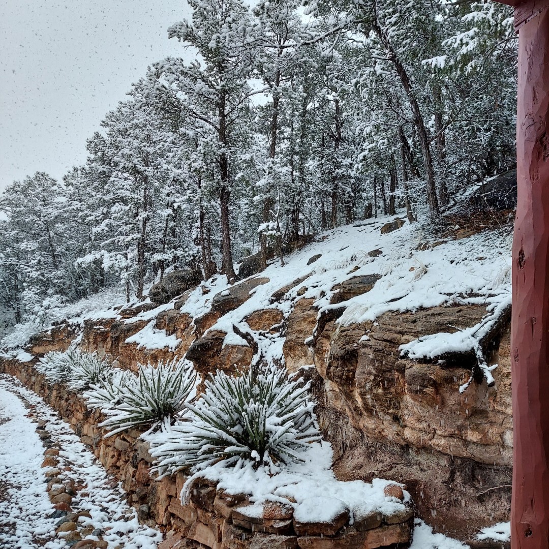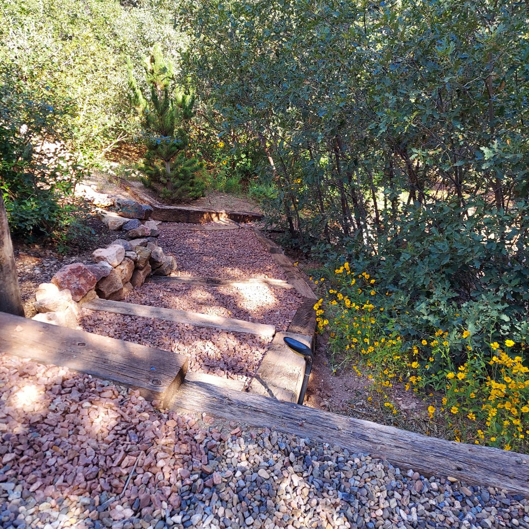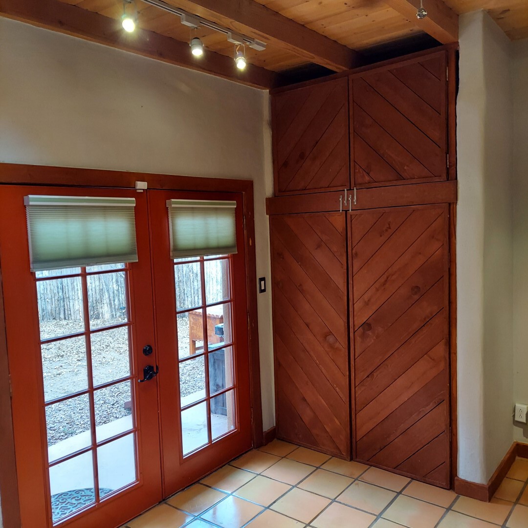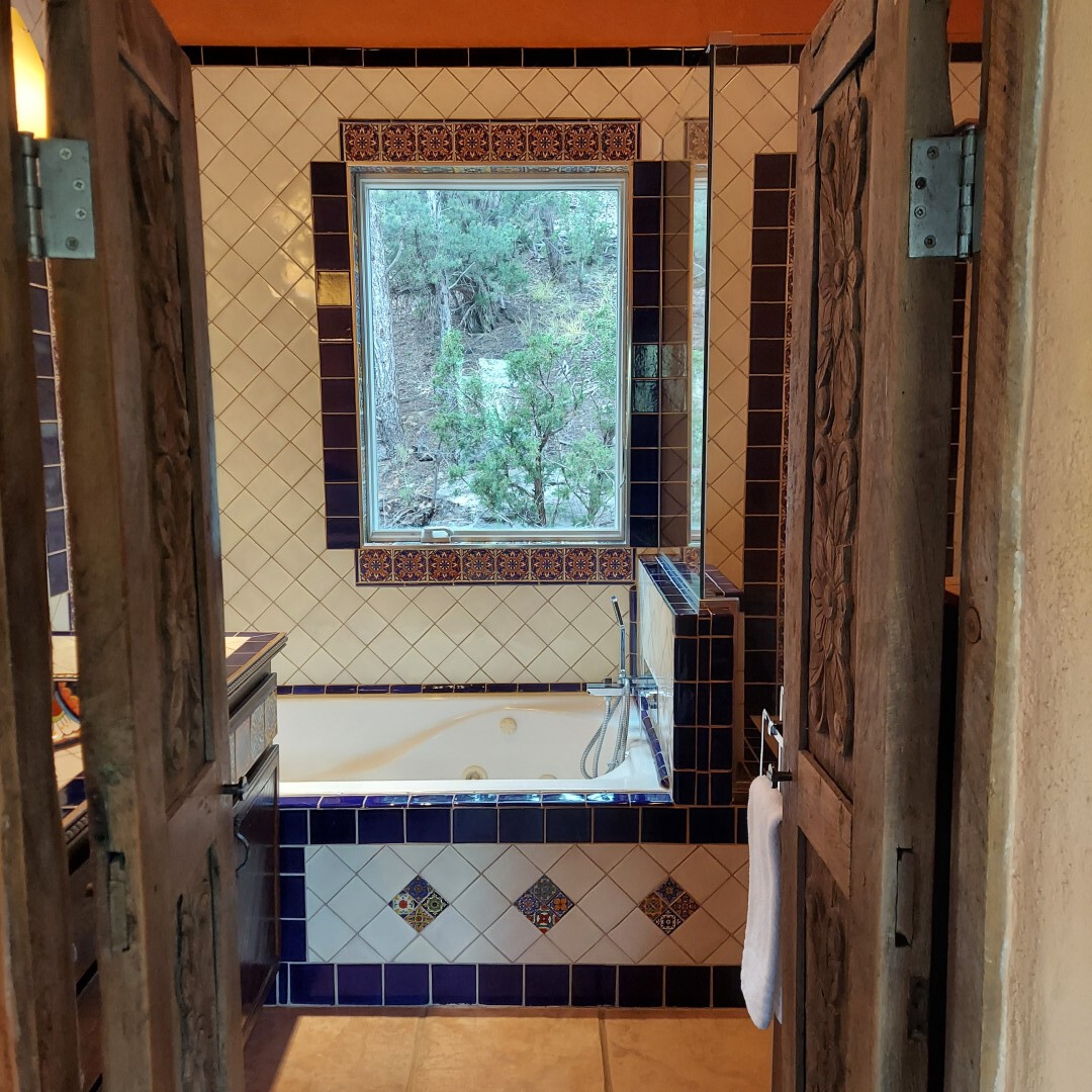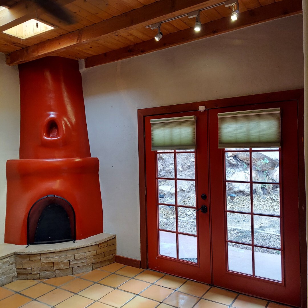 This stunning mission-style home is graced with incredible forest & mountain views along with close proximity to Santa Fe, & the Pecos Wilderness area recreation. The two bedrooms, two bathrooms, den/library, & two living room areas contribute to the spacious interior area of nearly 2,300 sq. ft. The beautiful exterior features multiple patios & gardens, all with drip systems, stone walls, & a mountainside terraced garden complete with solar lighting. Homeowners have made ongoing upgrades to this property during their 13 years here. During the past four years alone, the following enhancements have been made at a cost exceeding $120,000: Kitchen remodeling with GE Cafe appliances, soft-close doors with manypull-outs, a ventless, black glass range hood, recessed & pendant lighting, & white cabinets accented with Salt Cedar twigs; Primary bathroom remodeling with new lighting, custom Mexican tile work throughout, new enlarged window, upgraded fixtures, & custom shower; New (2023) Propanel roof; Two heat/AC pumps; His/hers shoe cabinets in the walk-in primary closet; Latilla privacy fencing around the back yard & coyote fencing around the new side yard patio; Demolition of former 2nd story deck; The wraparound deck was redesigned & rebuilt with maintenance-free composite wood flooring. A roof was added, & a custom gate & bridge now connect the deck to the mountainside for easy access to the Pinon Ridge neighborhood hiking trails. This two-story property sits on a generous forested 1.25 acres providing beauty & privacy. Two outdoor stairways give access to the large lower yard & raised bed garden. An 8' x 10' shed is newly installed. River rock streams divert monsoon rains away from the house & driveway & enhance the lovely landscaping. Every window & door features dual-cellular top-down, bottom-up energy efficient blinds. Only 20 minutes to Santa Fe, this exquisite home provides peace, charm, & convenience in a splendid setting. 2.25% assumable VA loan