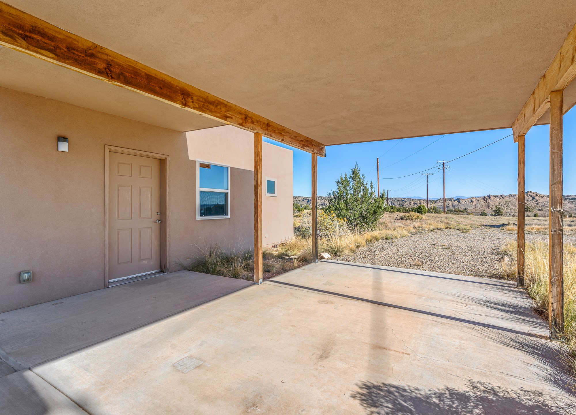 Thoughtfully designed small house on almost 5 acres. This 562 square foot, studio style home proves the adage that good things come in small packages. On a flat hilltop above Goldmine road, this home takes in views of Cerrillos and the Galisteo valley, as well as the Sangre de Cristo mountains. With stainless steel appliances, ample light, and stained concrete floors, the home feels more spacious than it's square footage would suggest. Designed with expansion in mind, it would be easy to add a bedroom, and the property is sold with two lots, a buyer could live in this home while building on the other lot. On septic and community water, within walking distance of Cerrillos and a short drive to Santa Fe. House has been smoked in and will need paint.