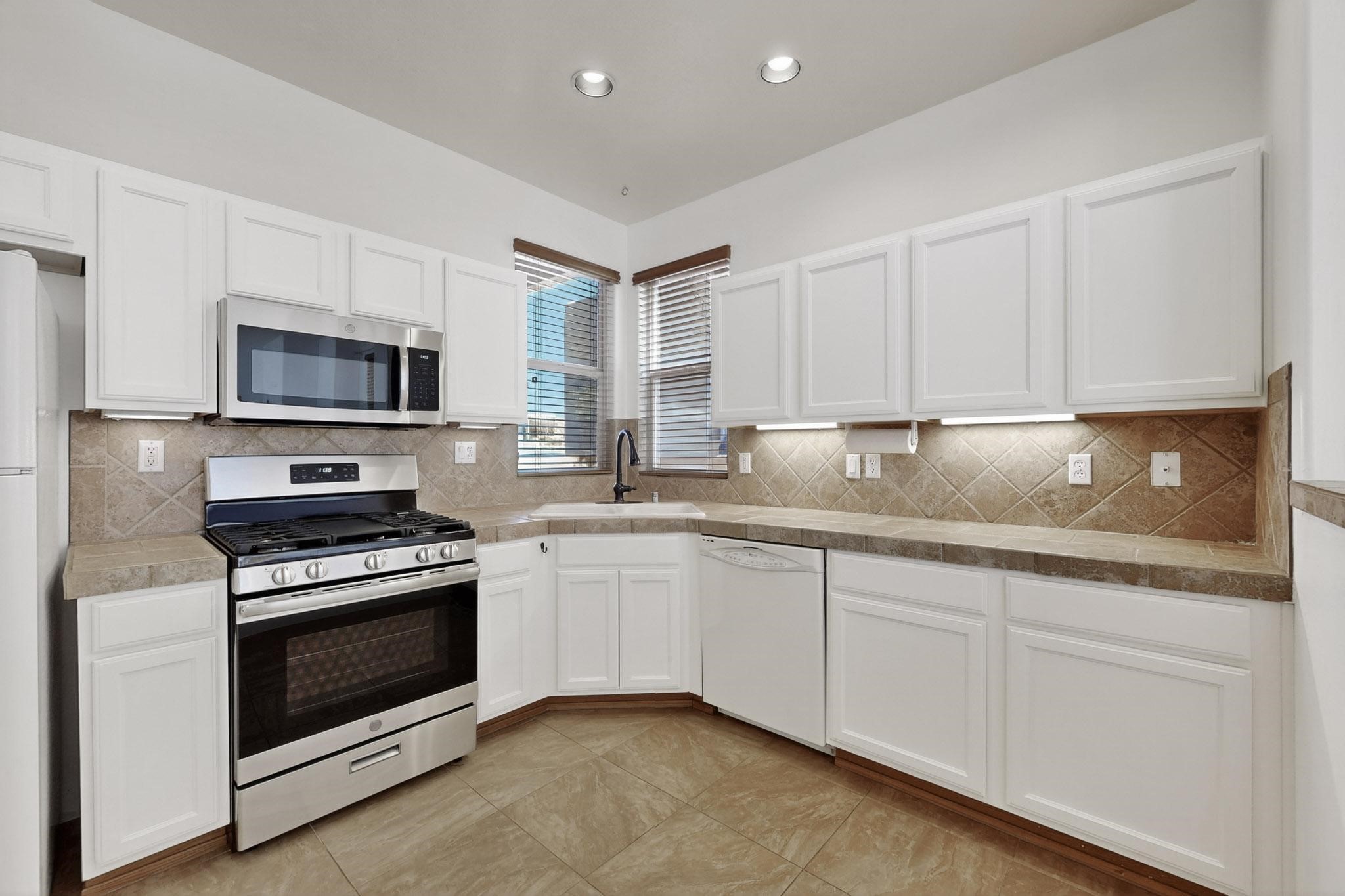 Have you been searching for your dream home in Rancho Viejo? You've come to the right place! This is an end unit home that has been meticulously cared for. The front and side yard have been nicely landscaped and there is a custom-made front entry screen door to welcome you inside. This the Nambe floorplan which boasts a soaring 19 ft. ceiling in the living room with viga accents, along with a diamond plaster kiva gas fireplace to complete the coziness of the home. Downstairs has tiled floors while the upstairs has a neutral color of carpet. There is a half bath downstairs, along with alaundry room with additional storage. The garage has more storage with built in shelving securely attached to the wall. Upstairs are the two bedrooms, two baths and loft area that can have a multitude of uses. The loft also has a door, with a magnetic screen, leading outside to a nice deck for you to enjoy the southern views and the park across the street. The primary bedroom also has a door, with a magnetic screen, leading to a larger deck and pergola for you to enjoy the northern views. The primary closet also has additional shelving. The HOA has recently had the roof replaced and ownerreplaced the water heater and PRV in 2025. With easy access into the subdivision, this home is close to restaurants, schools and a community park with connecting biking/walking trails.