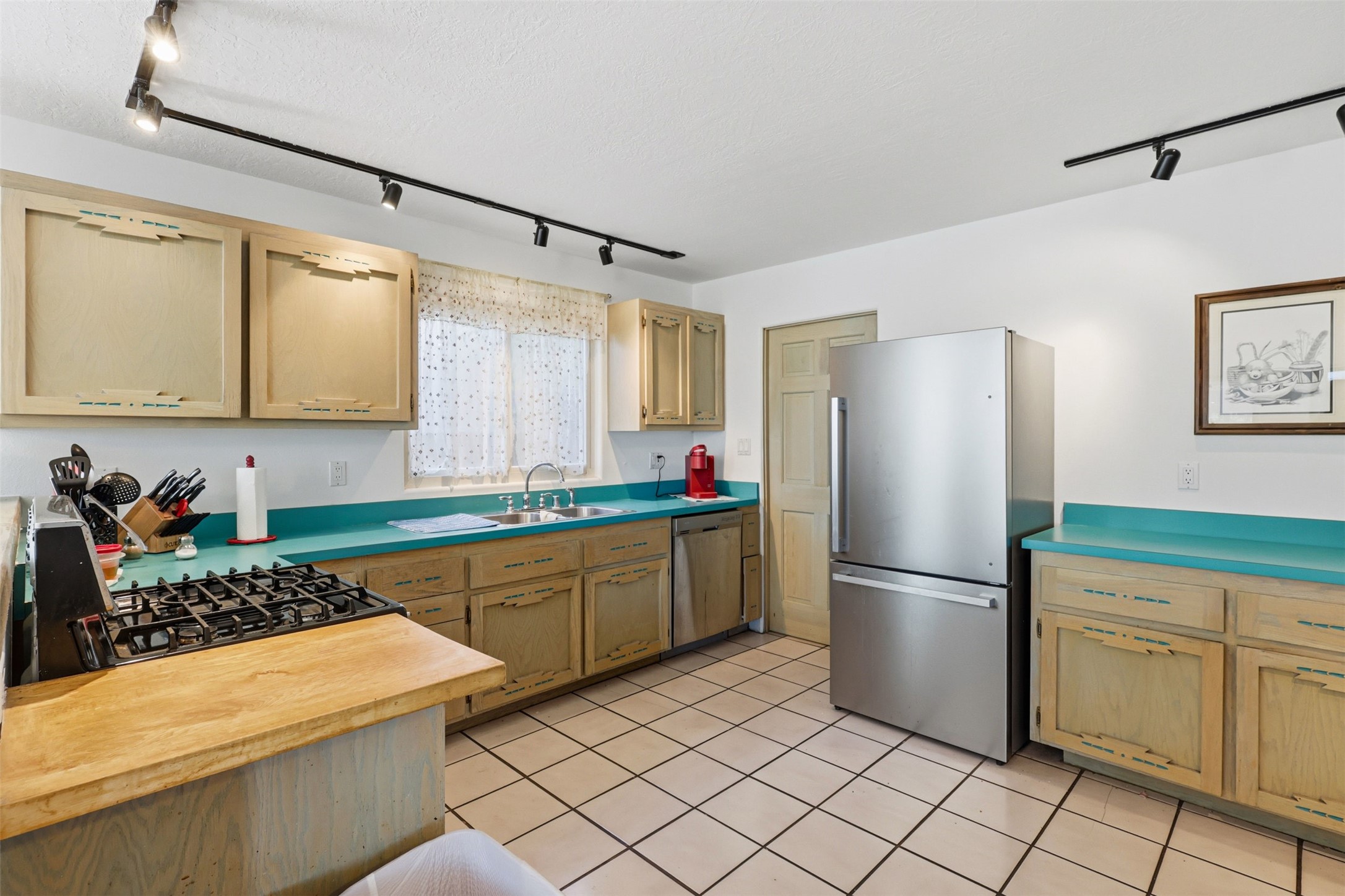 Step inside this beautiful single-level home showcasing the timeless charm and warmth Santa Fe is known for. Featuring 3 bedrooms and 2 baths, it offers an open floor plan with high beamed ceilings, a kiva fireplace, and natural light throughout. The inviting kitchen and dining area open to a private fenced backyard, perfect for gatherings or quiet evenings under the New Mexico sky. The spacious primary suite provides peaceful separation, and the quiet cul-de-sac location offers both privacy and convenience near shopping, dining, and downtown. Do not miss this opportunity to schedule your private showing today and discover true Santa Fe living.