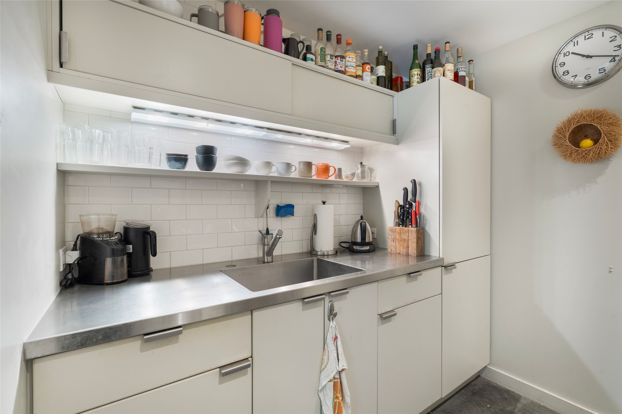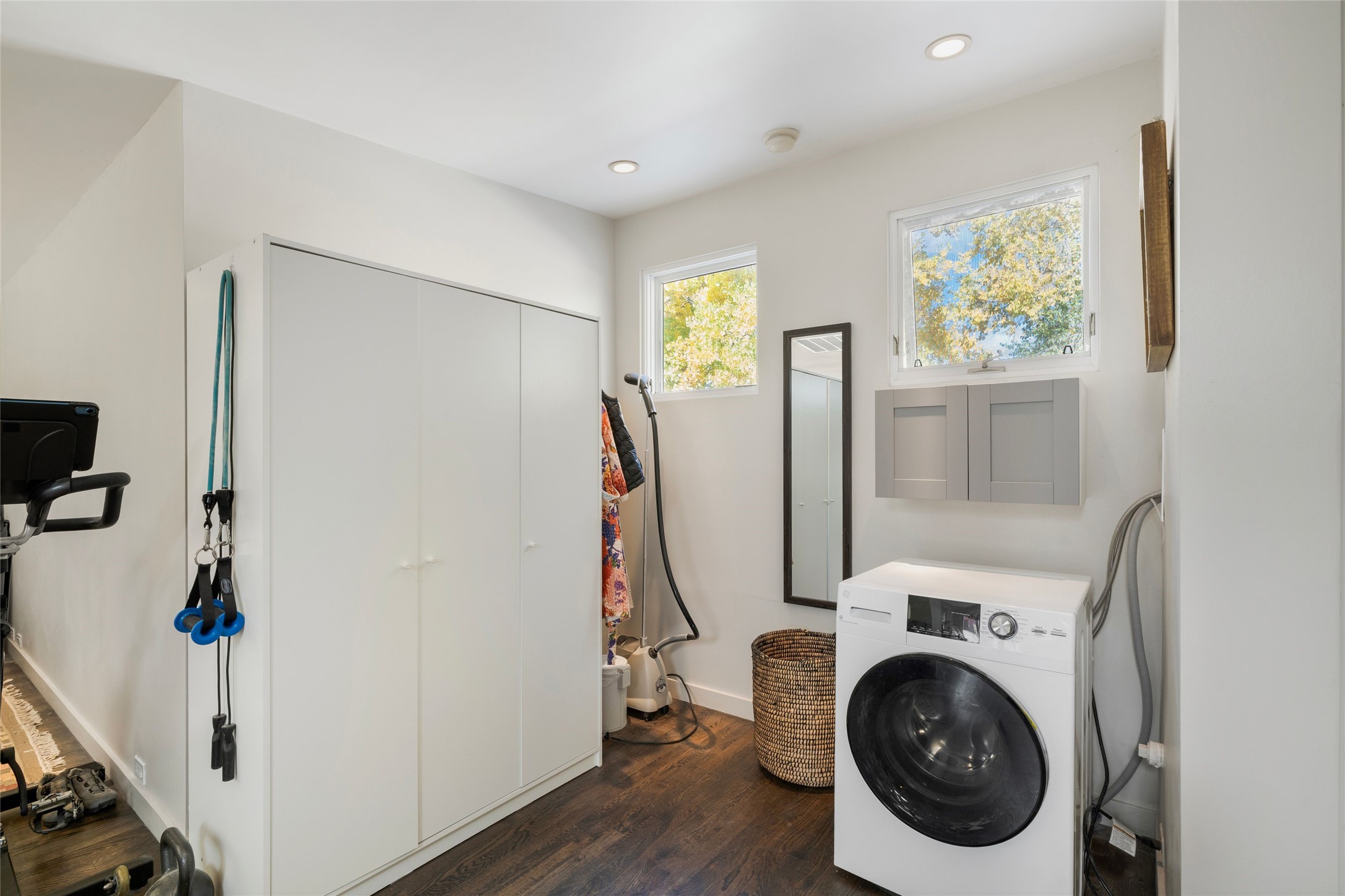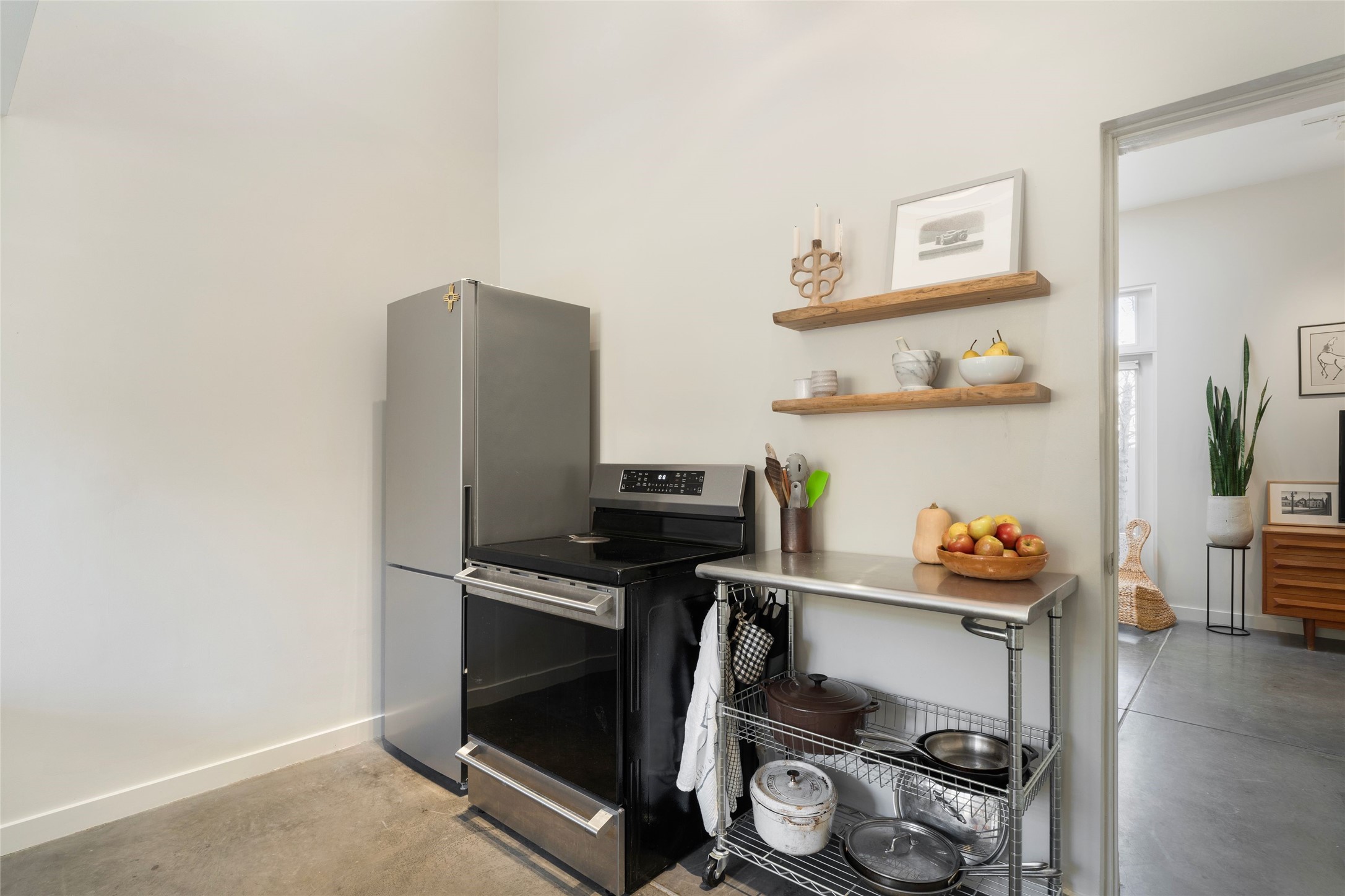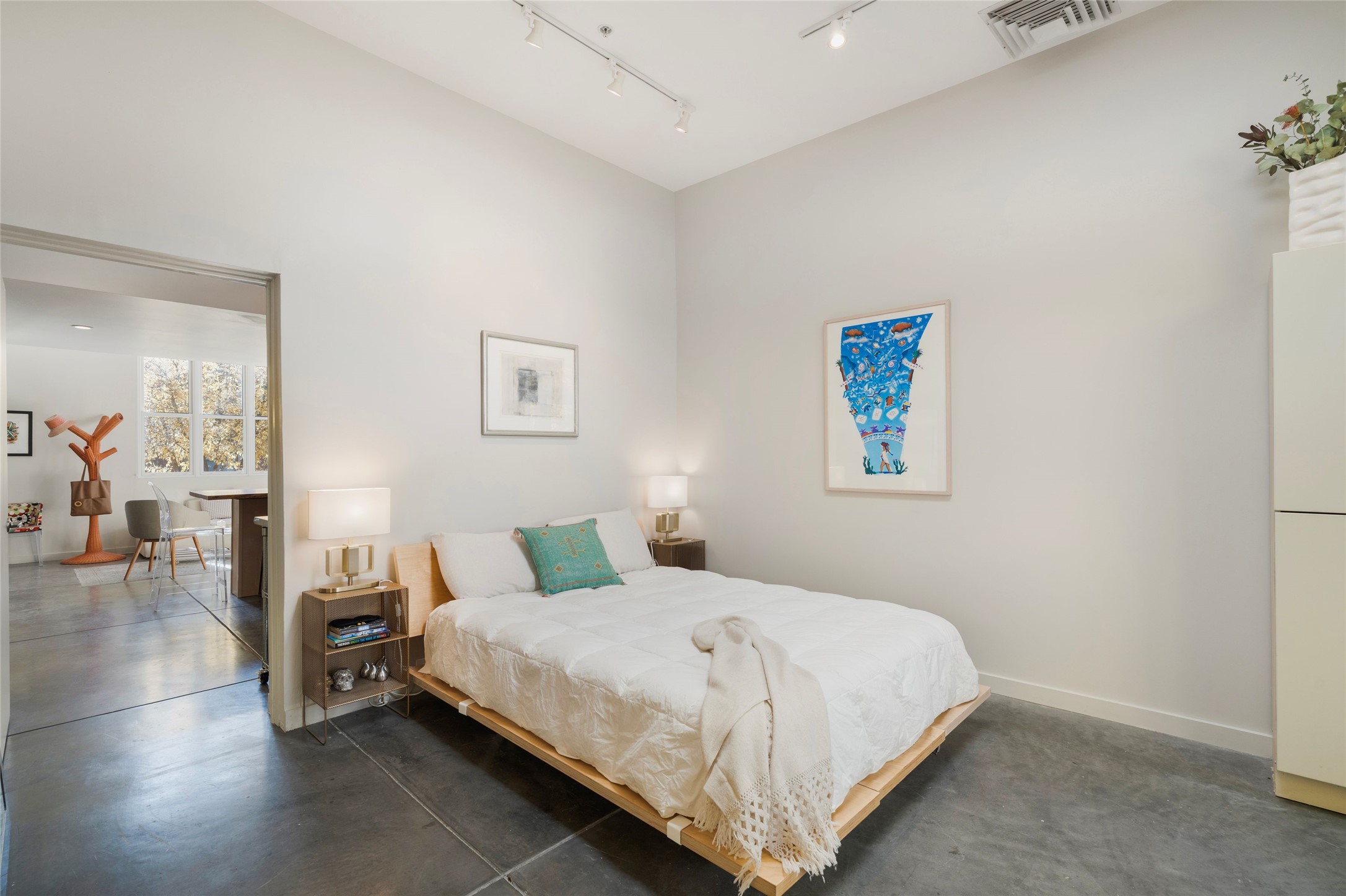 Set within the tranquil, landscaped interior of the Marquez Lofts complex, this bright, stylish condo--with no unit above it--has a desirable ground-floor entrance and rare, private back courtyard. The kitchen is creatively divided into two areas. Sink and storage are tucked tidily into a Butler's Pantry wing while a refrigerator and induction stove run along the wall behind the gorgeous, live edge, cherry and sapele wood dining counter by Boxcar Woody. A gentle flight of steps, with under-stair storage, leads to the sleeping loft. Downstairs, the spacious main bedroom has an ensuite, bath. Two double doors access the walled courtyard, perfect for pets or as an intimate retreat. Alternatively, with its back gate entry, this space could serve clients, leaving the main section for personal use. Graced with character, convenience and contemporary charm, this live-work dwelling favors the needs of creatives, entrepreneurs, and anyone seeking a residential refuge in a prime location by the Railyard, restaurants and shopping.