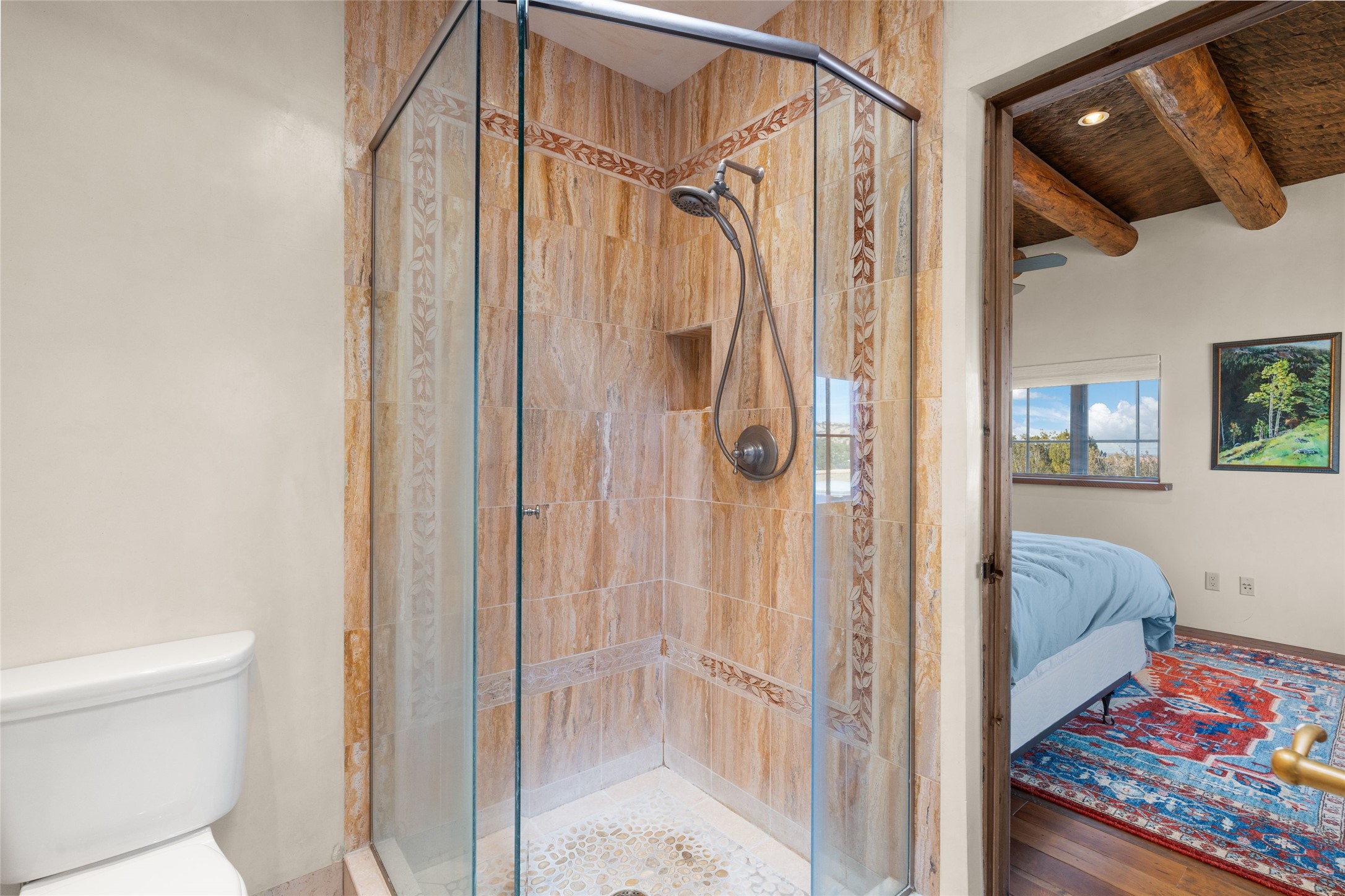 Backing up to breathtaking Tesuque Pueblo tribal land, this private and gated Tesuque property is a short drive to El Nido Restaurant, the famed Tesuque Village Market and the world-renowned Four Seasons Resort and Spa. The totality of the property consists of 13.24 +/- acres, with two separately deeded lots, two private wells, and a 5,112 +/- sq.ft. adobe and frame constructed home that exudes classic Santa Fe style and high-end craftsmanship. The home is multi leveled with two bedrooms and one bath upstairs and two bedrooms and two and a half baths on the main level. A separate office space is located near the owners suite with an additional private gallery room near the entry, perfect for quiet reflection. The basement has temperature and humidity controlled art or wine storage. Smooth plaster walls are awash with high desert light and mountain views evolve with the clouds. Formal living spaces open out onto delightful indoor/outdoor entertaining options of spacious portals that weave the beauty of nature into the living environment.This sensuous property was constructed with every attention to detail including hardwood and stone tile floors, vigas and beams, coved ceilings, custom wood doors, wood and copper windows, custom cabinetry, stone countertops, and 6 wood burning fireplaces both inside and outside. This idyllic property has plenty of potential with the adjacent vacant lot overlooking mountain and higher elevation views ideal for future improvements. This is an impressive retreat home completely tucked away in one of Santa Fe's finest locales.
