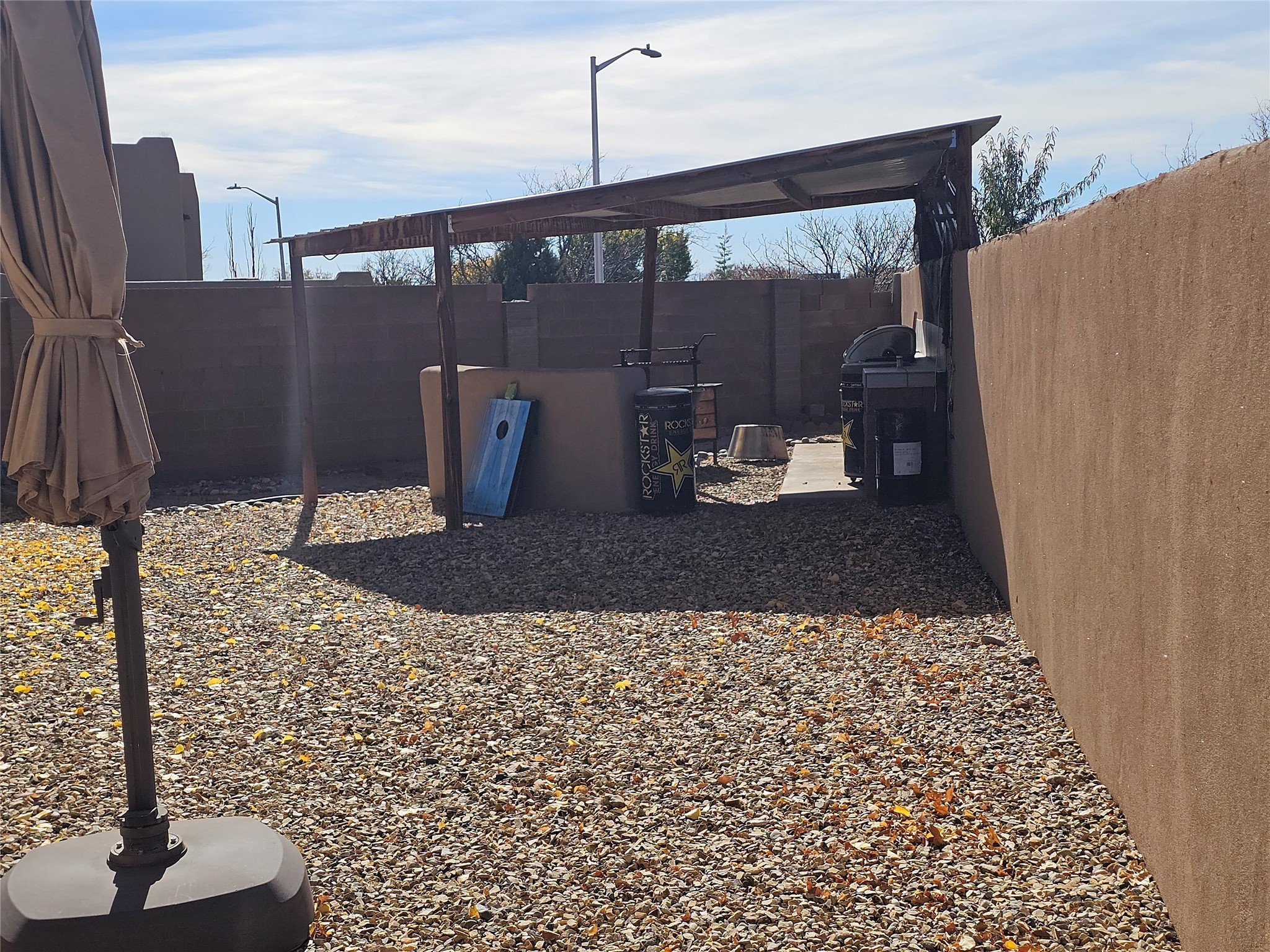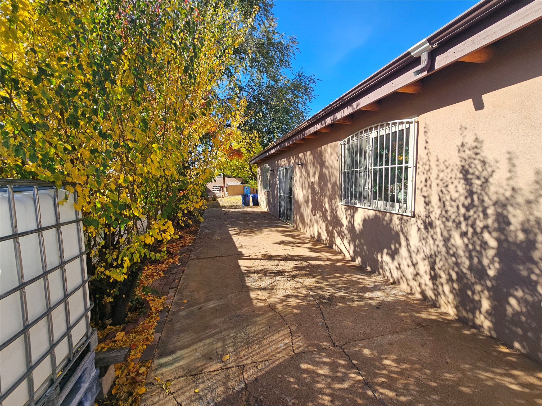 This is no ordinary manufactured home. Unique in so many ways: stuccoed double-wide with significant on-site-built additions. Large corner lot. Permanent foundation. Saltillo floor tile, vigas, hard trowel plaster walls, and a metal roof. Newer Anderson windows, four good-sized bedrooms, and three full baths. Radient heat . Large living and dining rooms and a fabulous kitchen. This home sits on a large .22-acre lot with a covered outdoor kitchen and entertainment area, plus a fire pit. Fully fenced and walled-in yard with double gates and a double carport and a concrete driveway for parking