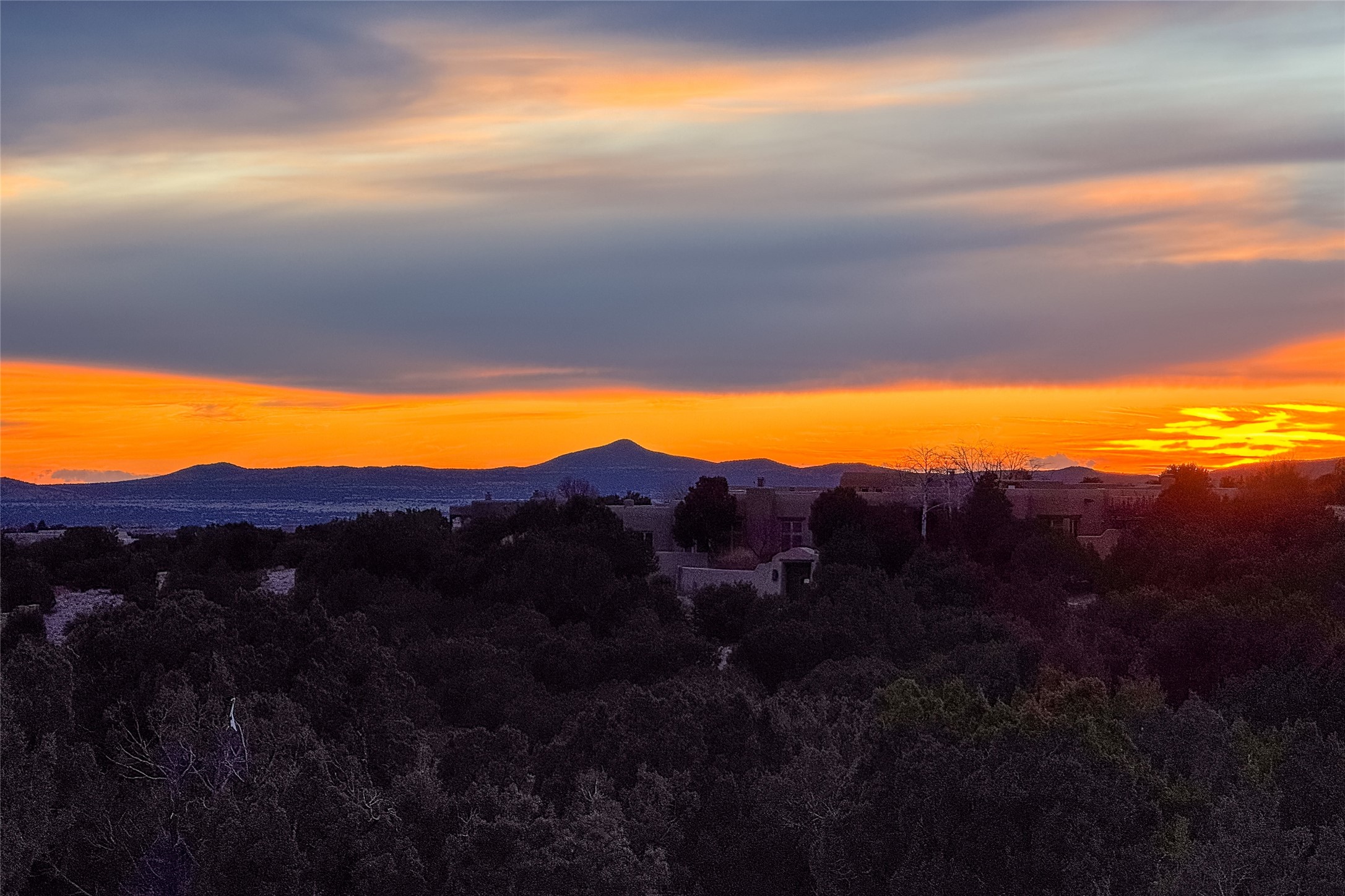 Don't miss the hilltop luxury of this brand-new, beautifully crafted home! This rare single-level residence offers four spacious bedrooms -- each with its own private bath -- plus a dedicated office and a flexible space perfect for a home gym or studio. The expansive primary suite features two walk-in closets and a spa bath complete with a gorgeous soaking tub. The stunning chef's kitchen with double islands designed for cooking, gathering, and entertaining is truly the heart of the home with a massive walk-in pantry ensuring everything has its place. With dining on one side and cozy informal sitting on the other, the kitchen becomes not just a place to prepare meals but the center of family gatherings and entertaining. All flows easily into the living room with stunning mountain views. Enjoy year-round comfort with radiant heat, forced air heating, and air conditioning. Set on a desirable hilltop, this home delivers dramatic, close-up views of the Sangre de Cristo Mountains. You'll love the feeling of privacy and escape just minutes from downtown Santa Fe -- all within the secure, gated community of Las Campanas, known for exceptional care, amenities, and peace of mind. If you're seeking top-notch design, luxurious comfort, an unbeatable location, and a lifestyle that meets your every wish... this is it!