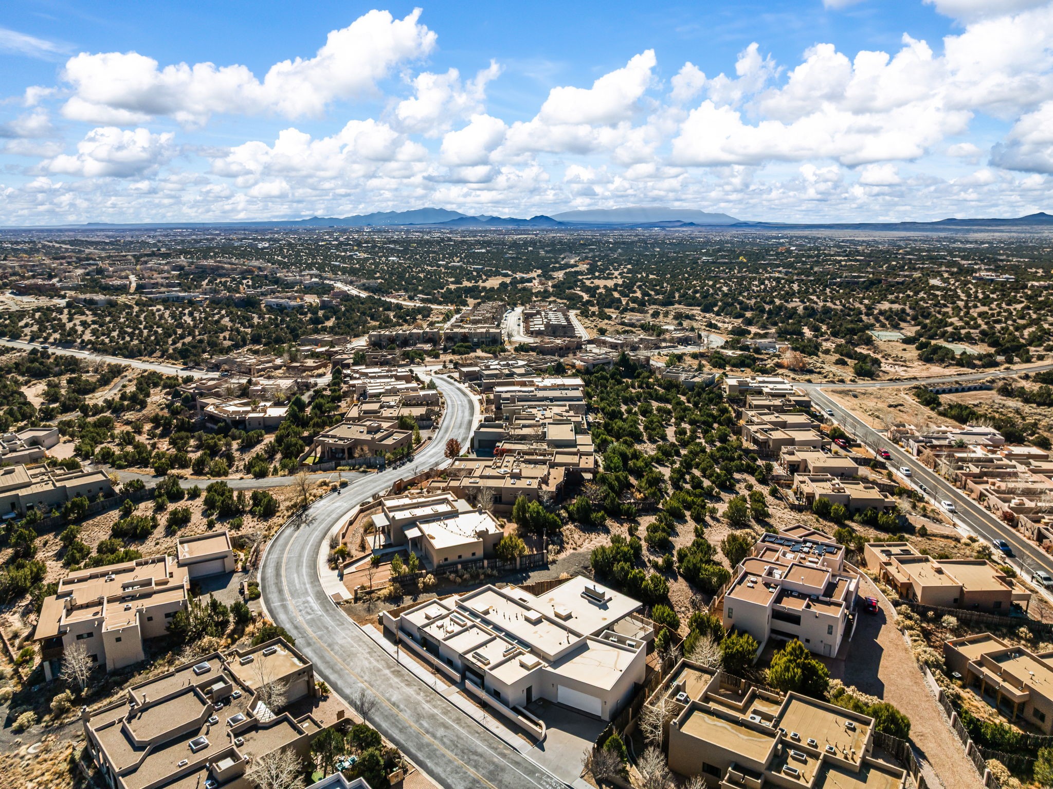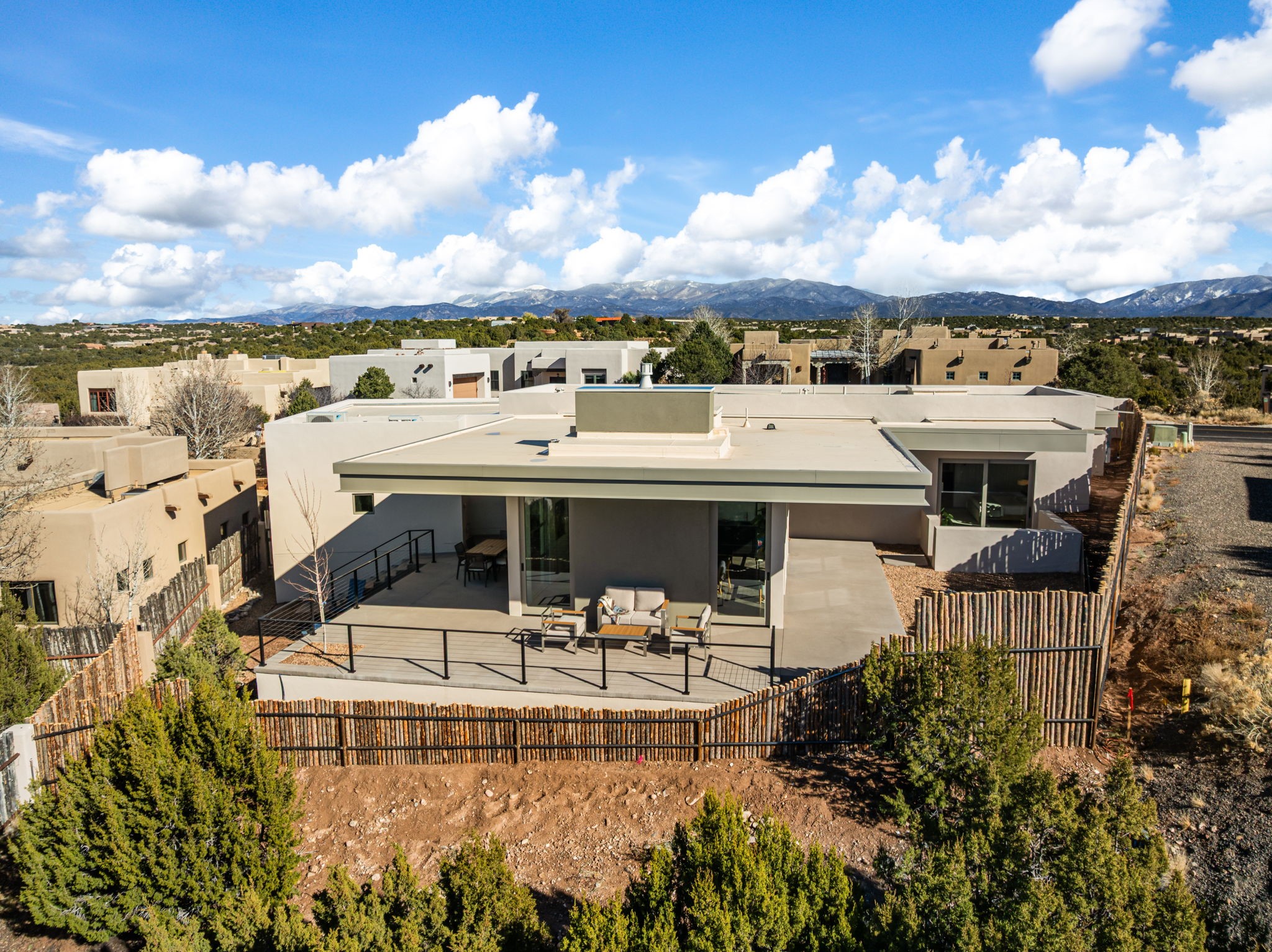 Mesa Modern | Move in now! Experience refined Contemporary Southwestern living in this stunning new construction home by Acacia Builders, a family owned and operated firm renowned for crafting sophisticated, high quality residences. Nestled in the desirable Aldea de Santa Fe community, this 3-bedroom + office home blends modern design with timeless craftsmanship. Just completed, the home Features: Sleek concrete flooring throughout, lux radiant in-floor heating, expansive picture windows that capture western views of the Jemez Mountains, and clean architectural lines that define contemporary elegance. Thoughtfully designed using Eco Friendly, ICF construction materials (insulated concrete forms) and a floorplan to maximize light and space, this residence will offer an ideal balance of form and function -- perfect for both serene living and stylish entertaining. With a legacy rooted in quality, attention to detail, and innovation, Acacia Builders delivers a home where every design choice reflects a deep commitment to excellence and modern aesthetics. Now is your opportunity to own a future-forward home in one of Santa Fe's most sought-after communities.