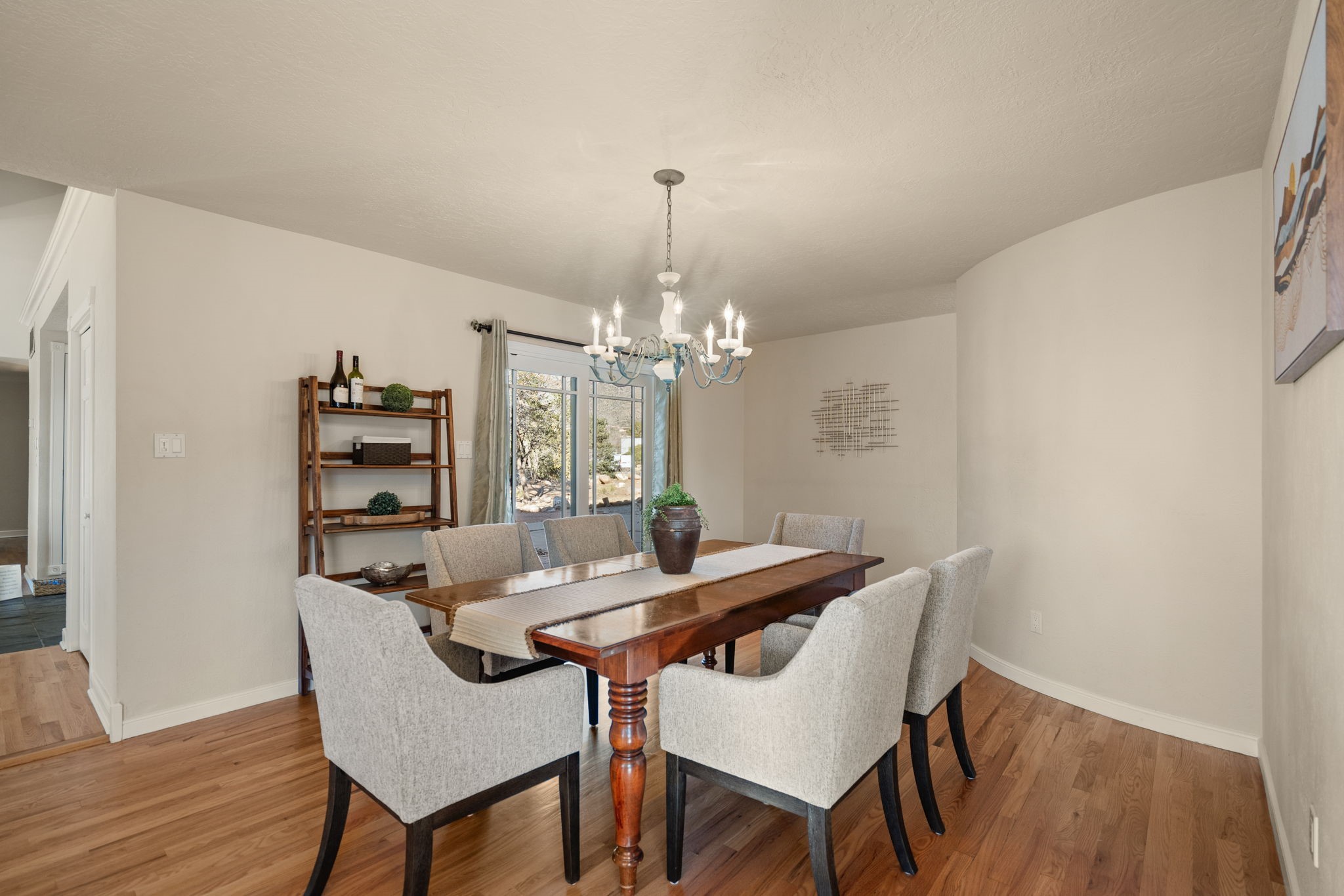 Move-in ready with major upgrades already complete! This stunning Sandia Heights home impresses with new stucco, two brand-new furnaces, a new water heater, newer evaporative coolers, radon mitigation, a whole-house water softener with dechlorinator and potassium treatment system, and a recently passed septic inspection--delivering comfort, efficiency, and true peace of mind. Brand-new decks extend living space off the primary suite as well as into the backyard, ideal for morning coffee, fiery sunsets, and starlit evenings. Inside, gleaming hardwood floors and an open, light-filled layout create an inviting setting for everyday living and entertaining. The chef-inspired kitchen features granite countertops, a gas cooktop island, generous cabinetry, and reverse osmosis filtration, flowing into a welcoming great room complemented by a classic Kiva fireplace. The luxurious upper-level owner's retreat offers a spa-like bath, sitting area, private balcony, and breathtaking Sandia Mountain and city light views. Enjoy nearby hiking and biking trails, peaceful deer crossings, and the serenity of Sandia Heights living, all set on a .58-acre lot with endless backyard potential- your ABQ Dream Home awaits.