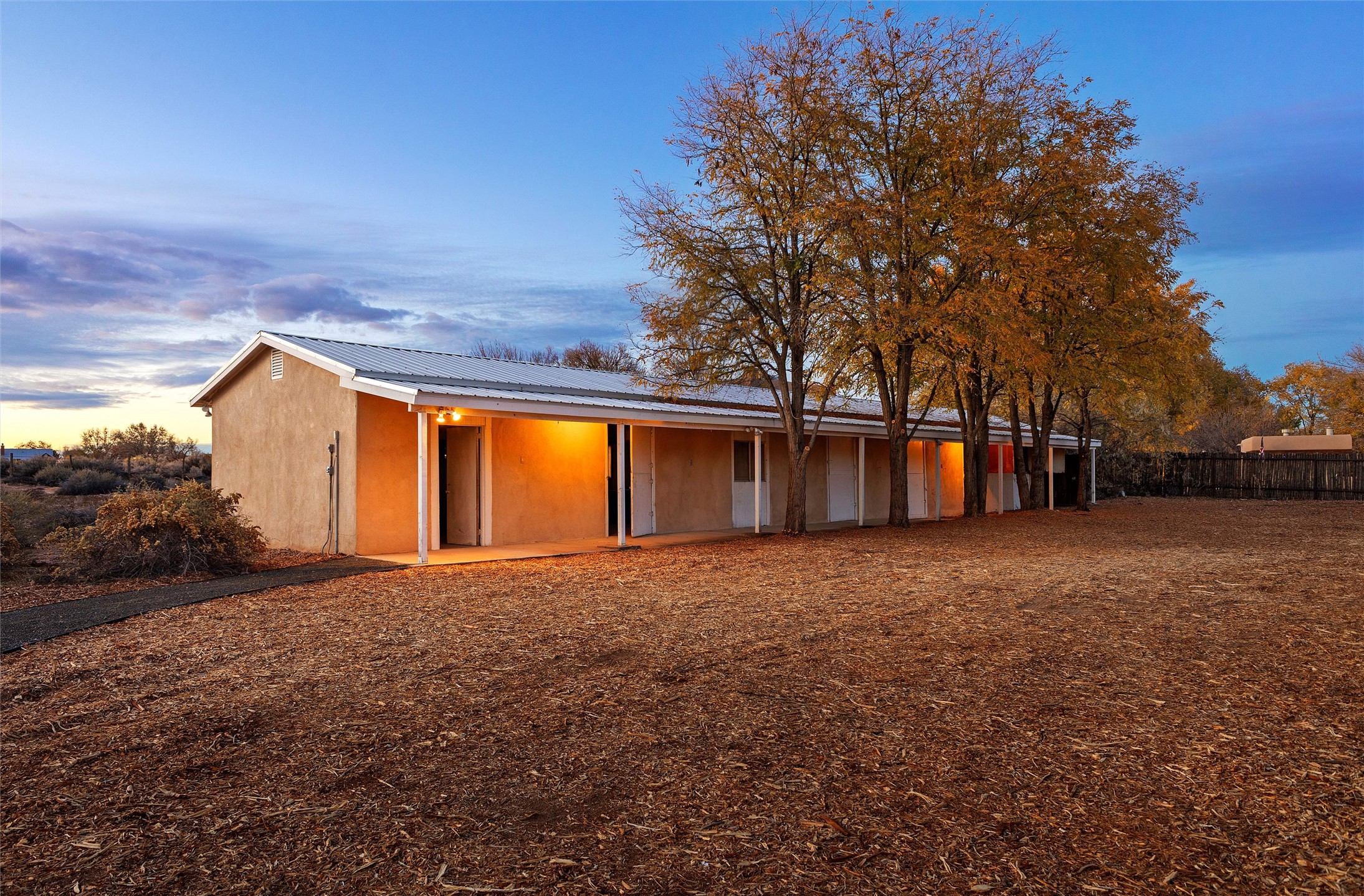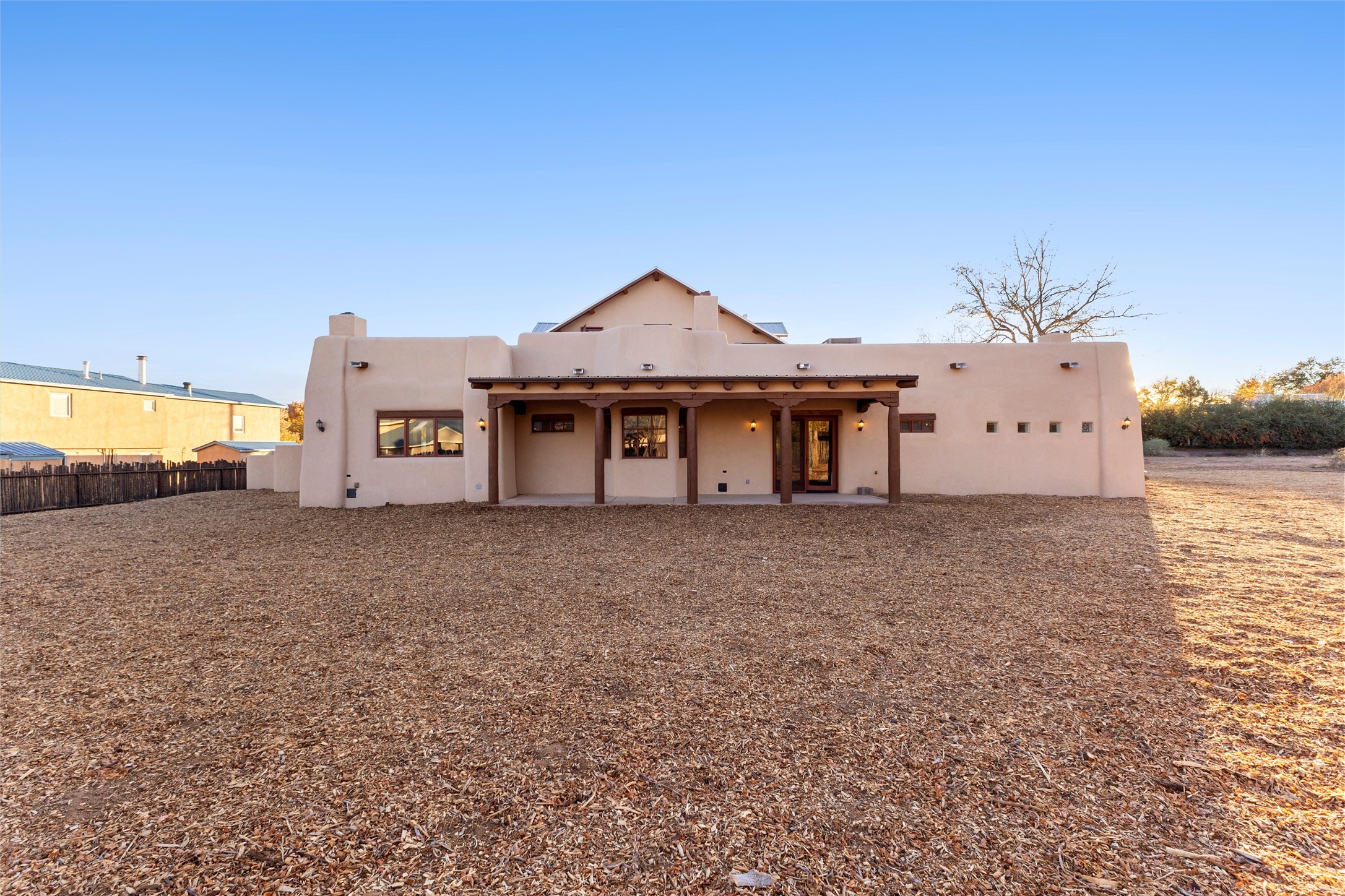 Timeless Corrales, New Mexico living with room to breathe. This expansive 6,491 sq ft, quintessential Santa Fe-style estate marries the soul of an original 150-year-old farmhouse--thick adobe walls, hand-hewn vigas, and soaring ceilings--with a thoughtful 2009 renovation that brings modern comfort and reliability. Tucked on a quiet lane, the home rests on 1.69 serene, level acres that frame lovely Sandia Mountain views and invite an easy rural lifestyle--plenty of usable space for horses, gardens, or future additions. Inside, light-washed halls and artful nichos create gallery-like display walls for sculpture and canvases. Multiple living and gathering areas open effortlessly to two lush, grassy courtyards--perfect for coffee at sunrise, al-fresco dinners at dusk, or relaxed weekend play. An updated kitchen and baths blend warm Southwestern finishes with contemporary function, while long, shaded portals extend everyday living outdoors. Generous bedrooms and flexible rooms accommodate quiet work, fitness, media, or guest needs; host a crowd or savor a private retreat with equal ease. With historic character preserved, modern conveniences in place, and a setting that feels both pastoral and connected, this is a rare convergence of history, scale, privacy, and natural beauty--right in the heart of Corrales.