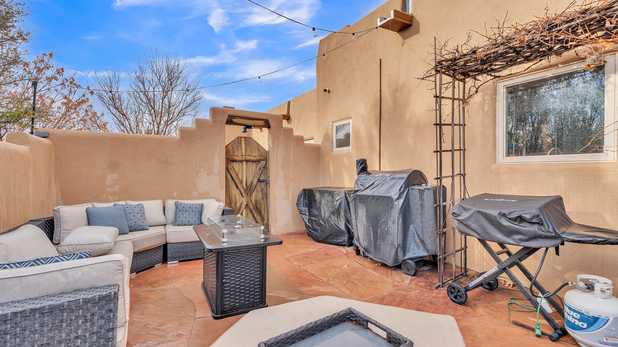 Welcome to this well-maintained 3-bedroom, 2-bathroom home on 2.07 acres. Natural light fills the space, highlighting the Saltillo tile floors. The living room features tall wood-decked ceilings and a gas-log fireplace, and a 50-amp RV service.The remodeled kitchen includes custom cabinets, tile, high-end granite, and newer stainless-steel appliances. The bedrooms are spacious, and the primary bathroom has been updated as well.The coyote-fenced yard offers a Hot Springs Aria Spa, a flagstone courtyard, and a front seating area for sunset views.A bonus 460 sq ft studio includes custom media cabinetry, a 60 sq ft storage closet, a wood-decked ceiling, and Klipsch ceiling speakers. A great mix of comfort, style, and outdoor living--schedule your showing today.