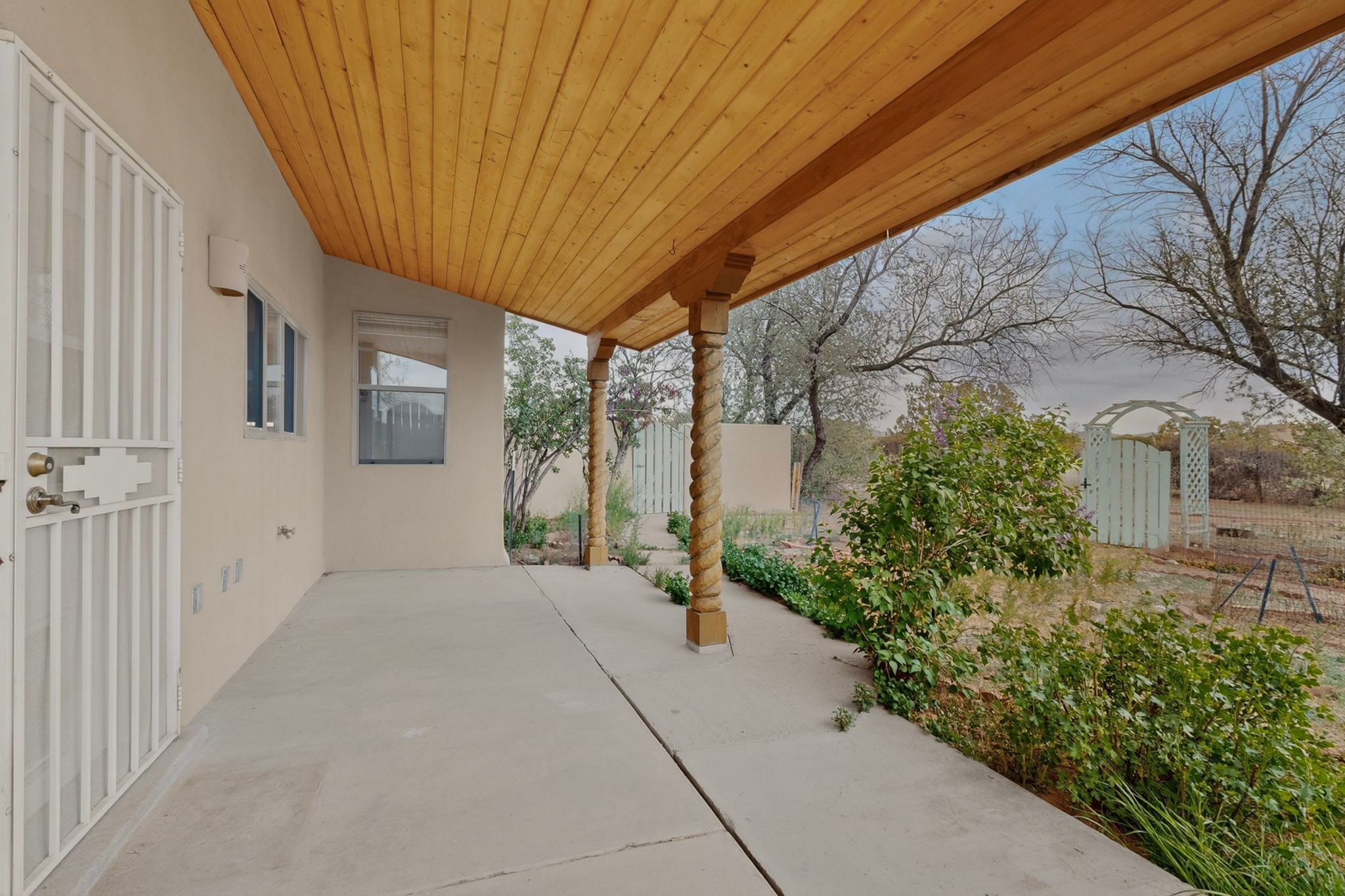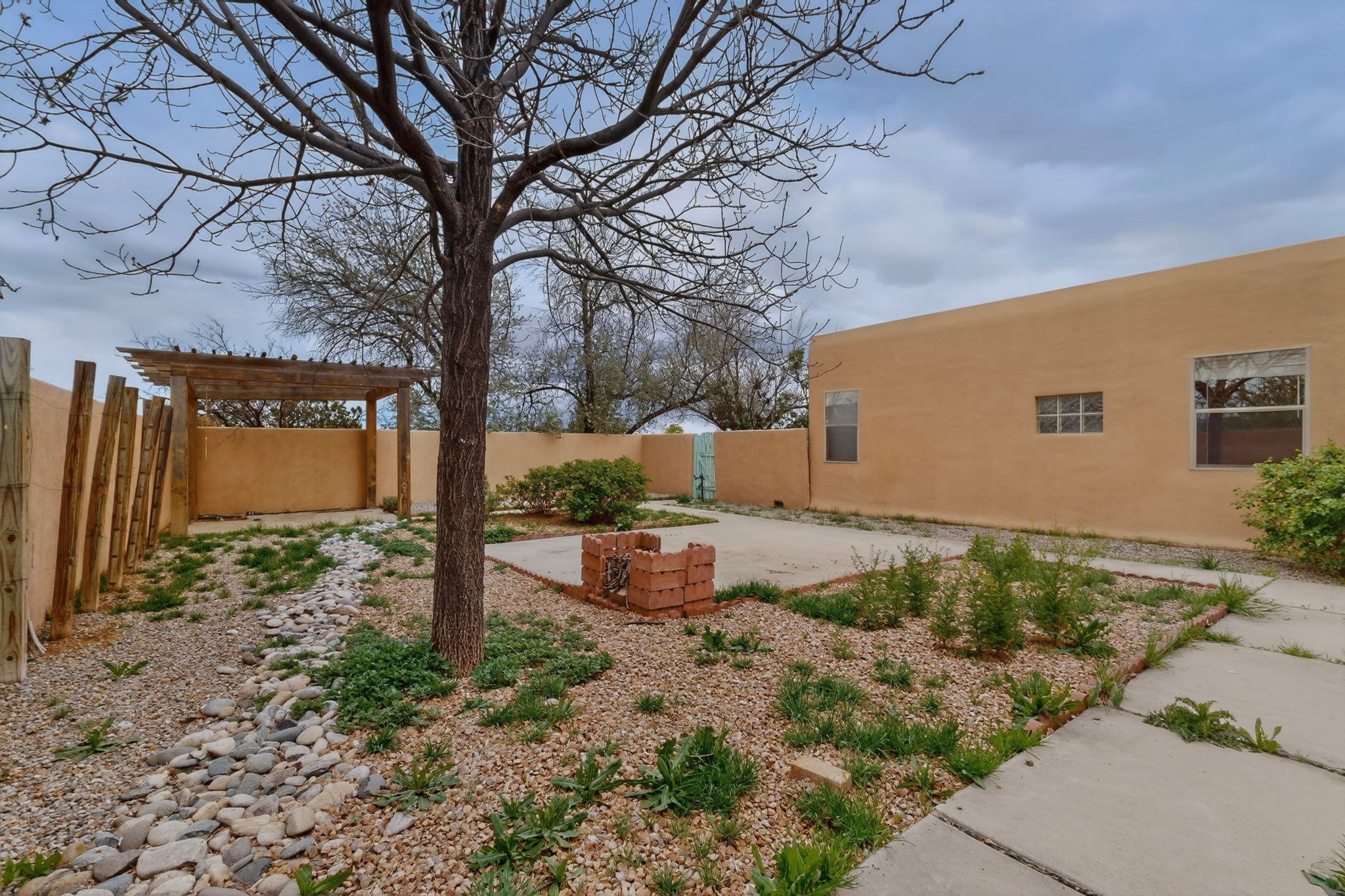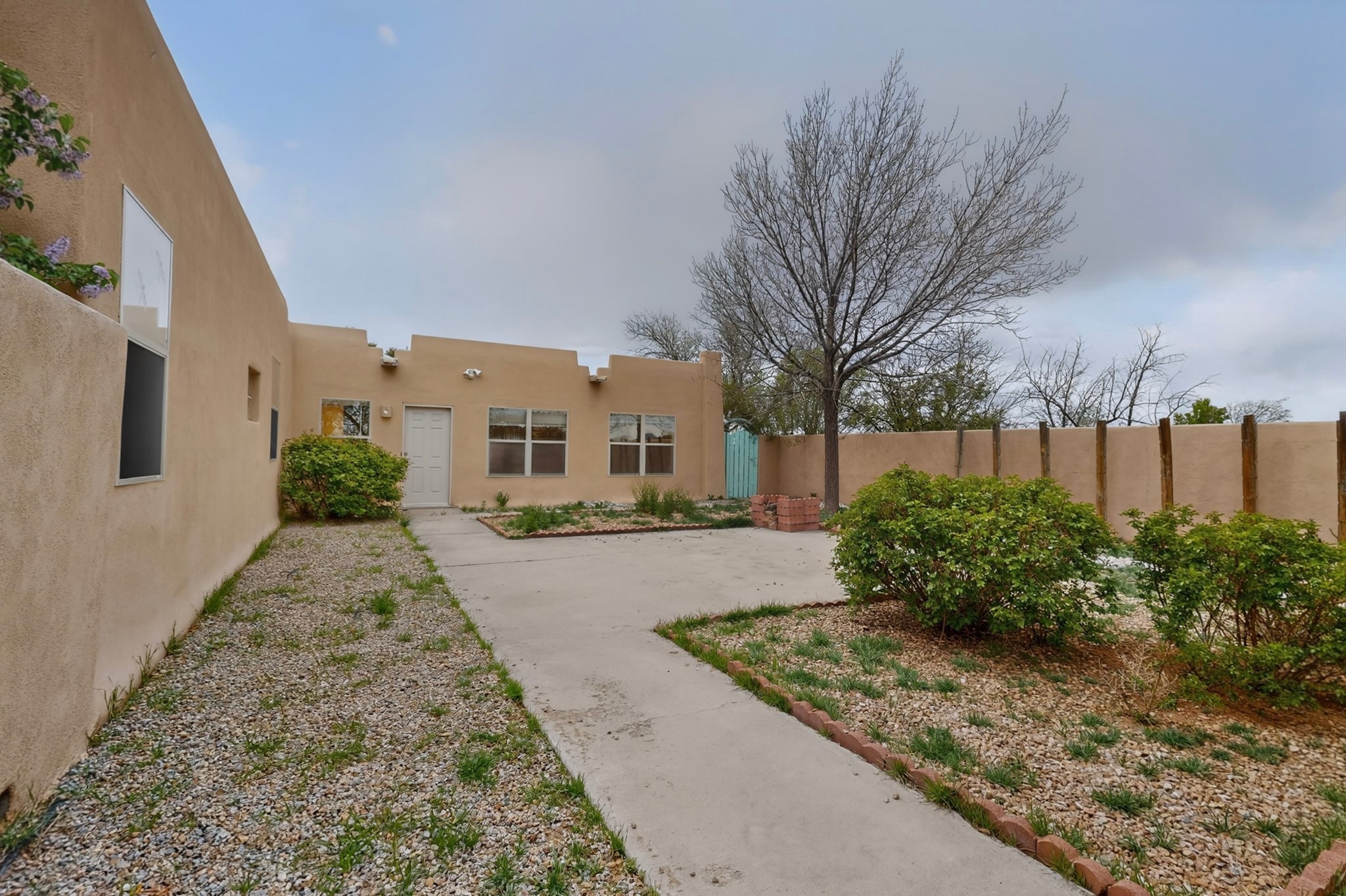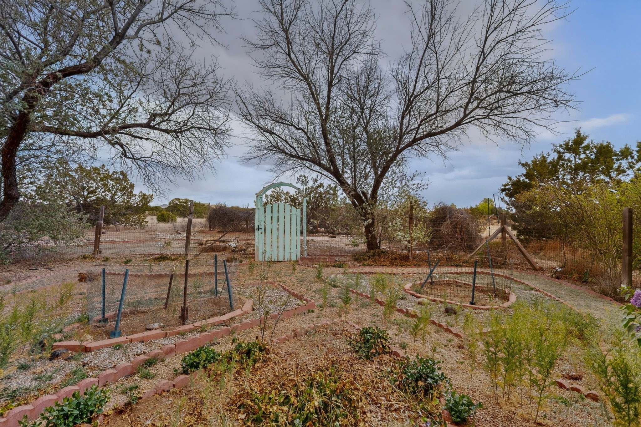 Located on a quiet cul de sac this was custom designed and built for the original owner in 1995. A bright and light contemporary, open plan design, with good separation between main and guest bedrooms, plus there is an office area and what became a working clay art studio. This 2000sf home is sited on 1.99 acres a part of which became a delightful fenced and private small orchard and gardens. There is a large 2 car garage with room for a kiln, work area and storage. The home has suffered neglect and will need some repair and renovation, this is an estate sale and the sellers are not planning to make any repairs. Paved roads make an easy access to Eldorado amenities, local shopping centers and easy reach into Santa Fe.
