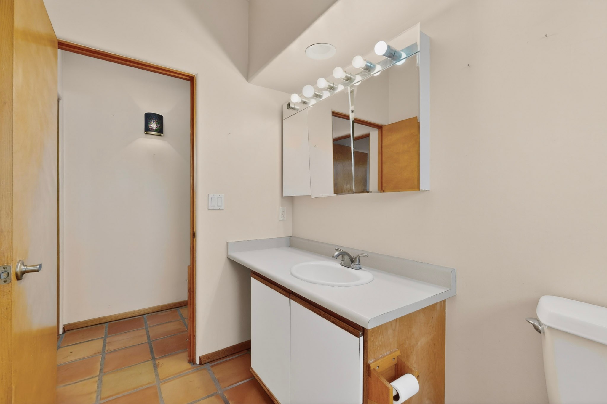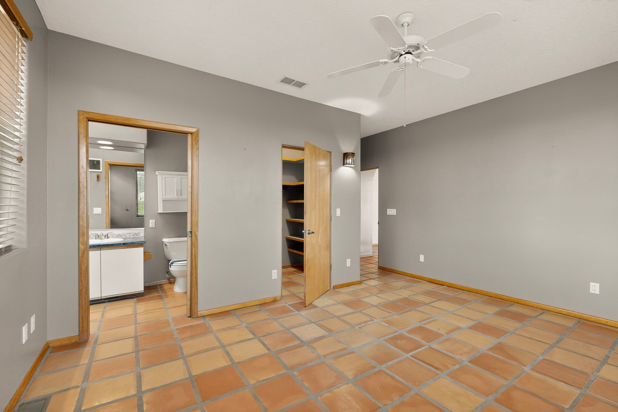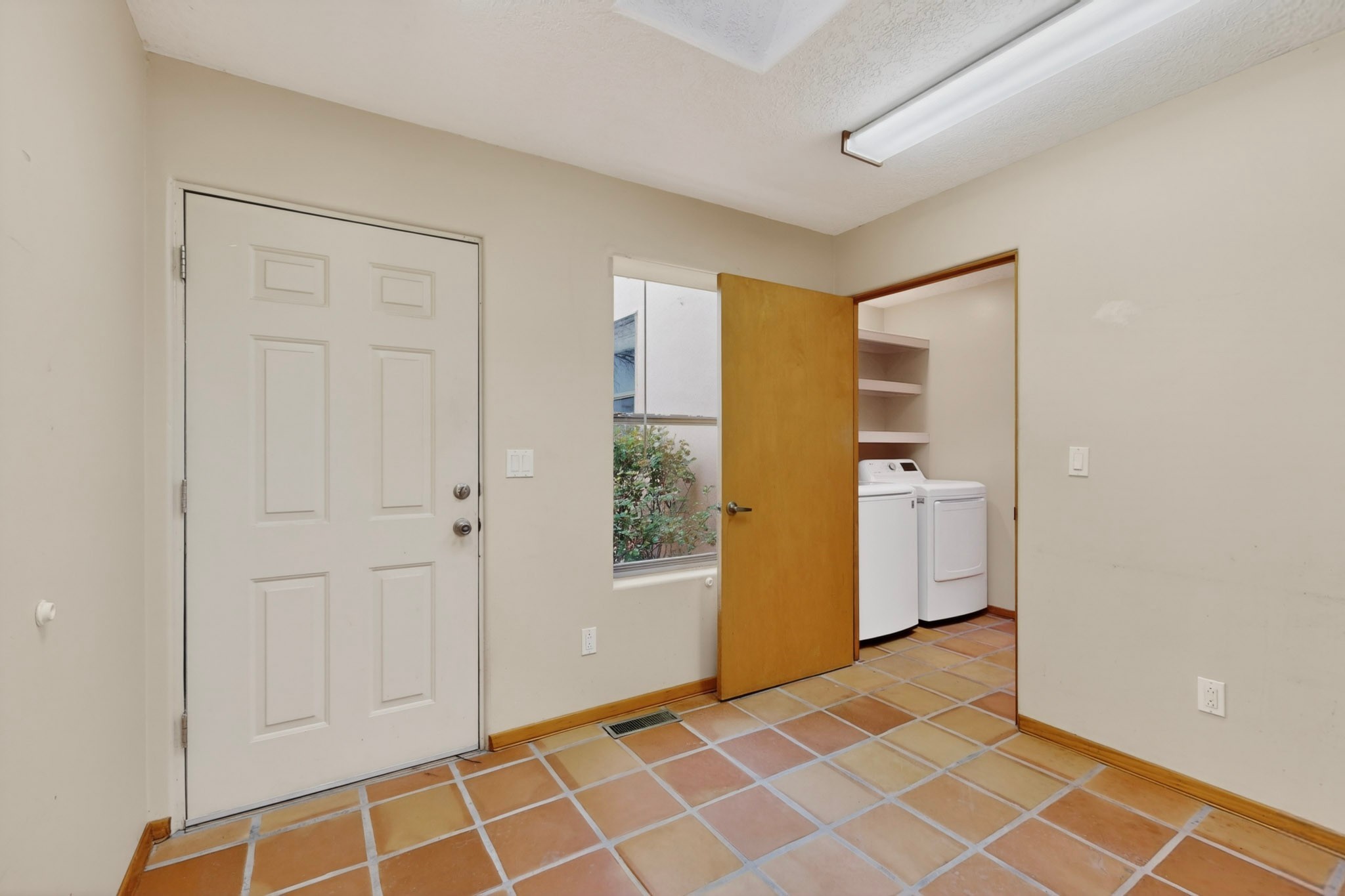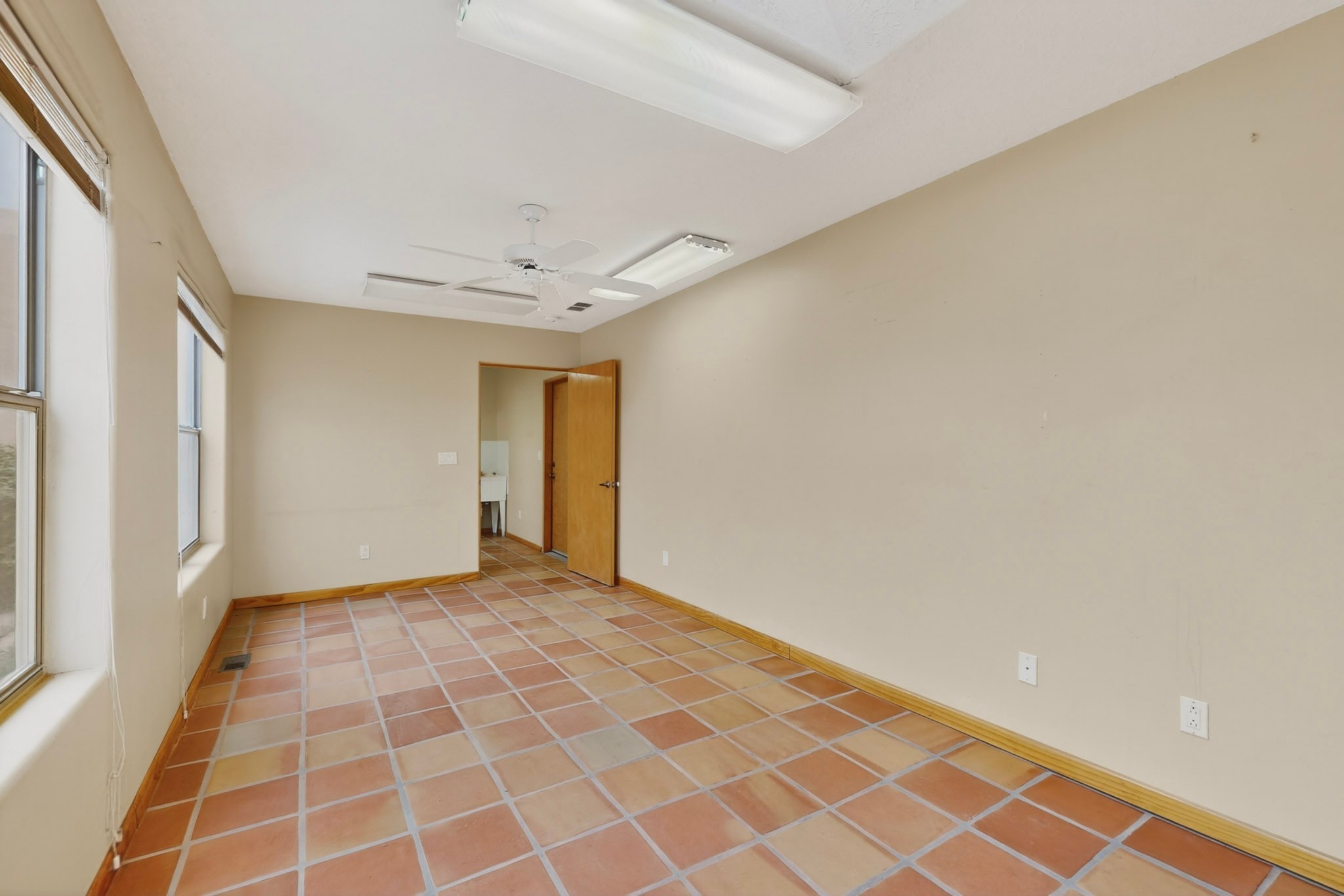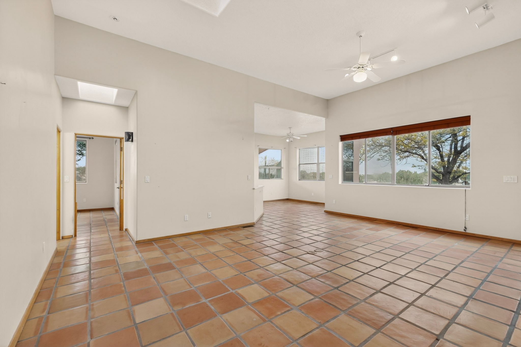 Located on a quiet cul de sac this was custom designed and built for the original owner in 1995. A bright and light contemporary, open plan design, with good separation between main and guest bedrooms, plus there is an office area and what became a working clay art studio. This 2000sf home is sited on 1.99 acres a part of which became a delightful fenced and private small orchard and gardens. There is a large 2 car garage with room for a kiln, work area and storage. The home has suffered neglect and will need some repair and renovation, this is an estate sale and the sellers are not planning to make any repairs. Paved roads make an easy access to Eldorado amenities, local shopping centers and easy reach into Santa Fe.
