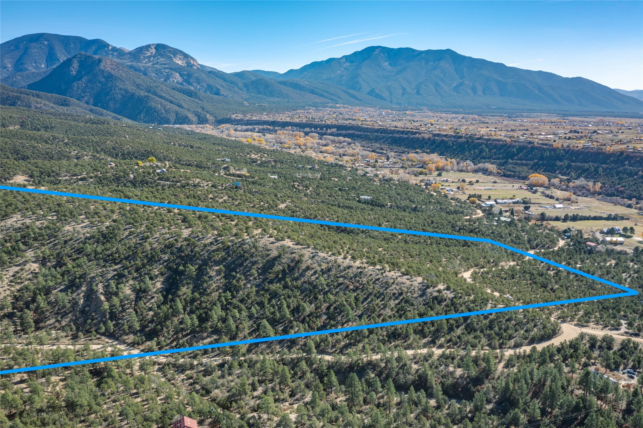 70 Acres | Two 35-acre Parcels | Power Available | 8 Homesite Allowance | A RARE OPPORTUNITY IN VALDEZ-- 70 acrescomposed of two contiguous 35-acre parcels set along the western stretch of Gallina Canyon Road. This expansive offeringfeatures a mix of wooded slopes, natural clearings, and broad ridgelines, providing both dramatic topography and ample, flatter,buildable homesites throughout the property. Access is excellent, with lower Gallina Canyon Road running along the south endand continuing up the western length of the land, even bisecting a substantial portion of the more buildable and subdividableareas. With electric power available along the entire road, future development or residential planning is made far more feasiblethan most large-acreage tracts in the area. The property is deed-restricted for a total of up to eight (8) homesites, offering a uniquebalance between privacy, preservation, and potential. From elevated vantage points to gentle benches tucked among the trees,the terrain offers a wide range of siting possibilities depending on desired views and topography. A substantial landholding in ahighly desirable corridor north of Taos--perfect for creating a private compound, multiple residences, or simply securing a largepiece of Northern New Mexico landscape.