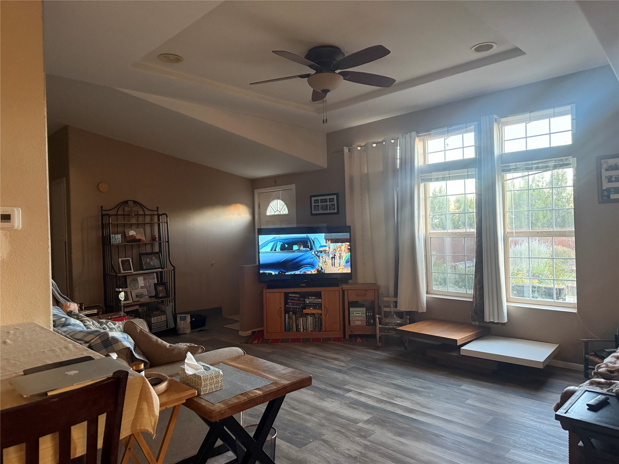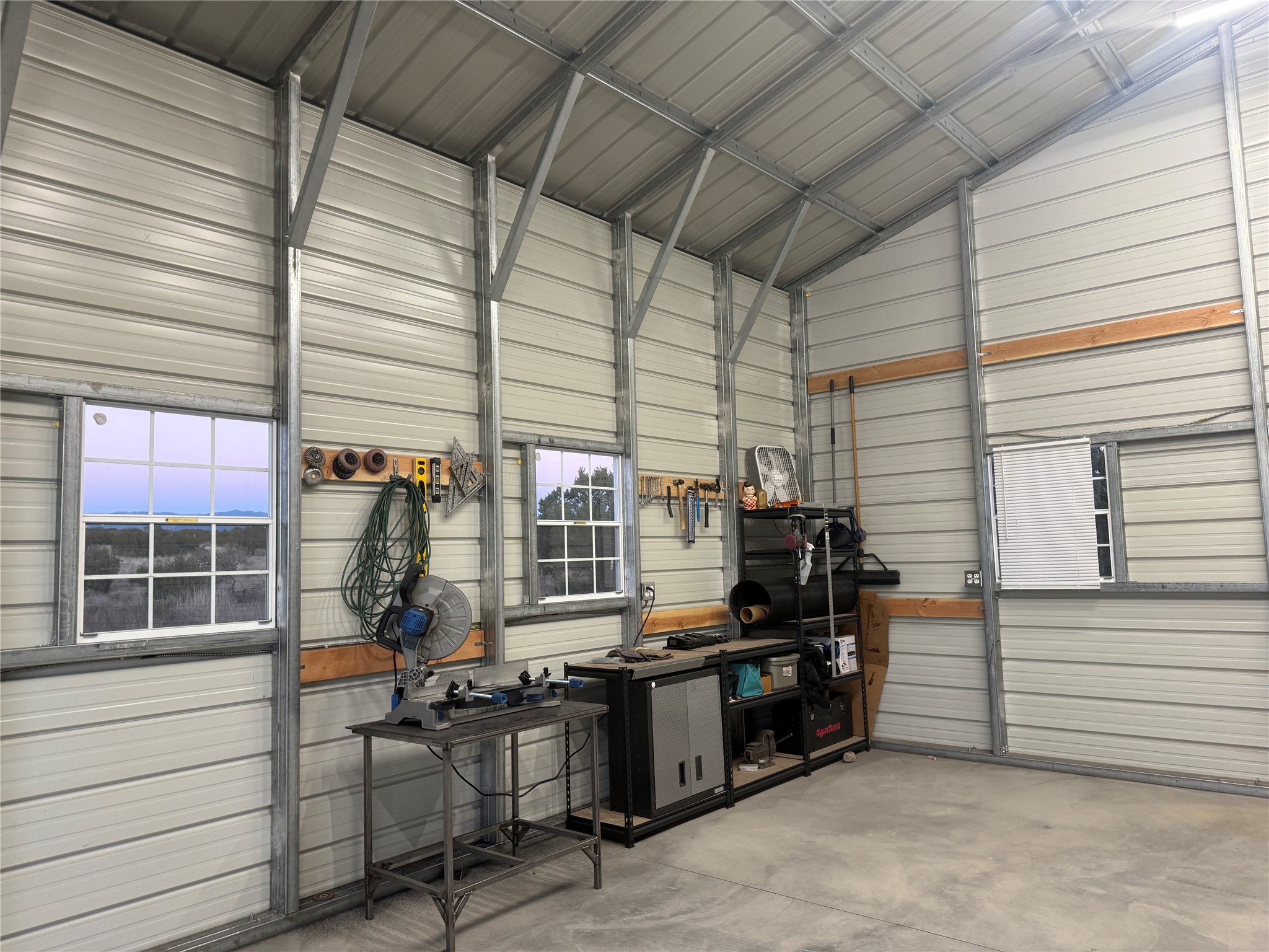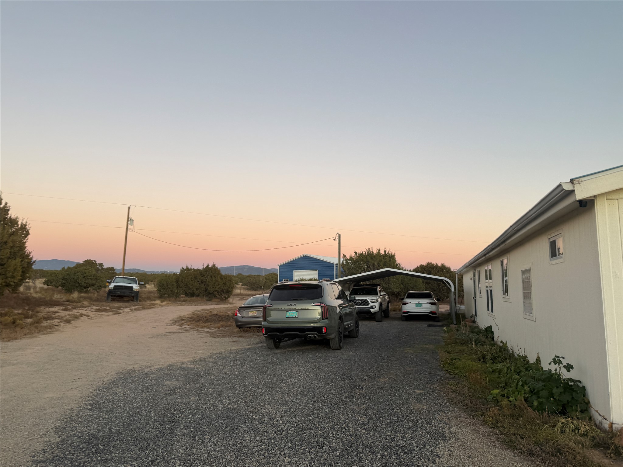 Peaceful private home in a rural setting with easy access to amenities and downtown Santa Fe. Enclosed front yard, metal roofing, refrigerated ac. Large new shop building for all your creative activities and storage. Large lot is fully fenced for your privacy and enjoyment.
