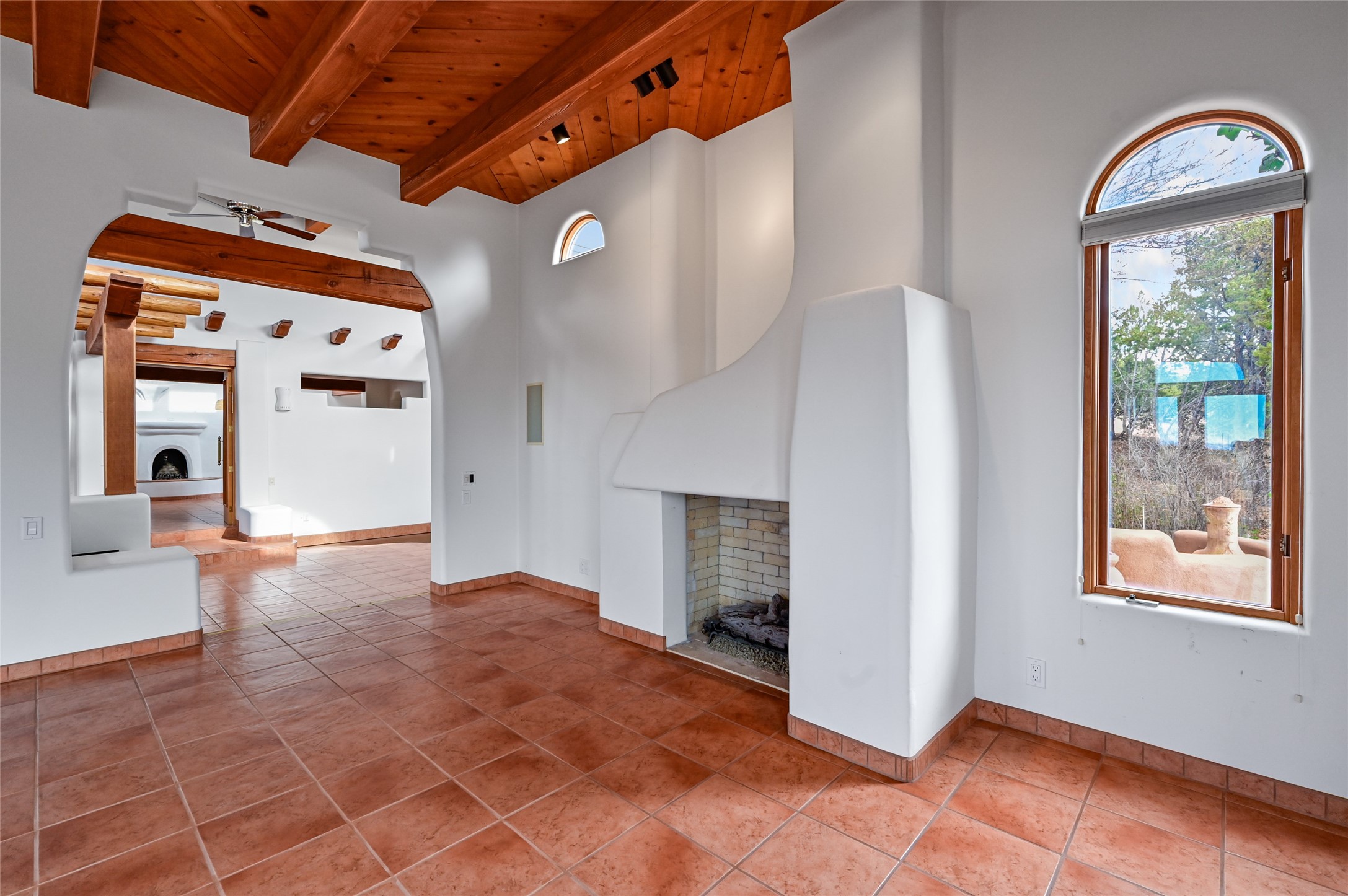 This is a fabulous opportunity to live in a great area and location of the NE side of town that is just minutes to the Plaza and downtown area. Fabulous and long westerly views which includes a beautiful main house, attached guest house, plus attached studio. A large RV Garage plus 3 additional garage bays and lots of additional parking spaces. Private Security entry gate. This home does need some minimal TLC to make it the pristine and cozy home that it is now. The natural light that it has is rarely found in many homes and adds so much to it's charm and character. Easy fit for an on the go professional couple, artist, crafts person, gardener, writer and certainly perfect for entertaining, On City water and has its own Private Well on site.