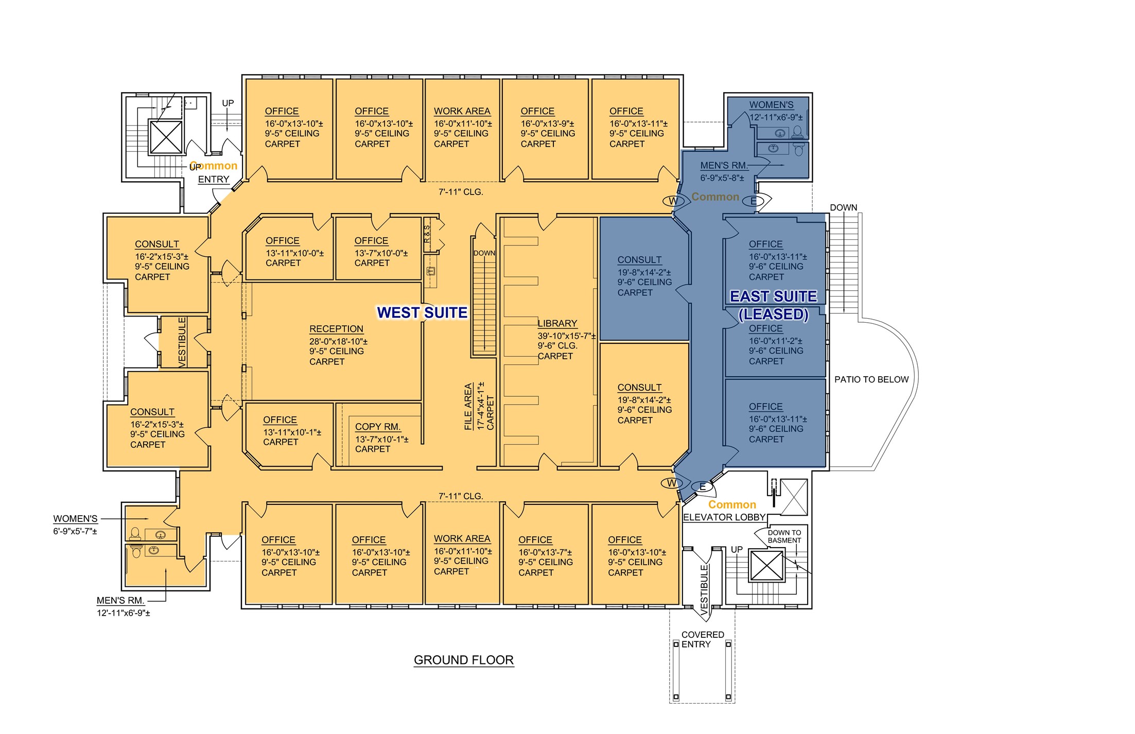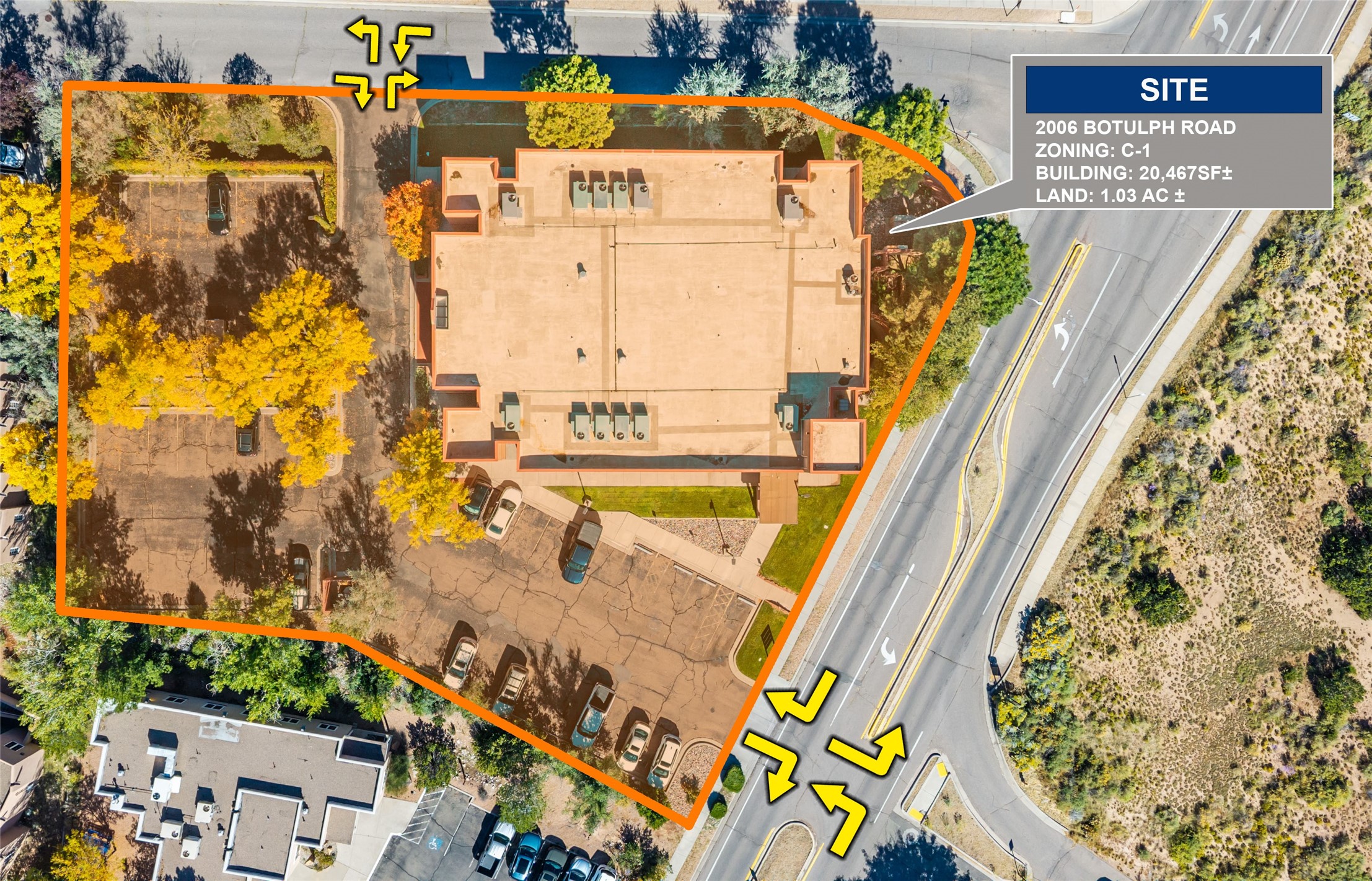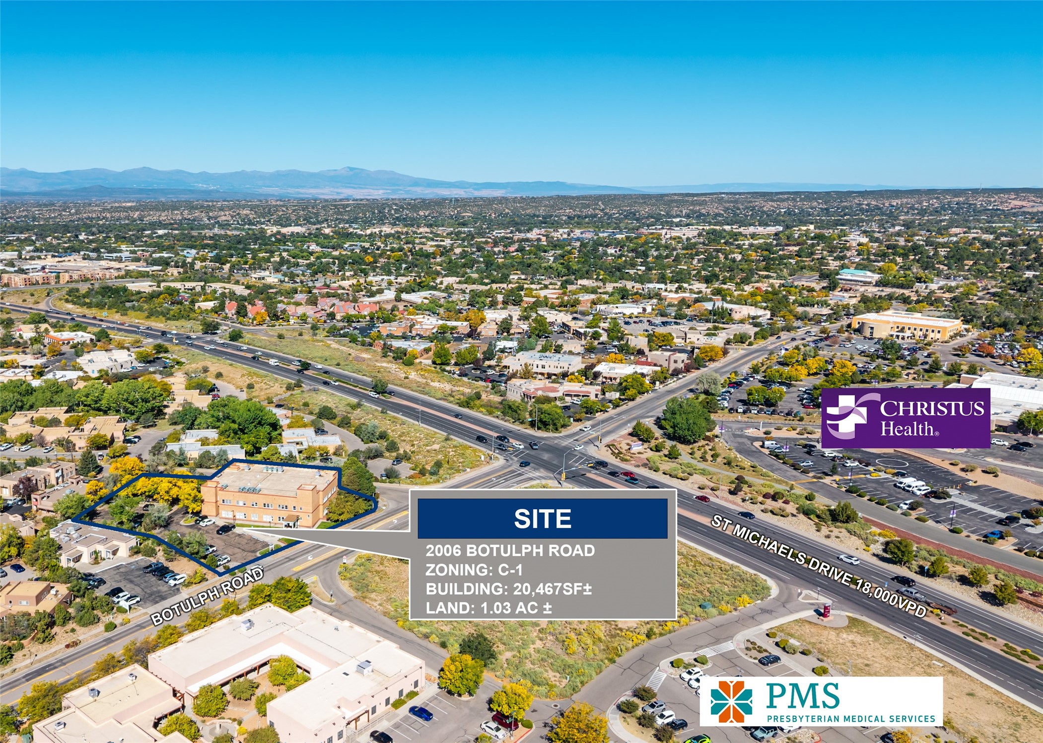 Premium ground floor office space and basement storage/lounge area for lease, offered triple net. Currently occupied by Catron Catron Glassman law offices. The Catron Building at 2006 Botulph Road is a well-located, two-story professional office property in the heart of Santa Fe's medical and business corridor. Offering 20,467 square feet on 0.90 acres, the building provides flexible suite configurations, excellent natural light, ADA-accessible restrooms, and elevator service. The property is ideal for medical, dental, behavioral health, administrative office, or professional services users. Currently, the building offers a balanced mix of leased suites and 11,323 RSF of vacancy, allowing versatile pathways for owner-users, investors, or businesses seeking a full-building HQ near Christus St. Vincent Hospital, St. Michael's Drive, and I-25. A fresh asphalt overlay, restriped 54-space parking lot, and mature landscaping make this an attractive and functional home for a wide range of professional uses. Zoning is C-1, permitting a variety of commercial and office applications. LOCATION: Situated just off St. Michael's Drive, this property offers seamless access to Santa Fe's medical hub, downtown, Hwy 285, and I-25. The immediate area includes medical clinics, law firms, financial services, and professional offices. The location serves both local residents and the region's robust healthcare community.