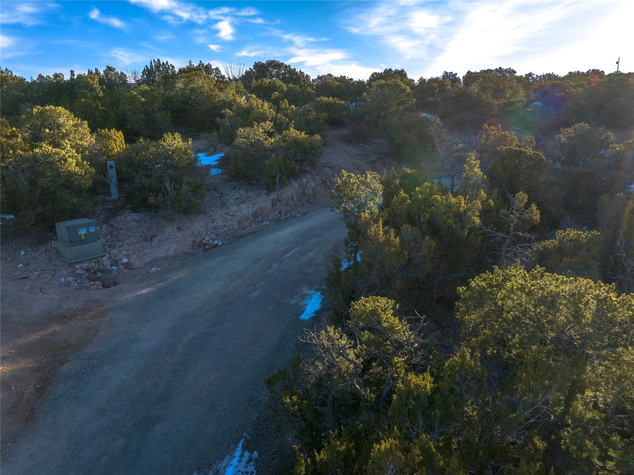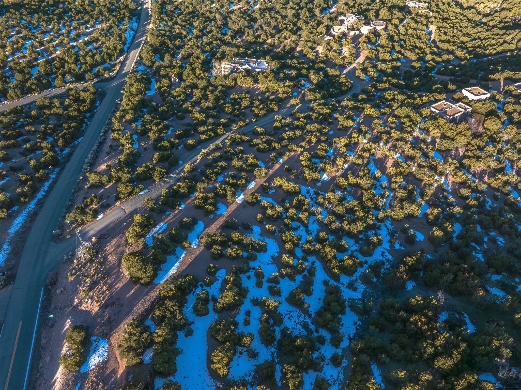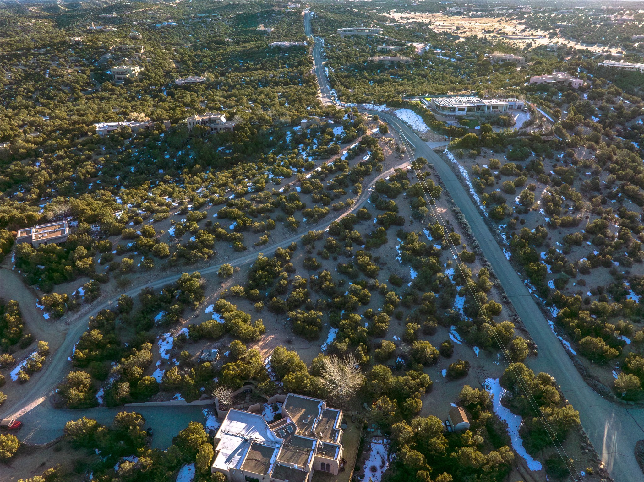 Luxury, Views & Privacy in the Coveted Tano Road Area - Set in one of Santa Fe's most desirable Northside locations, this exceptional 2.5-acre treed parcel offers a rare opportunity to create a refined rural retreat while remaining just minutes from the city's celebrated cuisine, art, and cultural life.Oriented west off Tano Road and shaped by a natural ridge, the property enjoys breathtaking panoramic views stretching for miles - encompassing the Sangre de Cristo, Sandia, Jemez, and even Colorado mountain ranges. Expansive skies, excellent solar exposure, and remarkable sunset views make this an extraordinary setting for a custom home designed to capture both light and landscape.A lightly traveled road follows the ridge line, thoughtfully dividing the land into two approximately 1.25-acre segments. This configuration provides an ideal primary building site on one side of the road, while ownership of the adjoining acreage across the road offers the added benefit of preserving open space, privacy, and long-term view corridors - a meaningful luxury in this sought-after area.Not part of a subdivision and free from HOA restrictions, the property allows architectural freedom and a true sense of independence. While a shared well was reflected in a preliminary title search, the linked documents did not match, therefore we are working to firmly establish the agreement's existence. Legal access is established, and the setting reflects the essence of classic Santa Fe estate living - privacy, natural beauty, and wide-open land, without sacrificing convenience.Here, serenity and space coexist effortlessly with proximity to Santa Fe's world-class dining, galleries, music, and events. This is a rare offering for those seeking views, acreage, and elevated rural living, all within easy reach of the heart of Santa Fe.