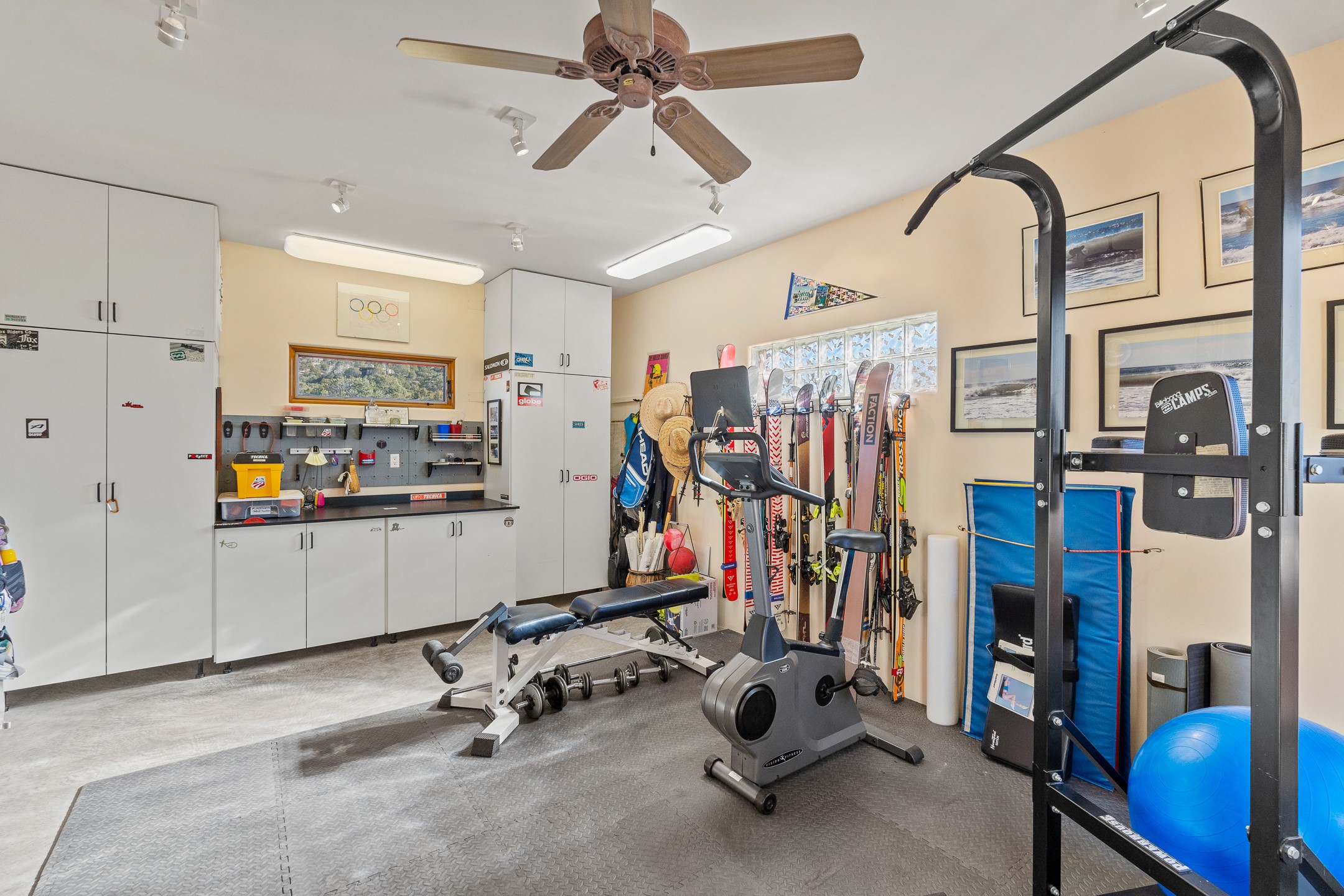 Move-in-ready, single-level home offering 3 bedrooms, 2 full bathrooms, and 1 half bathroom, plus an attached studio, located in the desirable Dos Griegos subdivision, approximately 20 minutes from Santa Fe. The main residence spans 2,995 square feet and features a thoughtfully designed floor plan with the primary suite and guest bedrooms situated in separate wings for optimal privacy. The living area showcases tall ceilings with vigas and tongue-and-groove planks, complemented by large windows that fill the home with abundant natural light. A formal dining room and a sunny breakfast nook provide flexible dining and entertaining options. The primary bedroom includes an extended office or flex space, while a full guest bath is conveniently located between the guest bedrooms, and a half bath sits just off the breakfast nook. Outdoor living is a highlight, with a fully enclosed, landscaped backyard on a drip irrigation system, a rear portal for enjoying the views, and a trellis off the primary bedroom. Two tranquil water features enhance the backyard setting, and an outdoor jacuzzi is ideally positioned between the attached studio and flex space. Additional features include three wood-burning kiva fireplaces, a side flagstone trellis, mature trees, and a welcoming front courtyard. Quality windows, new appliances, and exceptional craftsmanship throughout complete this offering. The home was awarded Best Craftsmanship in the Parade of Homes, reflecting its timeless design and attention to detail.