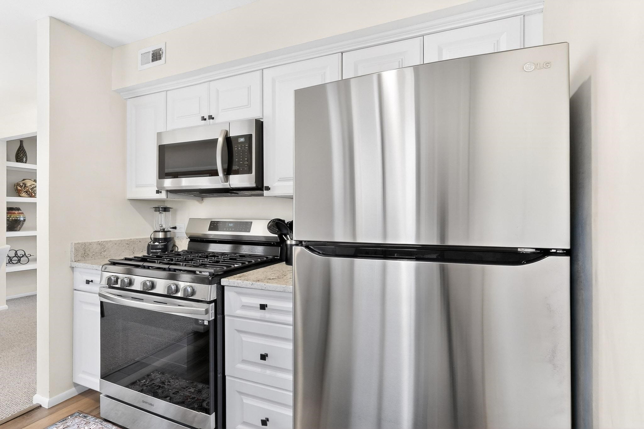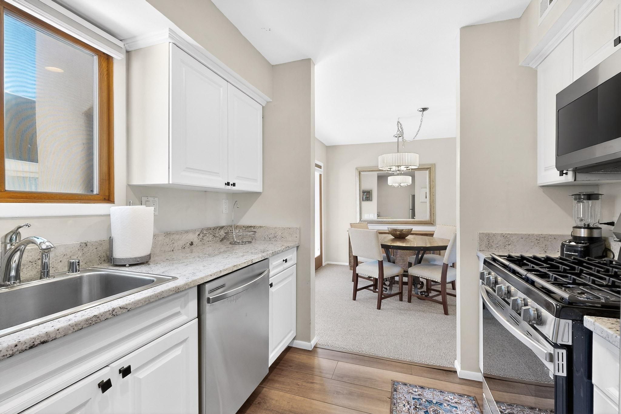 Just in time for the holidays in Santa Fe! Ideally located just six blocks from the Santa Fe Plaza, this spacious one-bedroom, one-bath condominium offers rare walkability paired with privacy and quiet. Situated on the second floor at the back of the complex, this corner unit enjoys a peaceful setting along with a covered, dedicated parking space. Thoughtfully upgraded throughout, the home features granite countertops, stainless steel appliances, new wood flooring in the kitchen and bath, diamond plaster walls, and updated lighting. Built-in bookcases flank the cozy gas fireplace, adding both charm and function. French doors open to a tranquil patio with two private storage closets, creating an inviting indoor-outdoor flow. Additional highlights include central heating and air conditioning, a second balcony, and an HOA that covers exterior maintenance, landscaping, and gated security, making this an easy full-time residence or a perfect Santa Fe lock-and-leave. A furniture package is available with a satisfactory offer, allowing for a seamless move-in experience.