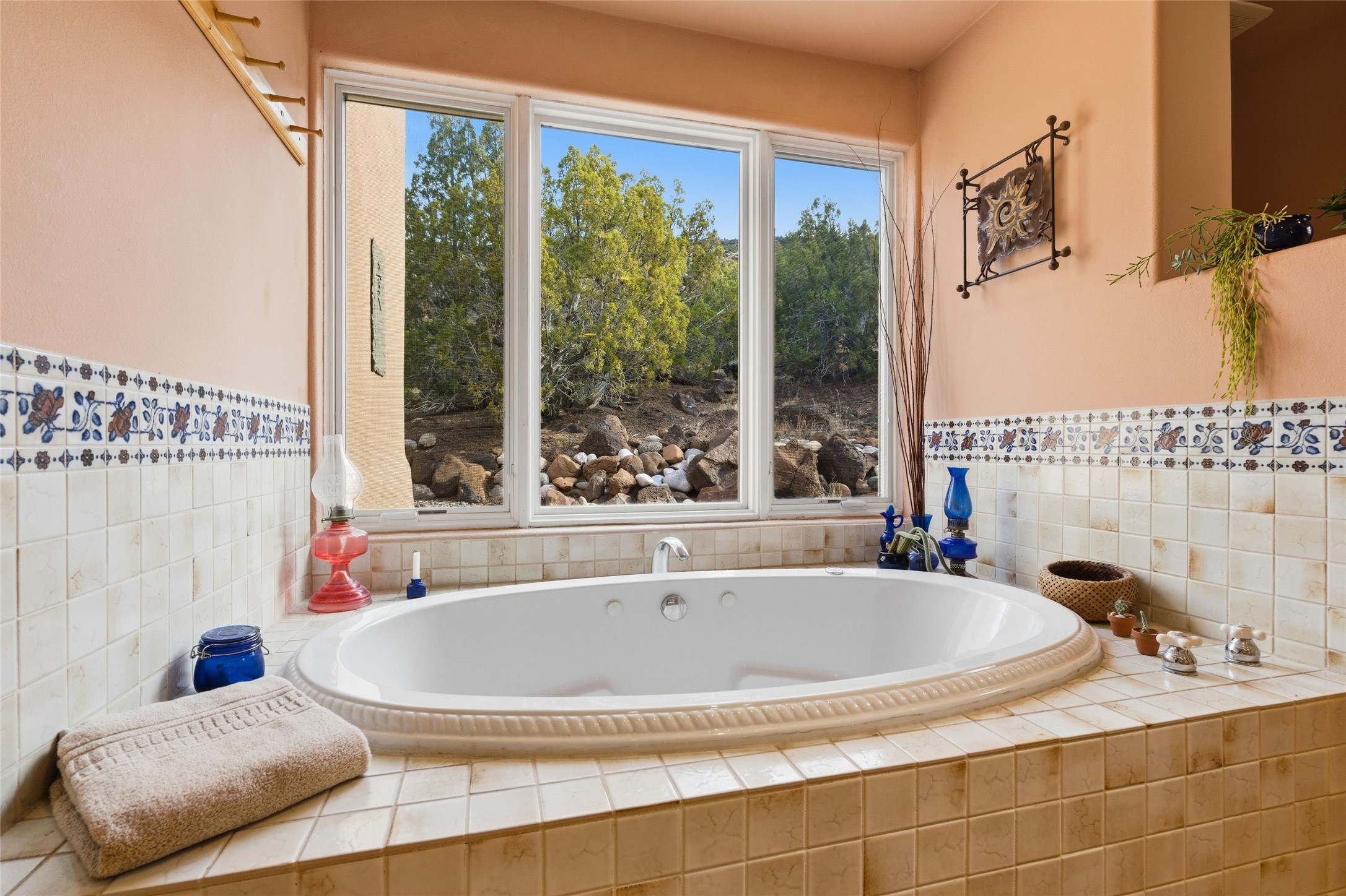 Tucked within a gated community and sited on approximately 13 acres, this Anasazi casita, one of 10 free-standing condo's offers an inviting single-level one-bedroom, one-bath residence offers a peaceful retreat framed by dramatic views of the White Cliffs and the surrounding natural landscape. Built in 1997, the home provides approximately 825 square feet of thoughtfully designed living space, featuring radiant in-floor heating and a charming kiva-style wood-burning fireplace that creates a warm and comfortable atmosphere year-round. Classic Santa Fe style elements are showcased throughout, including Saltillo tile floors, hand-carved beams, and custom doors that add character and timeless appeal. The layout flows easily for everyday living or weekend escapes, emphasizing comfort and a strong connection to the outdoors.The home is surrounded by outdoor patios, offering ideal spaces for relaxing, restaurant, or simply taking in the expansive scenery and changing light throughout the day. Water is supplied through a shared well system serving the community.Ideally located with convenient access to both Los Alamos and Santa Fe, this property also serves as a perfect launching point for scenic day trips to Taos and the Ojo Caliente Hot Springs. Whether used as a full-time residence, seasonal getaway, or investment opportunity, this home offers a unique blend of privacy, ease, and Northern New Mexico lifestyle.
