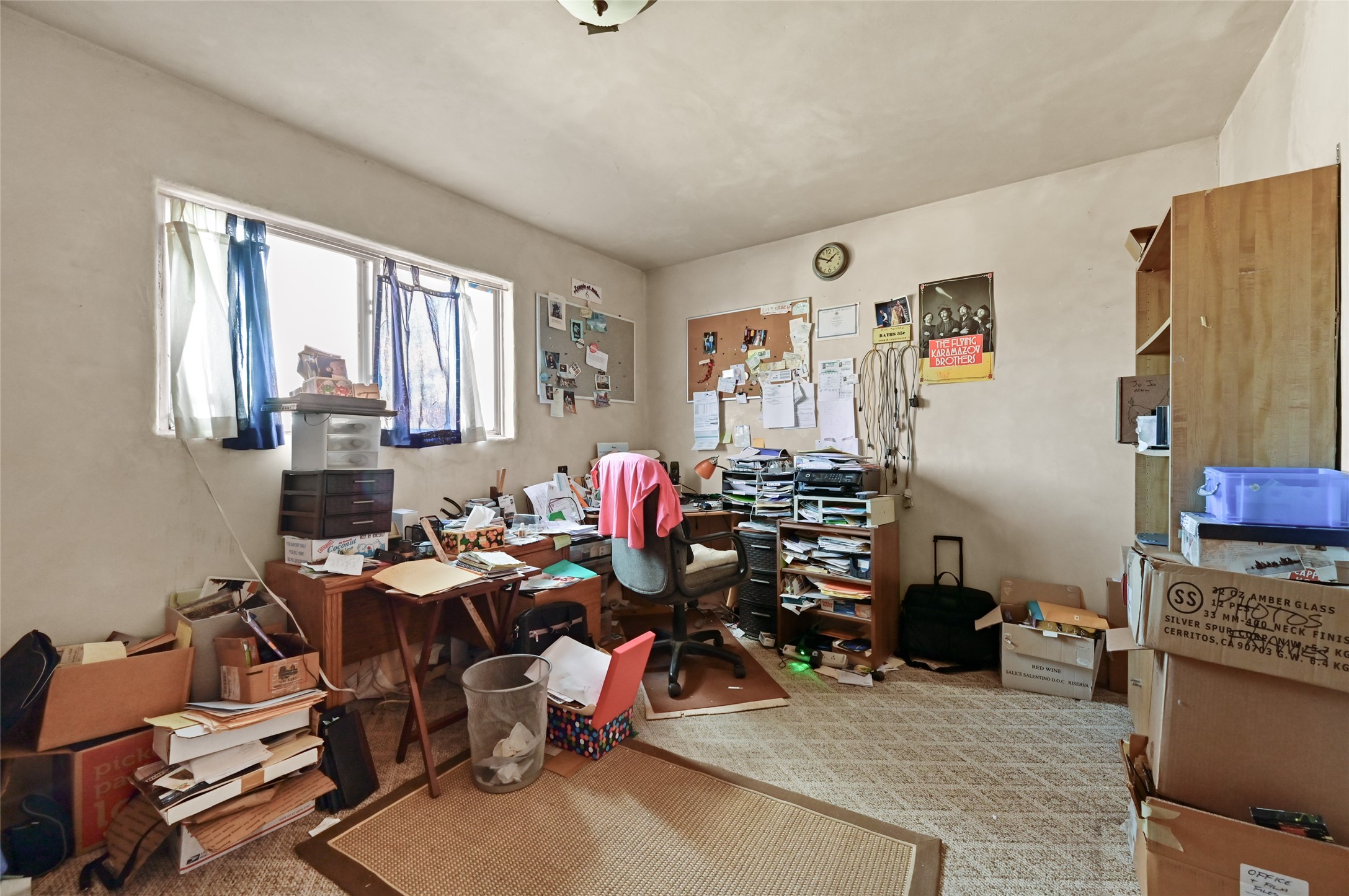 This warm and comfy home features a contemporary open floor plan, a separate den with a Kiva fireplace, some plaster walls, updated lighting & plumbing fixtures, 16-inch Italian tile, Berber carpet, insulated windows & a separate laundry room. Walled front yard and a large back yard landscaped with mature trees & flowers providing shade & color through the summer months, a great place to entertain or bird watch.