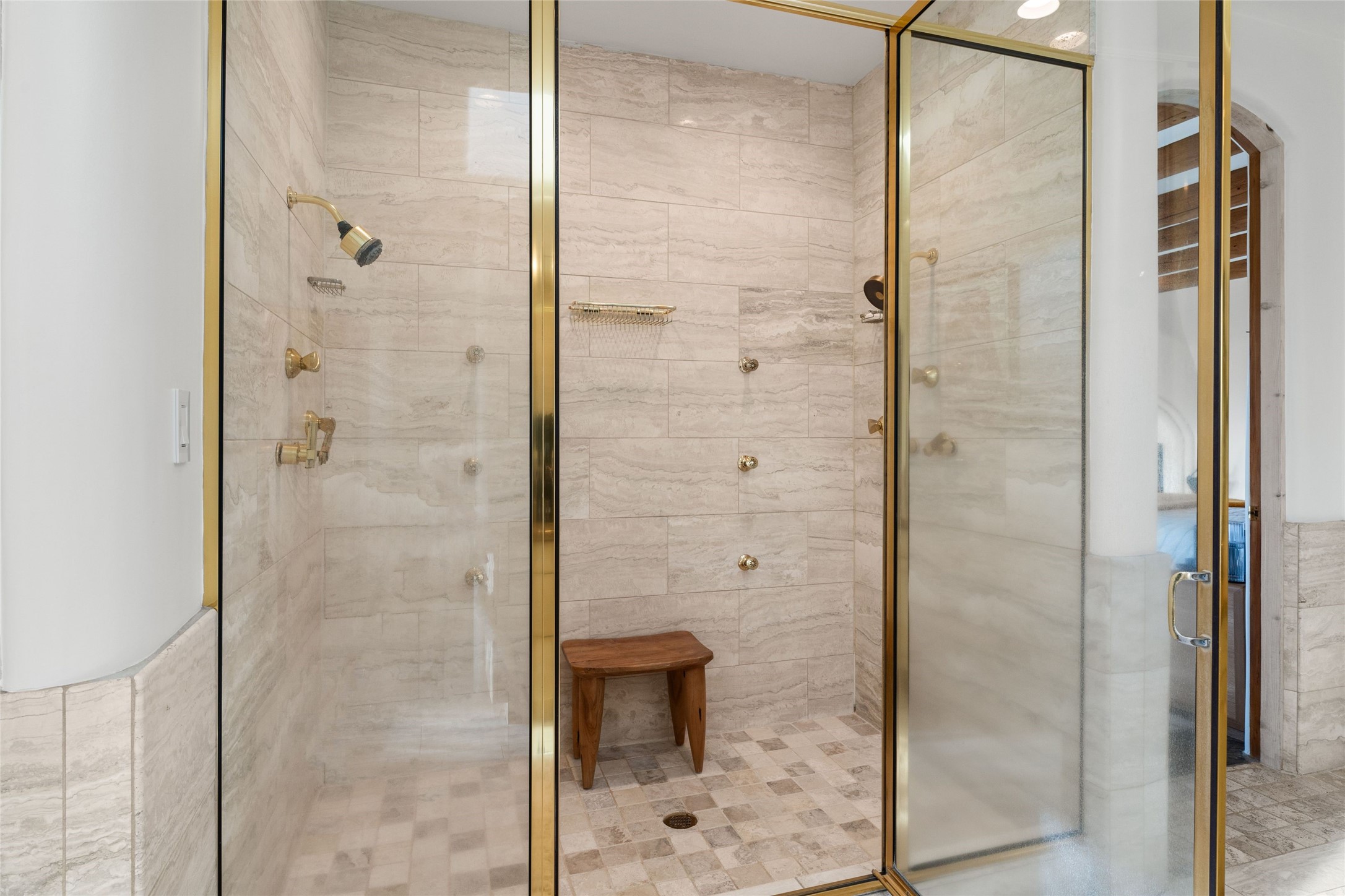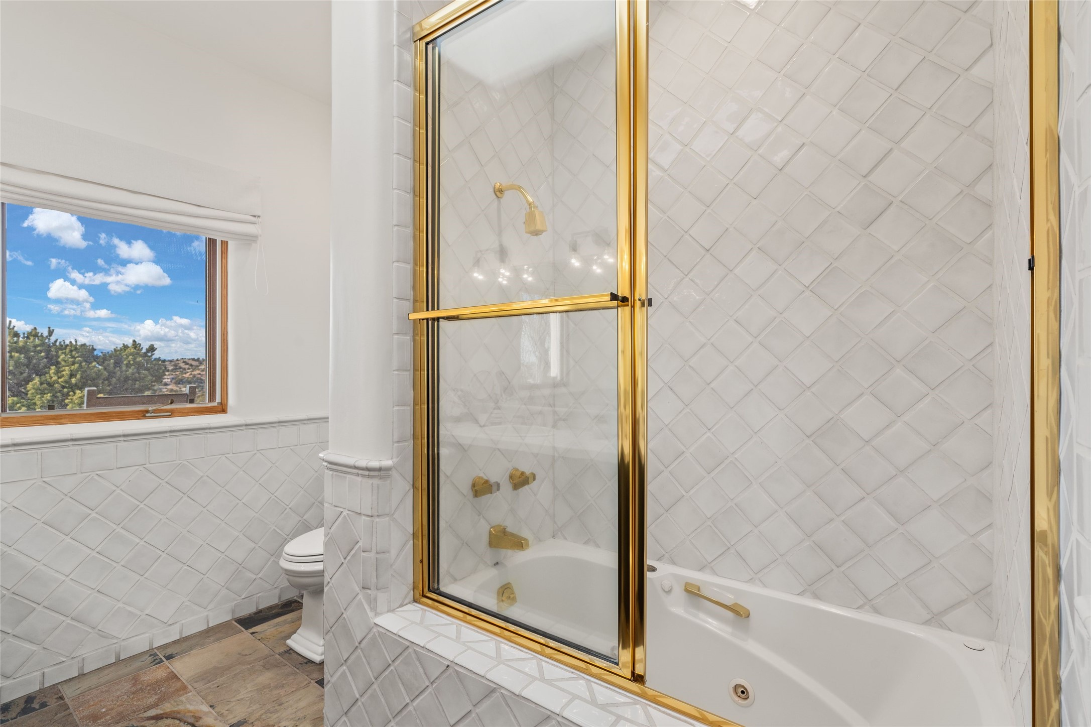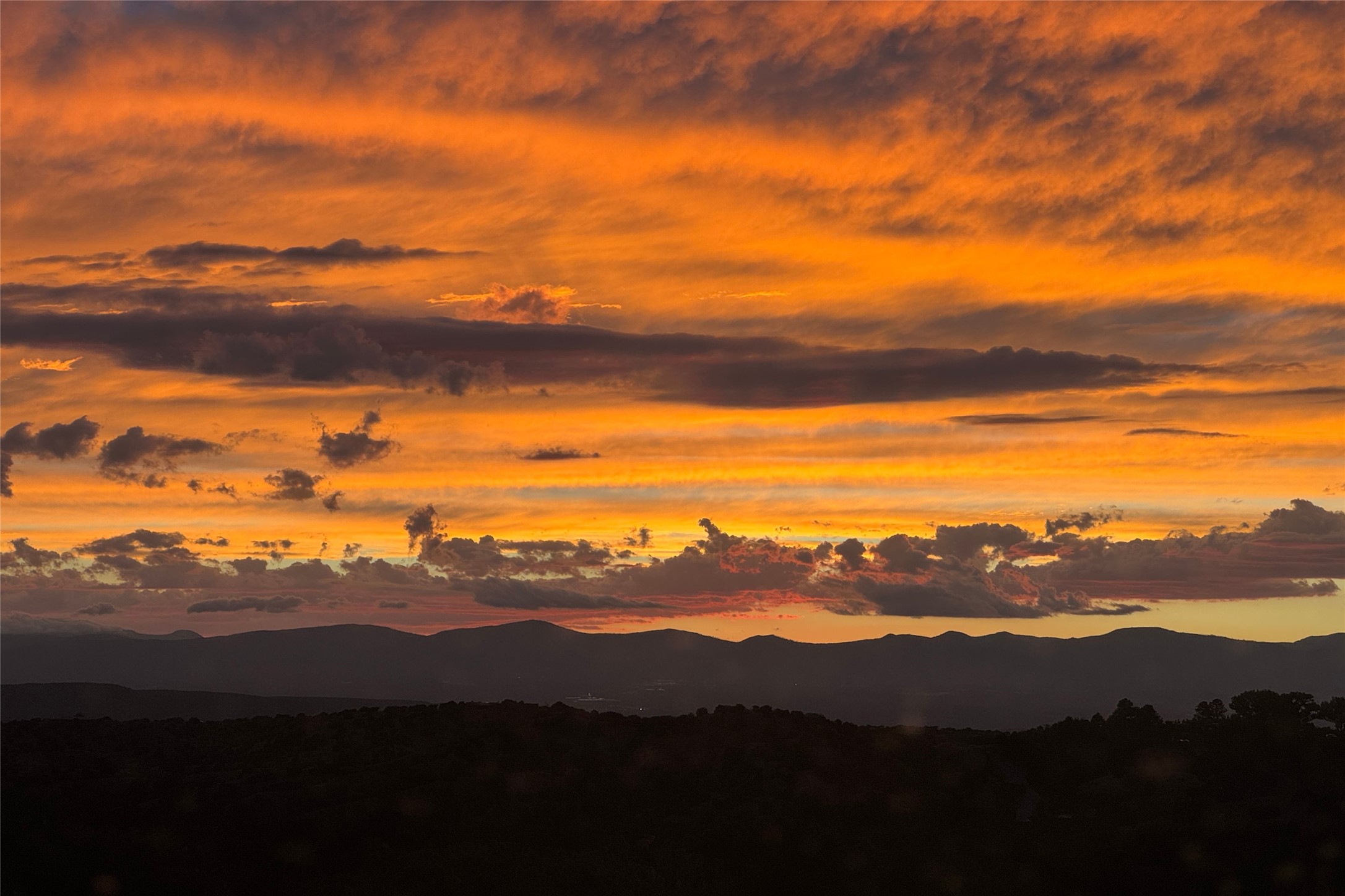 Remarkable 3-bedroom, 4.5-bath luxury retreat set on nearly 12 acres in the desirable La Tierra community. This stunning property offers breathtaking views and a unique 6-hole putting green, making it a golfer's paradise right in your backyard. Diamond plaster walls, vigas and beams, and expansive brick-lined portals add character. Enter through carved wood doors and be greeted by a grand foyer that seamlessly flows into an open-concept living space. Living and dining areas are adorned with soaring 12-ft. ceilings, large-scale windows, and French doors that invite natural light and the beauty of the outdoors into your home. Gourmet kitchen features high-end appliances, a center island with 6-burner cooktop, and a stylish bar area complete with a wine cooler. Retreat to the primary suite, which includes sitting area, fireplace, and a luxurious bath with divided 2 vanities and sinks, 2 water closets, and 2 walk-in closets for ample storage. A versatile studio/media room offers flex space as a 4th bedroom complete with a bathroom with shower. 3-car garage and an extra 10,000-gallon water storage tank. Recent upgrades such as solar photovoltaic electric, 2 new water heaters, window screens, motorized awnings in the living and dining rooms, and all new skylights enhance the home's efficiency. Enjoy awe-inspiring sunset views that will take your breath away, all while being conveniently located just 10-15 minutes from the Santa Fe Plaza, Ten Thousand Waves, and the Santa Fe Opera.