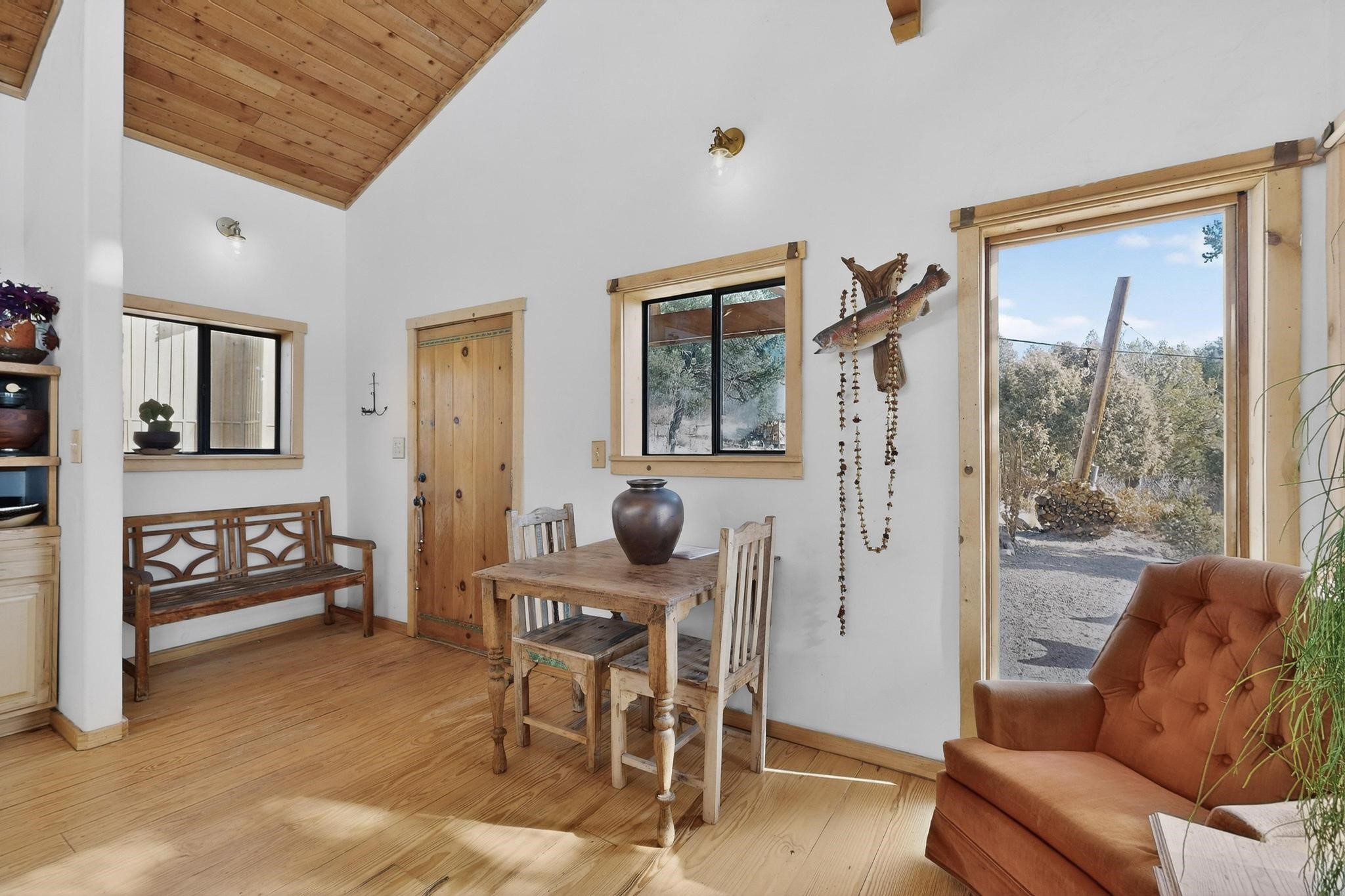 Welcome to a truly exceptional Rare Cow Creek listing-- fully renovated and designed as the ultimate mountain basecamp for outdoor enthusiasts, investors, or those seeking a peaceful full-time escape. Set on 5 private acres and surrounded by vast National Forest lands, this one-of-a-kind property offers unmatched access to adventure, expansive Western views, and unforgettable night skies with the Milky Way visible most evenings. The property includes a beautifully renovated main home, guest house, shop, dedicated artist studio, complete with a charming wood-fired hot tub and a vintage 1967 Airstream. Every structure has been thoughtfully upgraded with high-end appliances, custom fixtures and refined finishes that blend comfort with mountain living. Located just east of Pecos, NM and only 40 minutes from Santa Fe, this property sits in the heart of one of Northern New Mexico's most beloved outdoor recreation areas. Cow Creek is just 2 miles away, the Pecos River is 3 miles from the property, and easy National Forest access walking distance from your land. Enjoy world-class fly fishing, endless hiking and horseback riding, highly sought-after hunting territory, and renowned mountain biking at Glorieta Mountain Bike Park-- all minutes from your door. Pecos Village and Pecos National Historic Park are nearby for dining, culture, and community. The guest house has already proven strong rental appeal, earning 50 five-star Airbnb reviews with excellent part-time income. With the additional home and Airstream, there is significant potential for expanded short-term rental or multi-family use, making this an outstanding investment. Recent comprehensive renovations include a new roof and siding, new driveway and outdoor living spaces, new decks, custom bathrooms and showers, venetian plaster and stucco interior finishes, new flooring, high-end wood and propane stoves, a new electric panel and transformer providing 200 amps of power, a new basement art studio, and a new shop. Every detail reflects craftsmanship, quality and a true sense of place. This is a one of a kind, destination property.