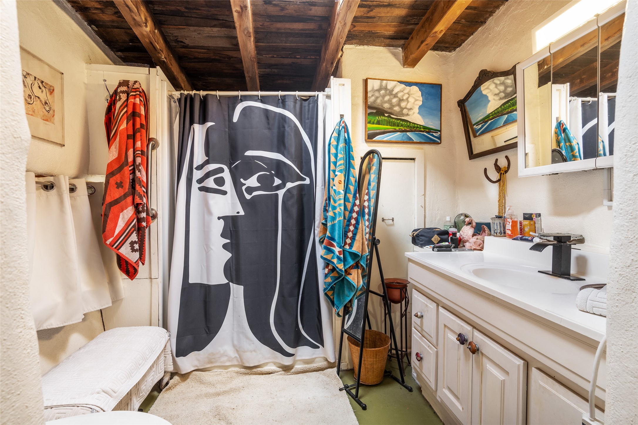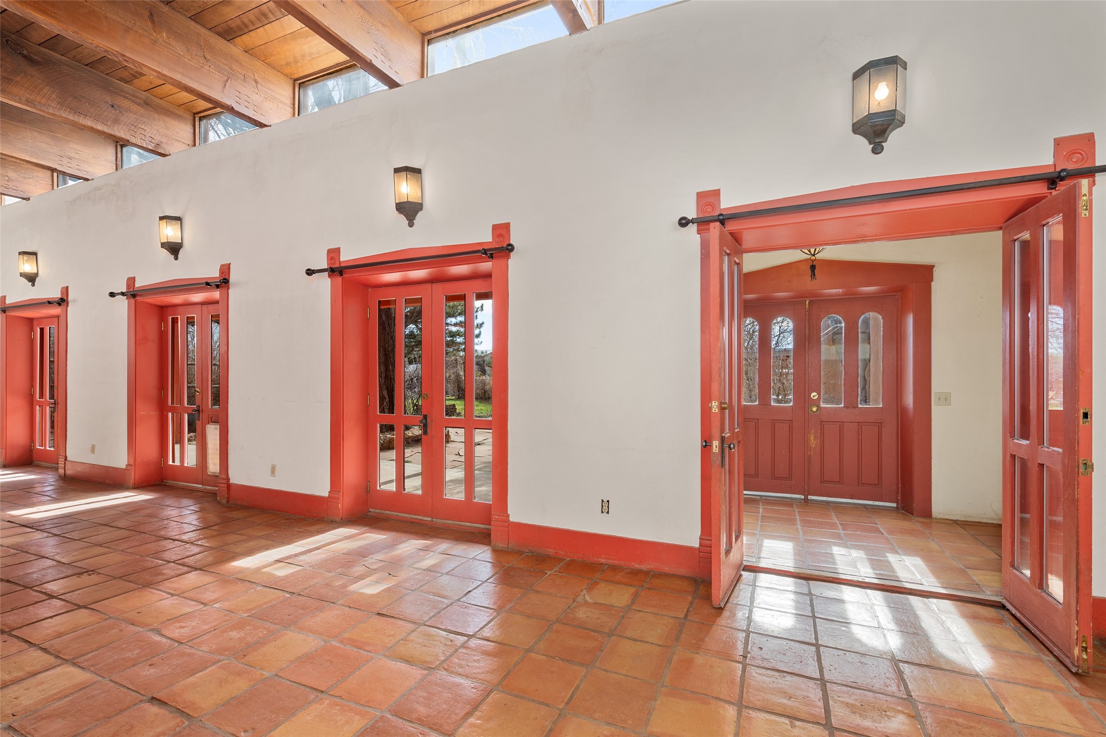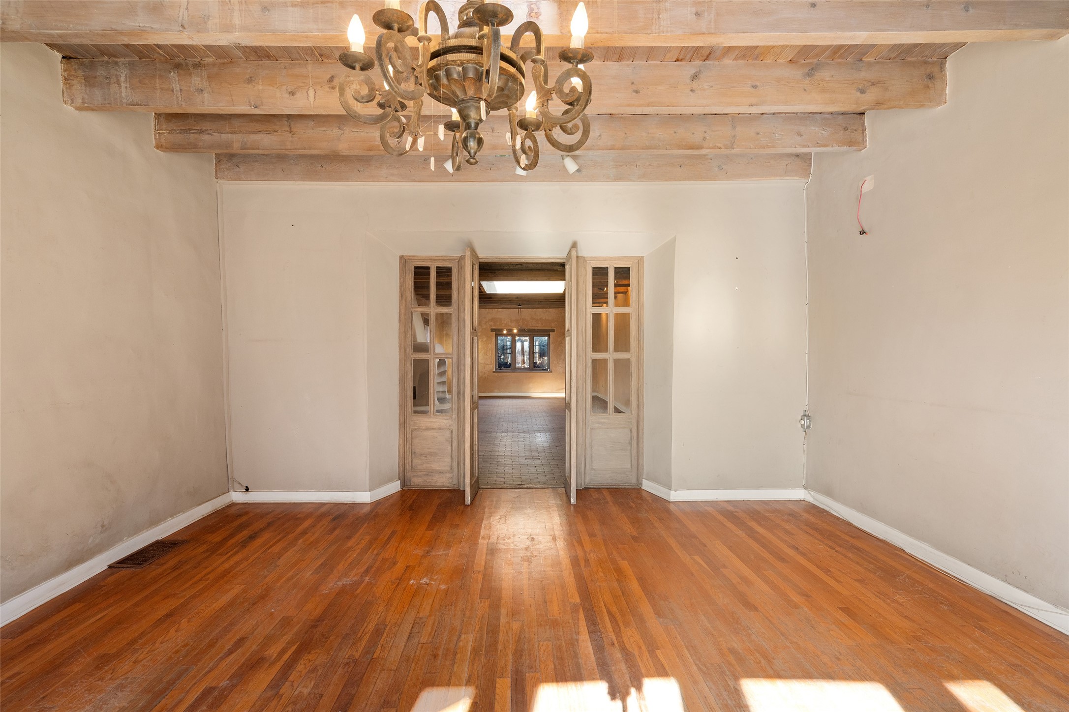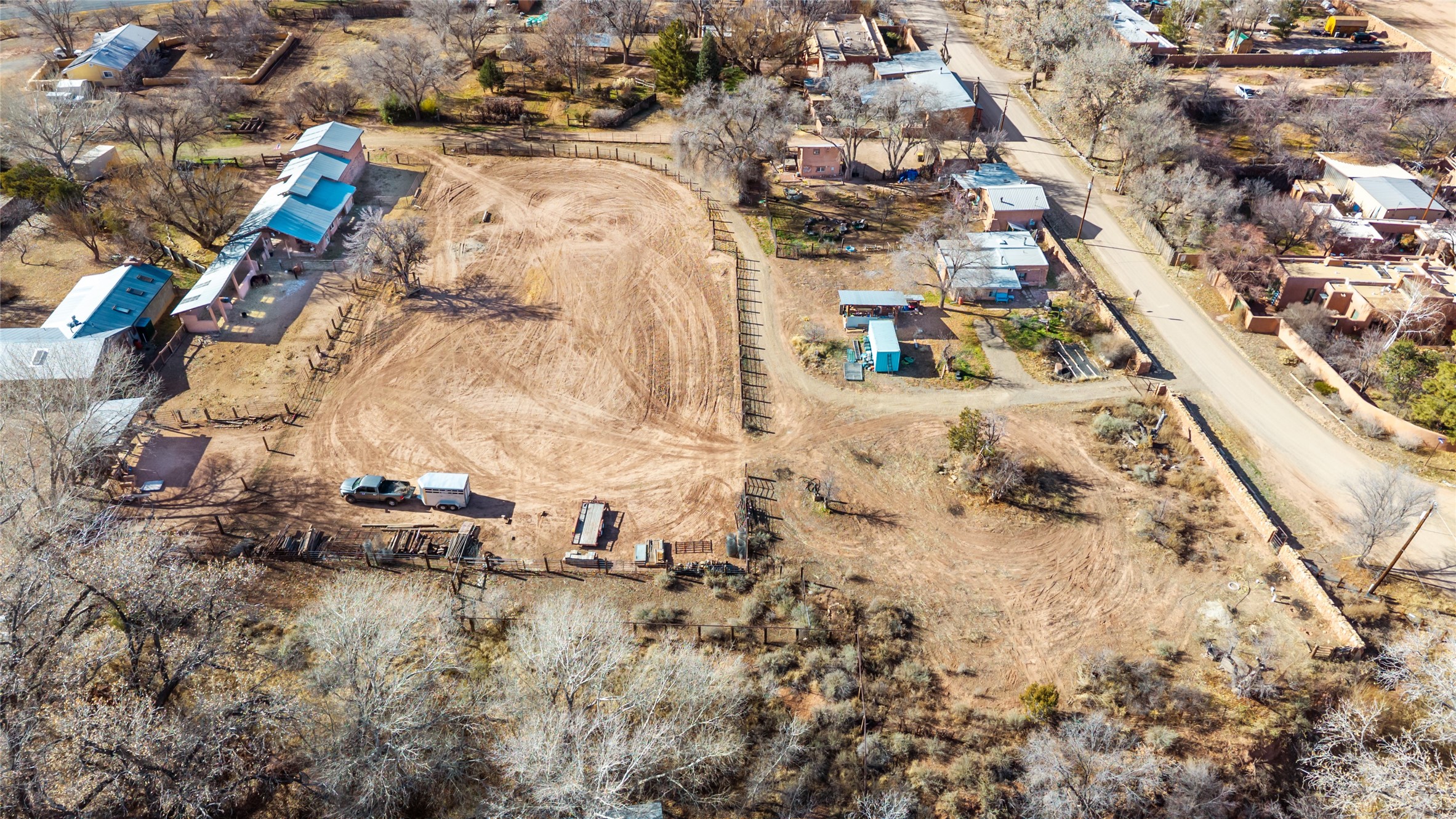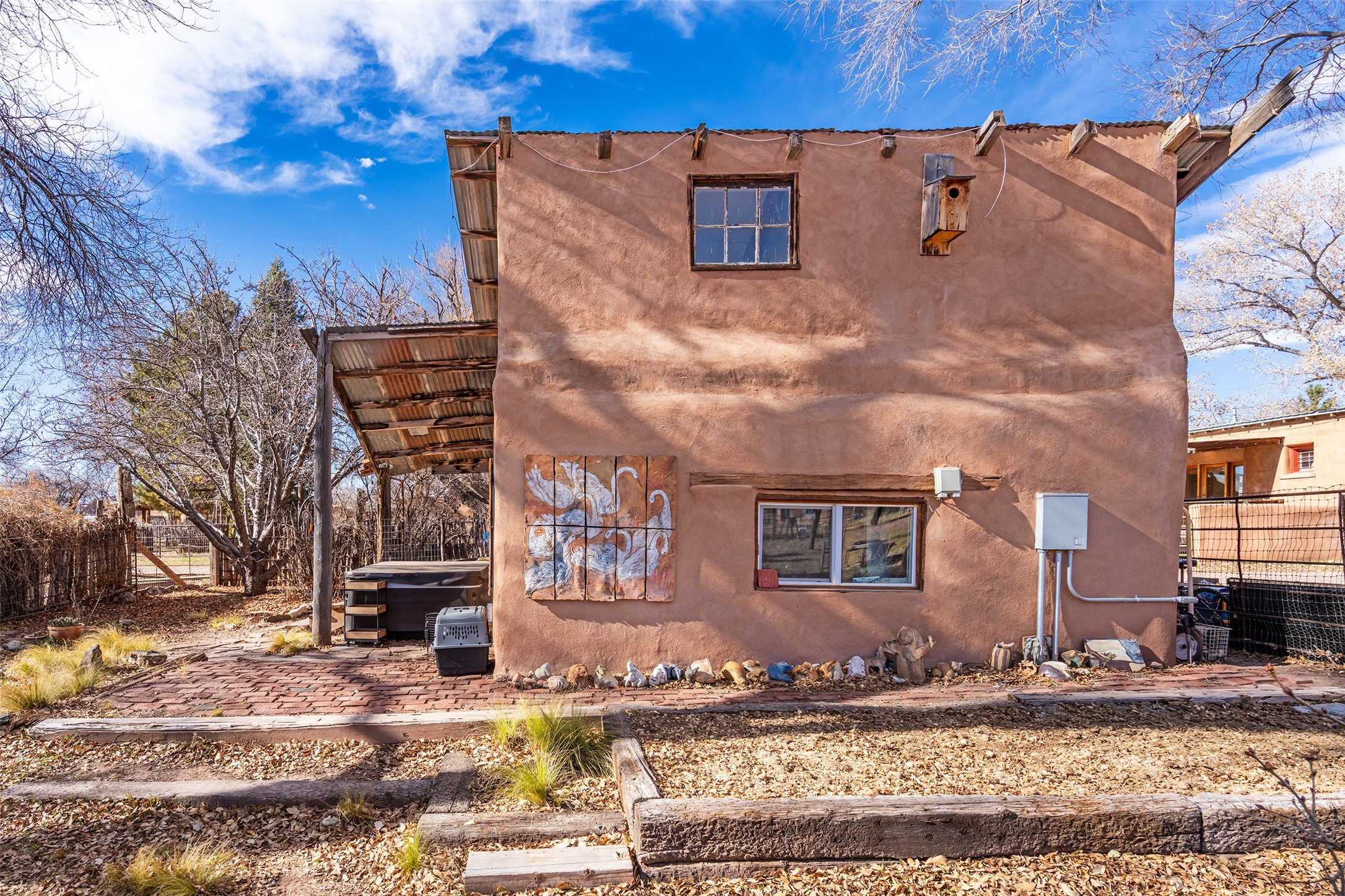 This historic Galisteo Hacienda presents a rare opportunity to restore an iconic adobe estate set on 3.7 acres within the village of Galisteo, one of the largest landholdings under Traditional Community zoning, which supports residential, live/work, and art gallery uses. Dating to the 1800s, the property once served as the headquarters of Don Jos Ortiz y Pino's sheep empire and later as the iconic Quartermill Farm - home, studio, and gallery of acclaimed artist Priscilla Hoback--making it uniquely suited to continue as a creative live/work estate. Located in the heart of Galisteo Village, the property includes a former gallery along a central village road and a substantial adobe main house privately set behind it.The hacienda features two residential wings with four bedrooms and three baths, a large library, grand living and dining rooms, multiple fireplaces, and authentic architectural details. A generous inner courtyard with mature trees, portals, and a koi pond creates a serene, campus-like setting ideal for both living and creative pursuits, complemented by fruit trees, gardens, and expansive village acreage.Equestrian facilities include a large handcrafted stone and adobe barn with spacious stalls and turnouts, wash rack, hay loft, tack room with bath, and an oversized arena, supported by a private well dedicated to the barn. Additional structures include an art studio with sink and loft, and a one-bedroom guest house--formerly the historic town bar--offering flexibility for guests, staff, or extended work use.The property is in need of renovation and restoration, presenting an exceptional opportunity for a discerning buyer to reimagine a historically significant live/work estate, blending residential life, creative enterprise, and community engagement in one of Galisteo's most storied village settings.