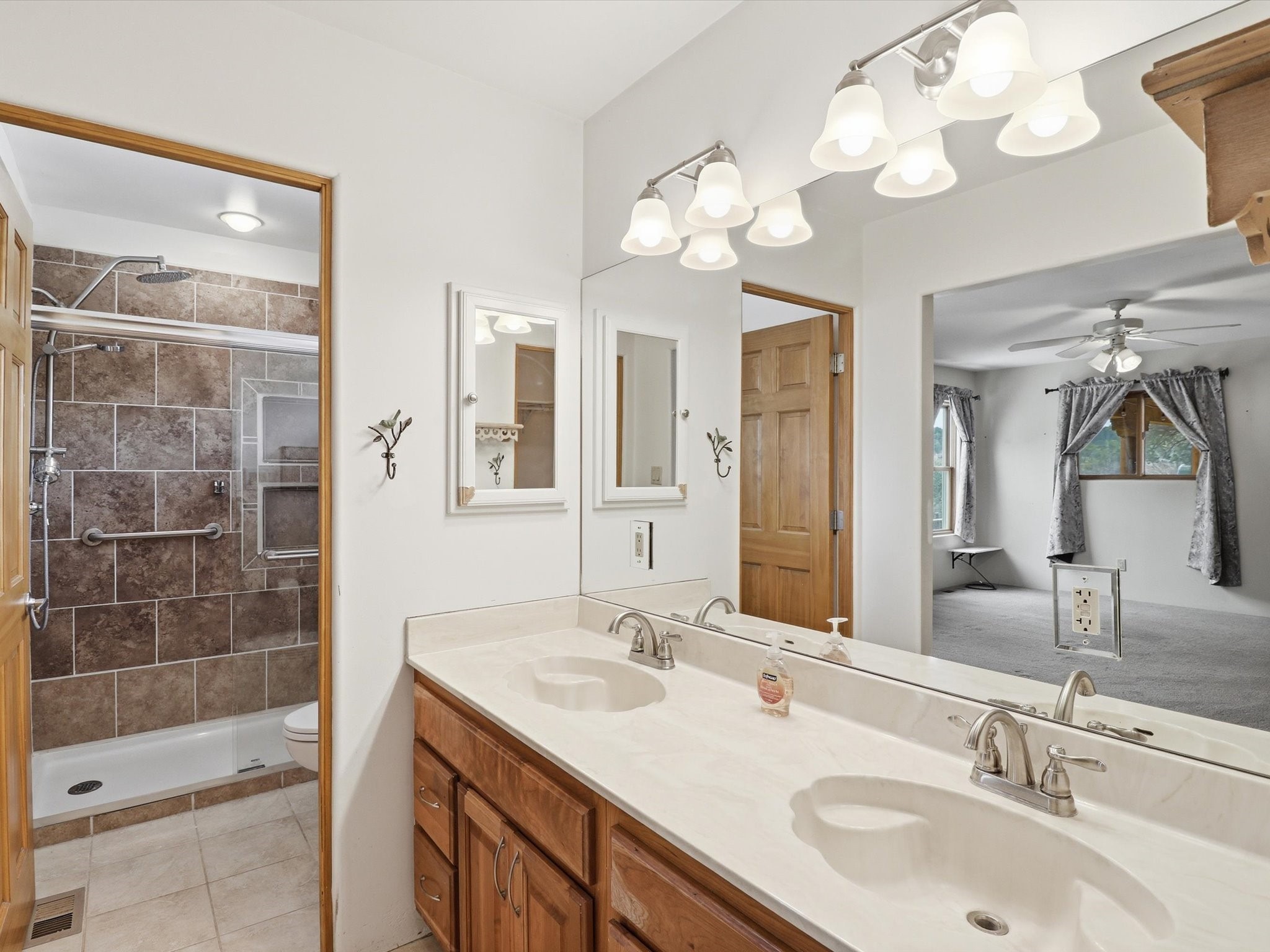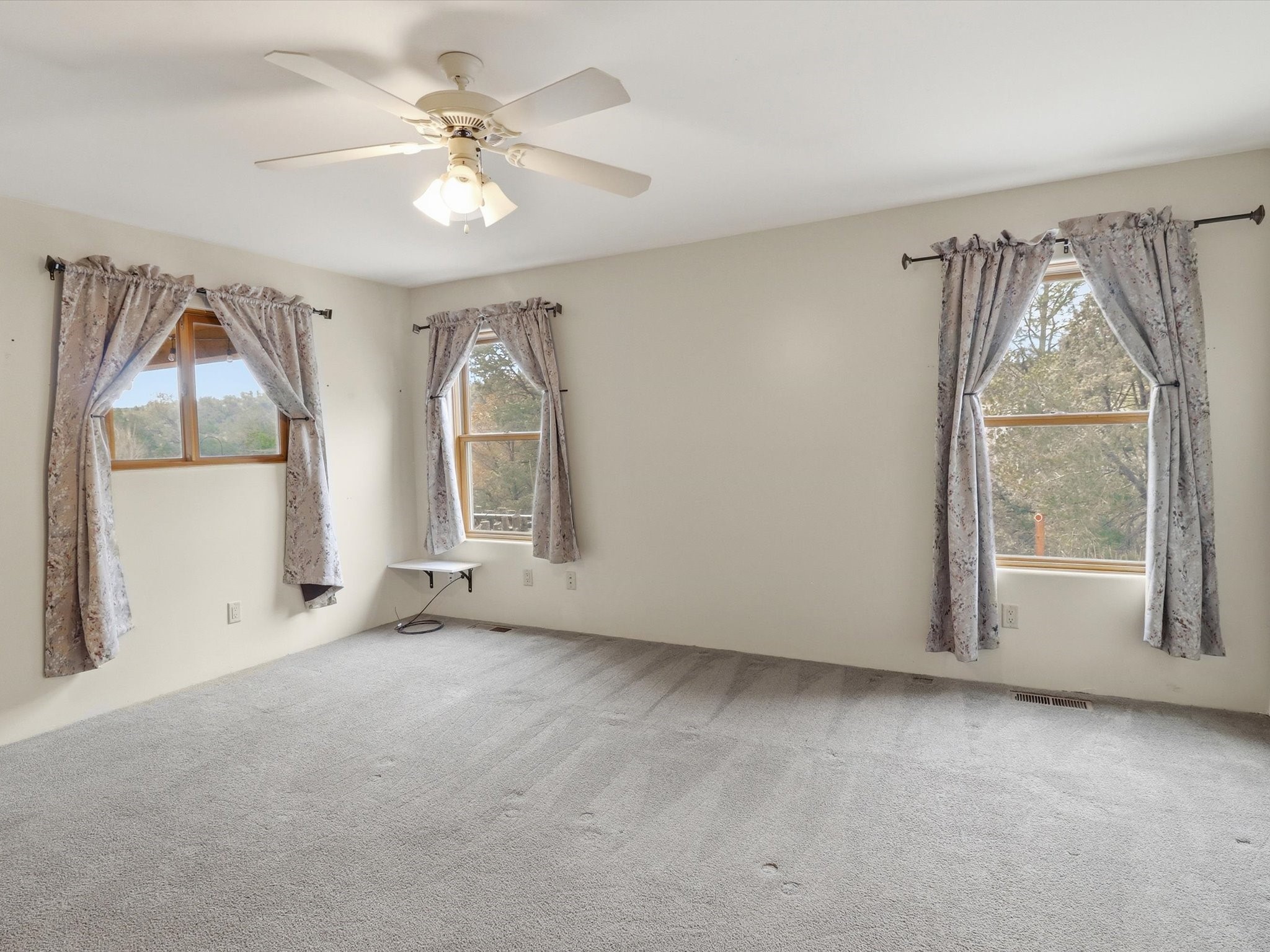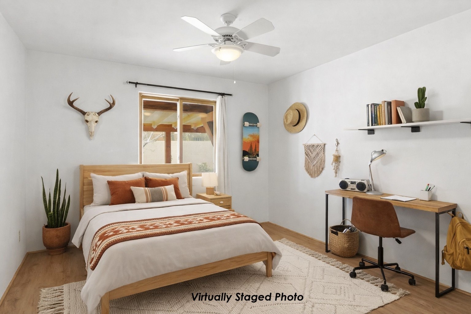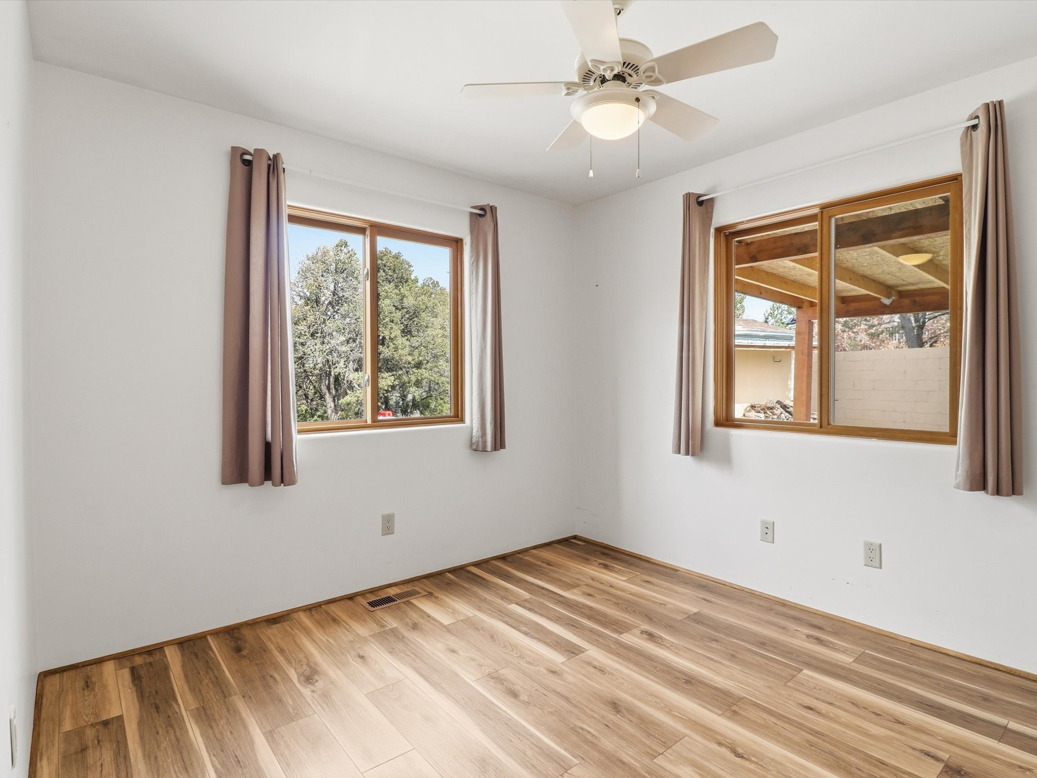 Step into this charming 3-bedroom, 2-bath single-level home, built in 2006, perfectly designed for comfort, style, and ease of living. From the moment you arrive, the spacious facade with a covered portal welcomes you inside.Enjoy the open-concept living area, where the vaulted ceiling, skylights, and abundant windows fill the space with natural light. The living room features a wood stove and flows seamlessly into the kitchen with ample cabinets, island breakfast counter, and all stainless-steel appliances.Step through the living area exit door to the covered patio, which overlooks the side yard, providing a relaxing outdoor space. A short walk leads to the Pecos River, whose soothing sounds can be enjoyed from the home. Additional features include laminate flooring, exterior storage, and a Propanel roof. The primary suite offers a spacious walk-in closet and an ensuite bath with his & her sinks and a glass-enclosed shower. With bright, inviting interiors and all living spaces on one level, this home offers comfort, convenience, and a touch of Santa Fe charm. A must-see at this price and condition!