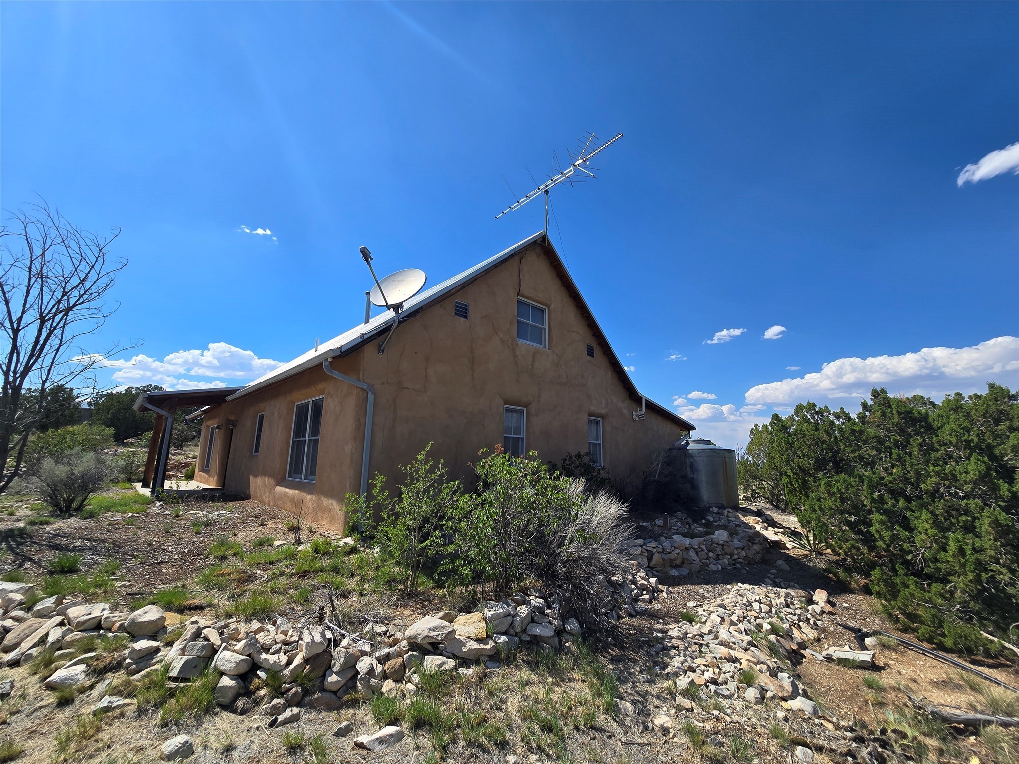 Off-grid living at its finest. Breath-taking panoramic views, quiet and serene amongst the natural flora and fauna of the beautiful, high deserts of New Mexico. 53 acres located outside the historic Village of Cerrillos, nestled between Santa Fe and Albuquerque. This strawbale home has all the amenities. Fully solar-powered home, radiant floor heating, a wood stove, rain catchment system attached to a pitched, metal roof, and an enchanting open-concept kitchen and common area. One main bedroom, laundry room, full bath, and a loft, accessible by a spiral staircase from the common area. . Recently renovated at the end of 2025.