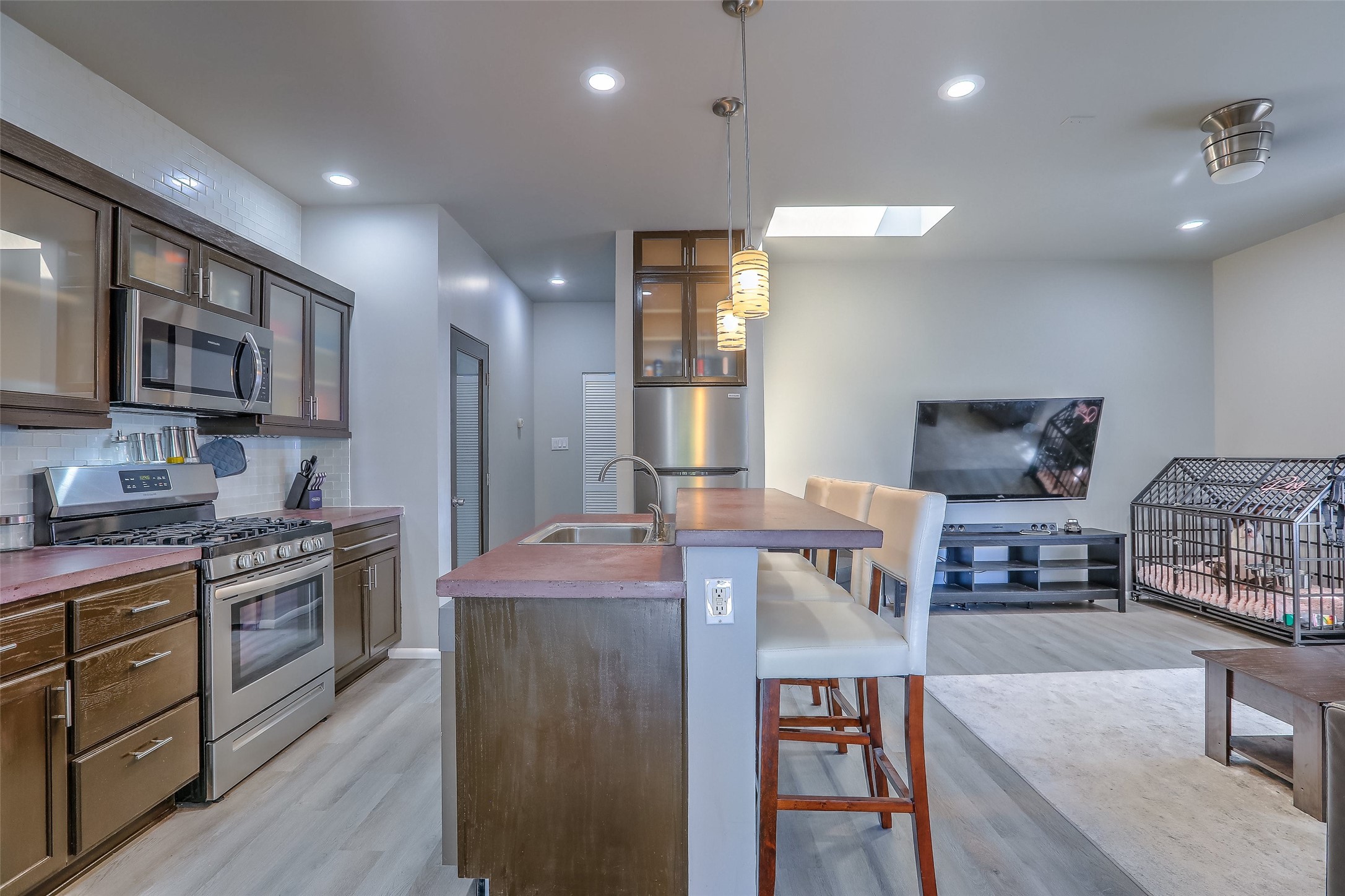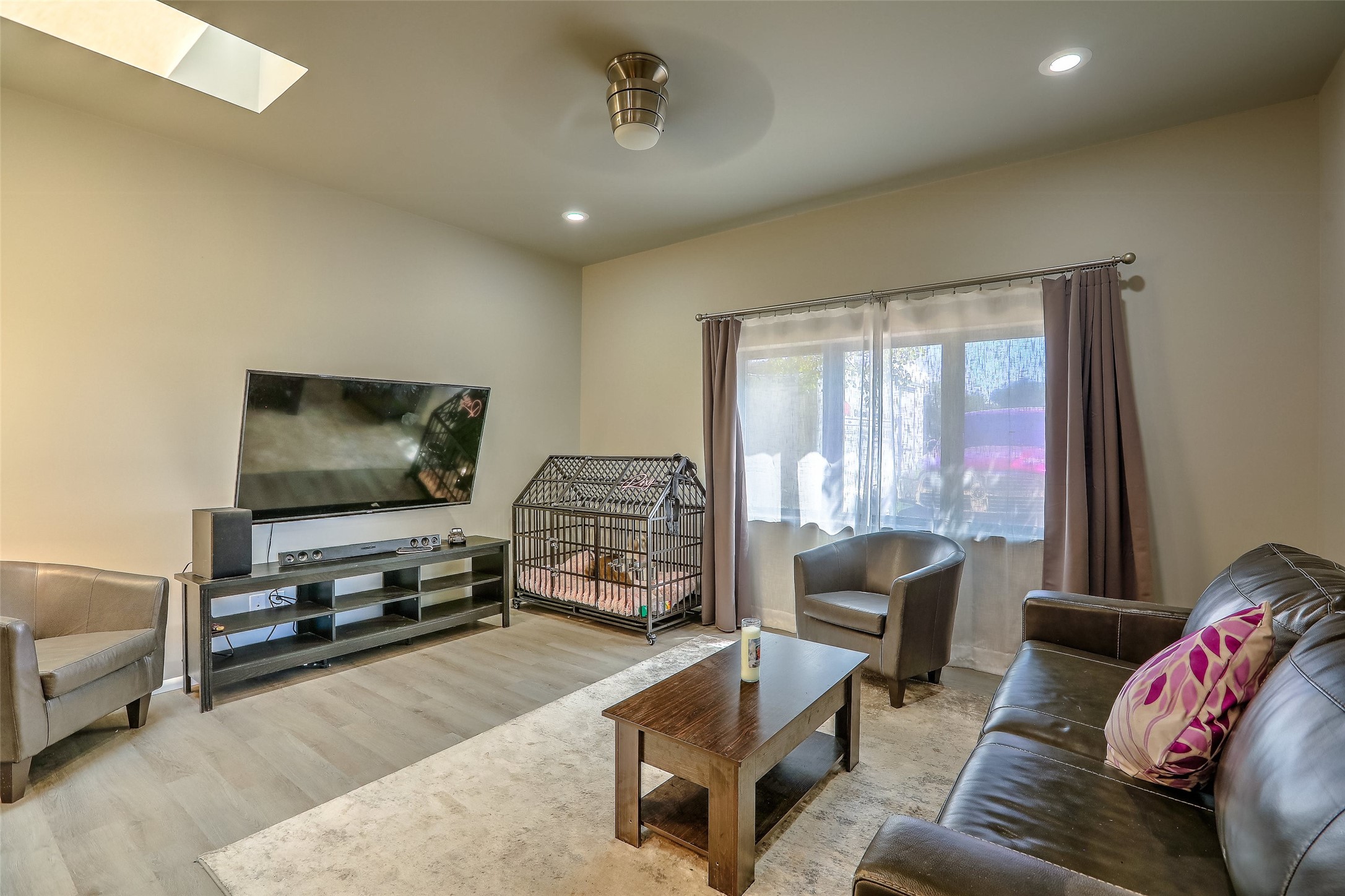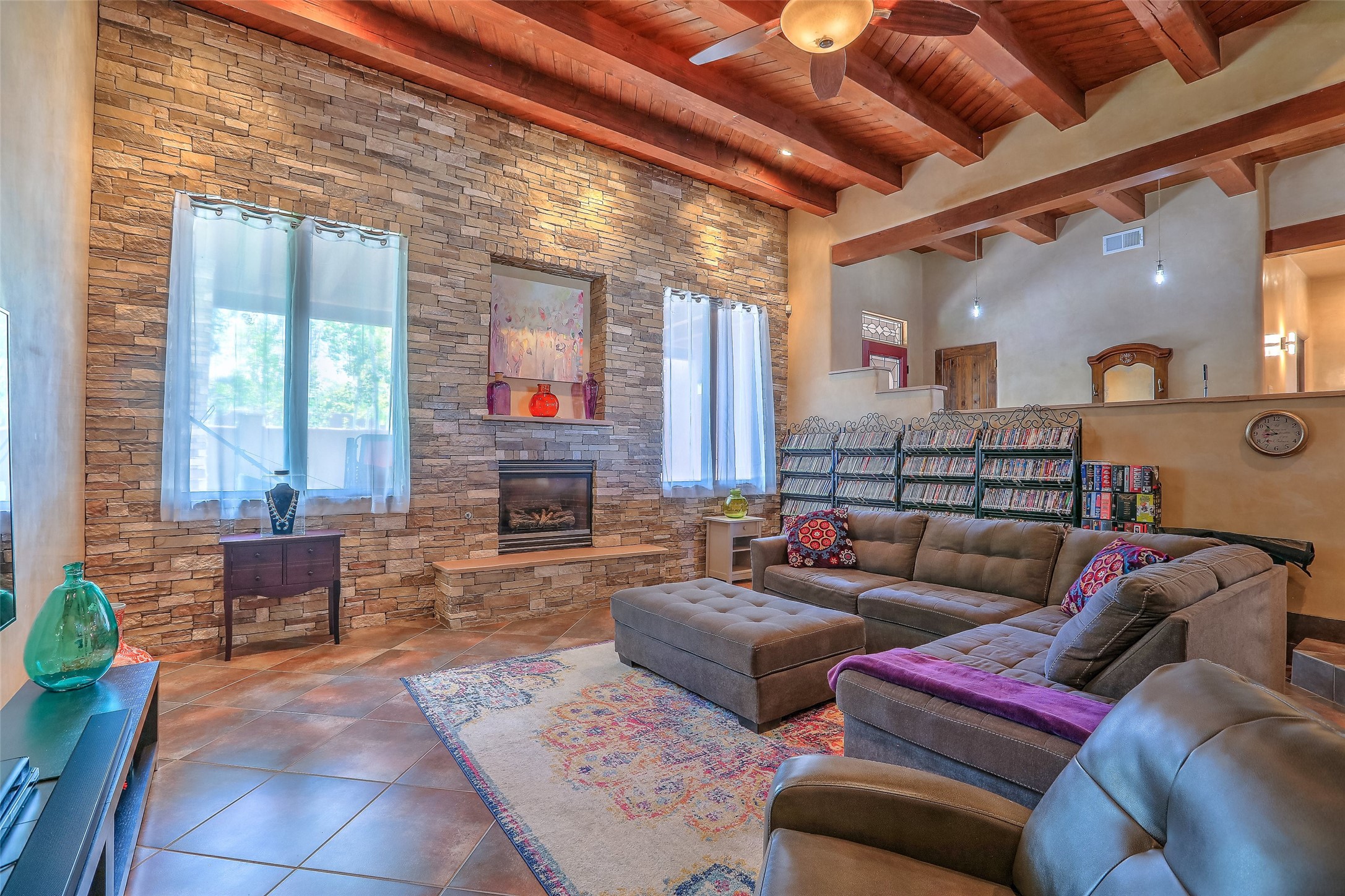 No showings until Mon 1/12. Priced to sell! Don't miss our on this opportunity!!! Absolute Stunner in Santa Fe! Perfect for a Large Family or Investor. Walk into the 2,764 SF 3 Bedroom, 3.5 Bath Primary Home and be greeted with Luxury! A Huge Sunken Family Room creates a Cozy and Intimate Atmosphere for Family Gatherings centered around a Fireplace accented with a Stonewall covering the entire South Wall. Magnificent Vigas and Diamond Finish Walls provide the Perfect Touch! The Kitchen is a True Chefs Delight! The Main Home includes an En Suite, Office, Radiant Floor Heating, Central Vac System, Water Softener System, and a High Efficiency Tankless Water Heater. The Comfy Primary Suite is equipped with its own Fireplace offering the Ultimate Relaxation. Attached to the Main Home is a Fabulous 1,008 SF Efficiency Suite with its own Private Entrance and includes 1 Bedroom, 1 Bath, Office, Full Kitchen, Laundry Room and Living Area. Behind the Full Size Enclosed Basketball Court you will find an additional 1,560 SF Guest Home that was built in 2022. This Modern New Home offers 4 Bedrooms; a Primary Suite, an En Suite, and 2 Guest Rooms and 3 Baths. Features include all Tile Flooring, Tankless Water Heater, TPO Roof, Fenced Yard and its own Private Road. The Two Large (480 SF Each) Utility Sheds/Carports also convey. Don't Miss Out on this One of a Kind Opportunity!!
