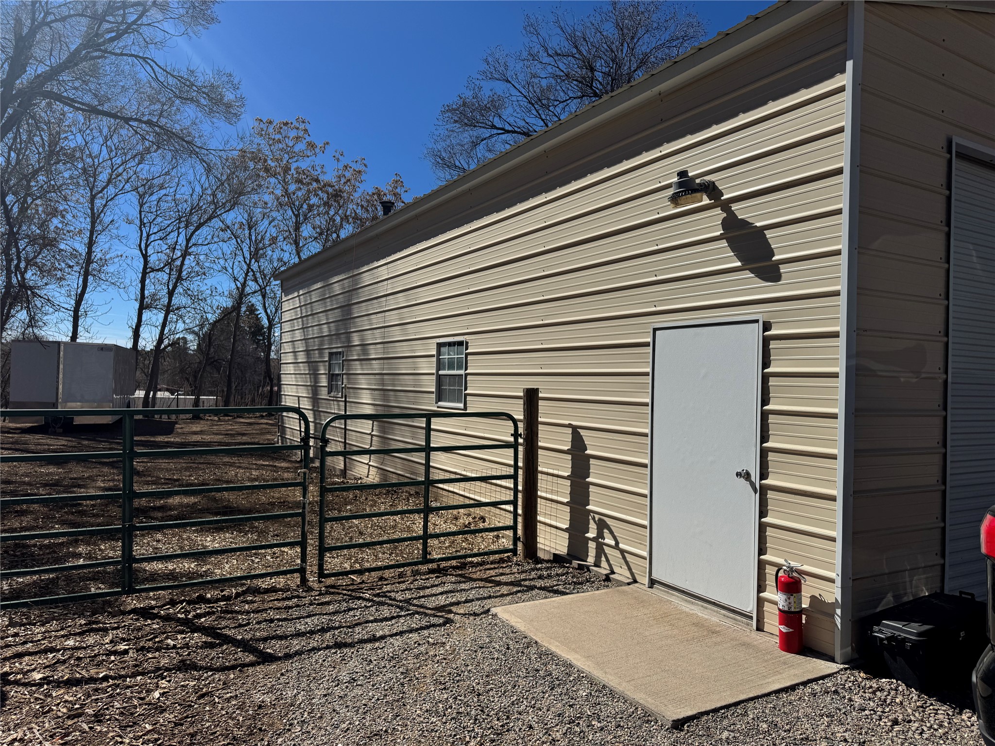 This rare Santa Fe County (Namb area), fenced horse property has water rights, mountain views, lots of shade trees, a barn, a shop, and a greenhouse. Situated on 1.389 lush, irrigated and fenced acres, this 3-bedroom, 2-bath, custom northern NM style home offers 2,196 sq ft with refrigerated-air, HVAC, ceiling fans, vaulted pine ceilings, exposed vigas, solid ash hardwood floors,and a spacious loft for hobbies or relaxing. Open living area features high-efficiency Acucraft wood-burning fireplace insert. Kitchen includes granite countertops, island, custom cabinets with pull-out shelving, wine storage, and quality appliances. Primary suite offers walk-in closets, spa-style bath with air-jetted tub, and natural travertine tile. Private guest suite includes separate exterior entrance and ensuite bath with travertine tile and cave horse art accent tiles by a local artist. Outdoor living features flagstone portals and walkways, ceiling fan, 1620 Trex deck, patio with fire pit, mature landscaping with drip irrigation, fruit trees, 1220 greenhouse, raised-bed garden, solar-powered gate, perimeter fencing (partial latilla), RV trailer parking and horse trailer parking. Horse amenities include grassy fenced turnout, 3035 three/four stall barn with partially insulated feed/tack room, huge area for hay storage, large corral, and ability to ride out from the property on shady trails (also Bureau of Land Management access within 3 miles). The 3045 metal building "dream shop" features three roll-up doors, reinforced slab for heavy-duty car lift installation, 110V and 220V electricity, workbench with lower shelf, generous fluorescent lighting, and two overhead piping systems (shop vacuum and compressor). All of this plus deeded acequia water rights and a private well. This unique offering--just off the High Road to Taos--is set against beautiful views of Sacred Heart Church, Santa Fe Ski Basin, and Santa Fe Baldy, just minutes from Pojoaque and an easy drive to Santa Fe and Los Alamos. Bring all of your animals, and move right in! Come visit and you will want to stay forever!