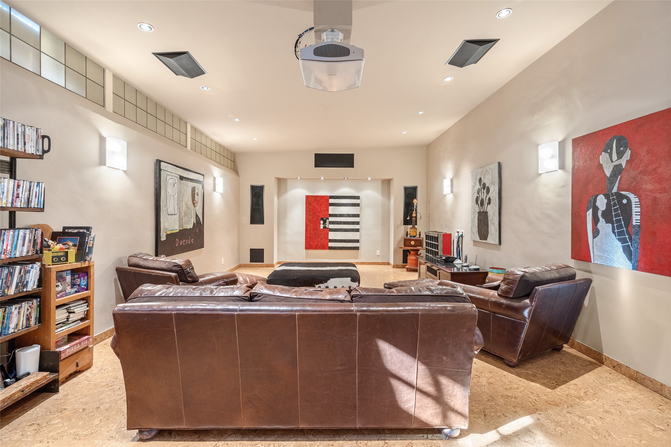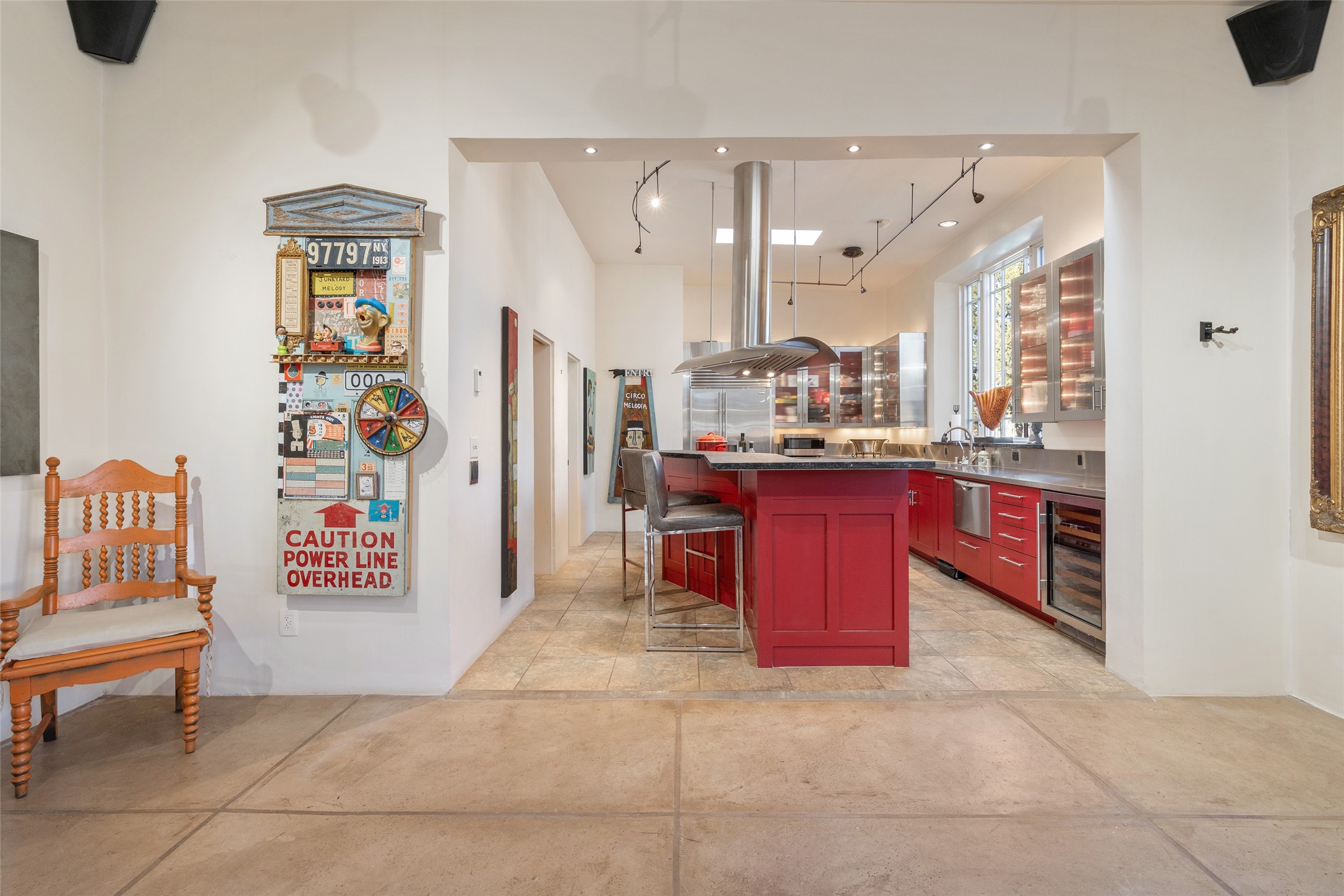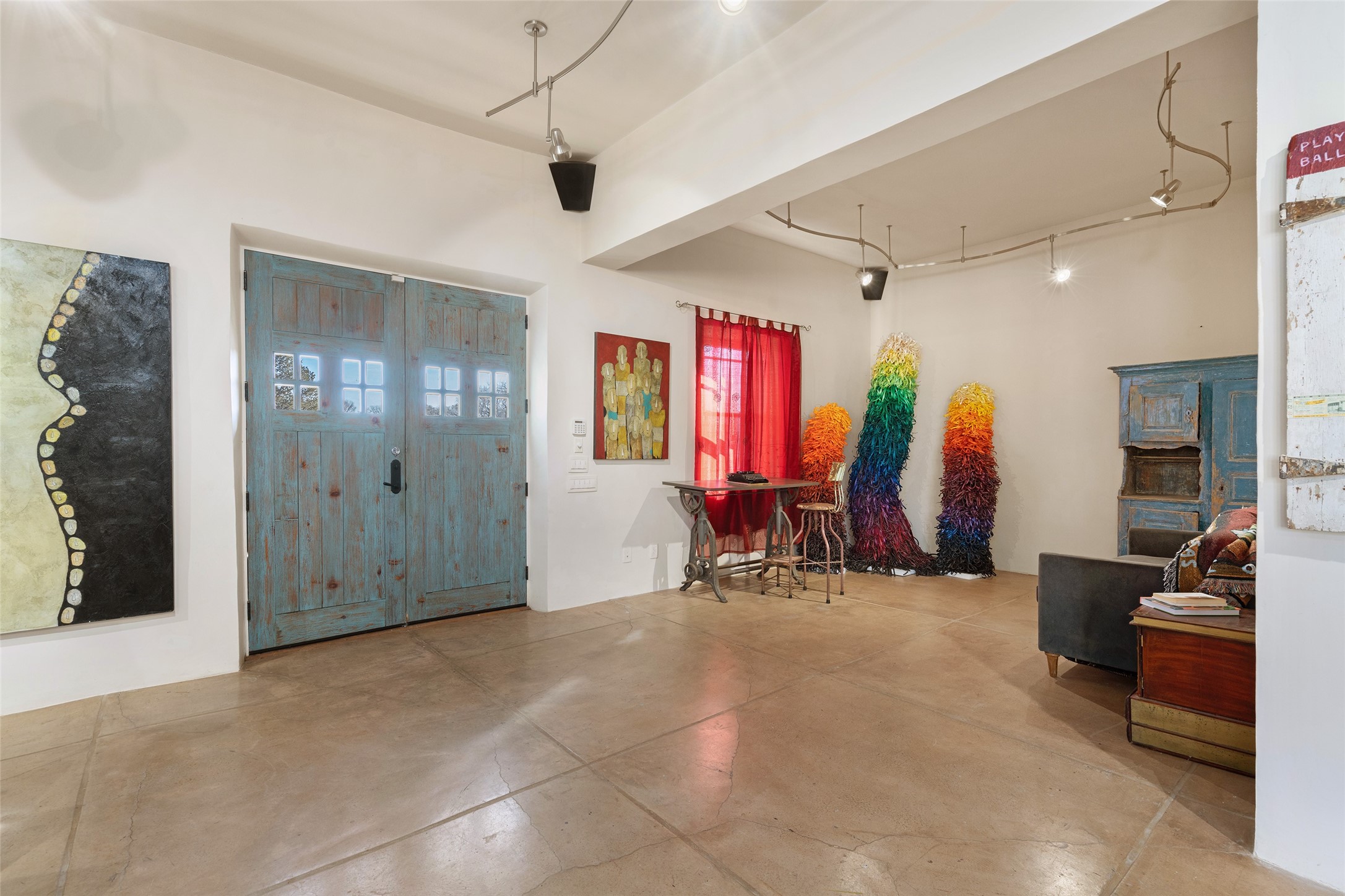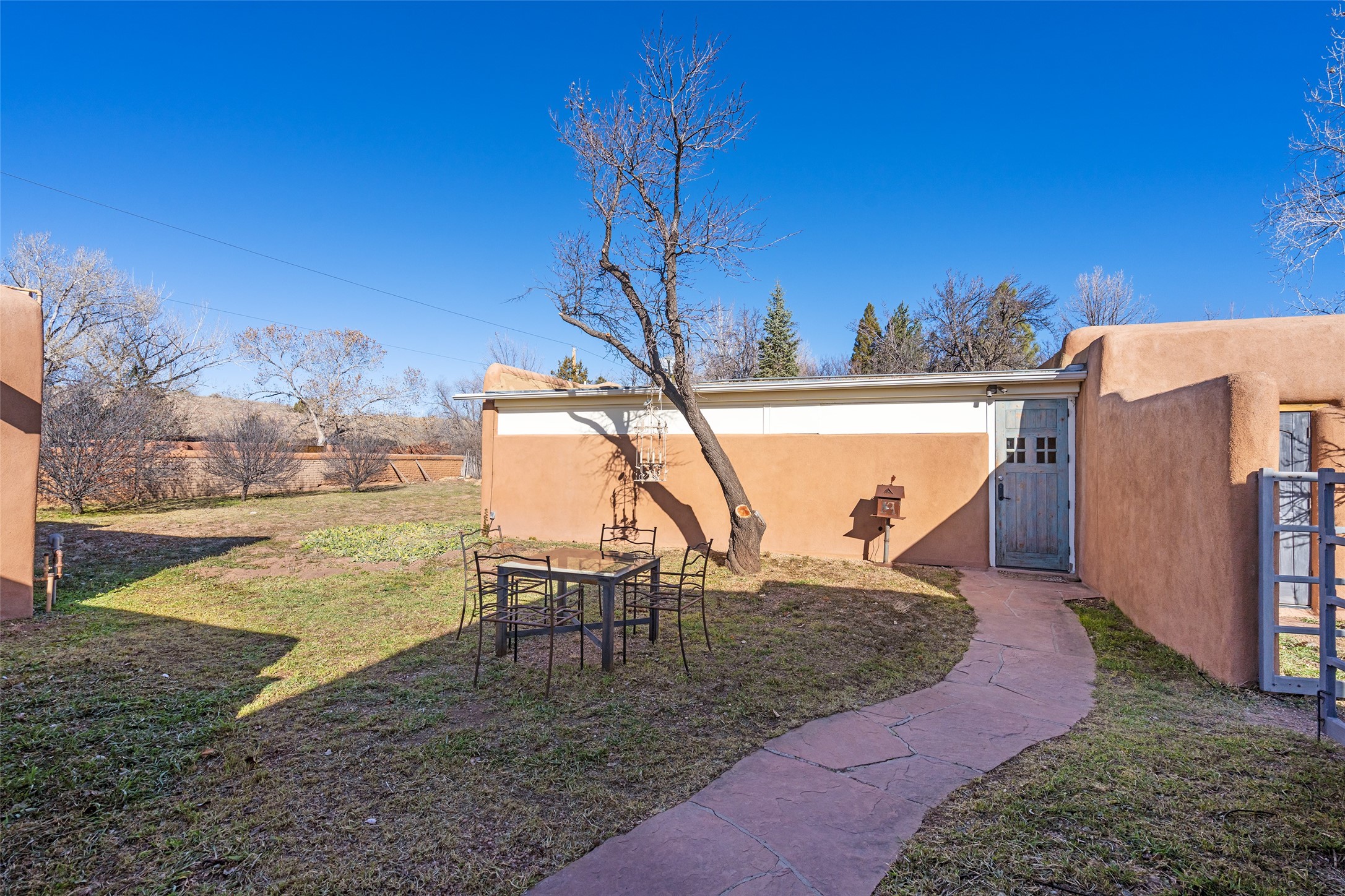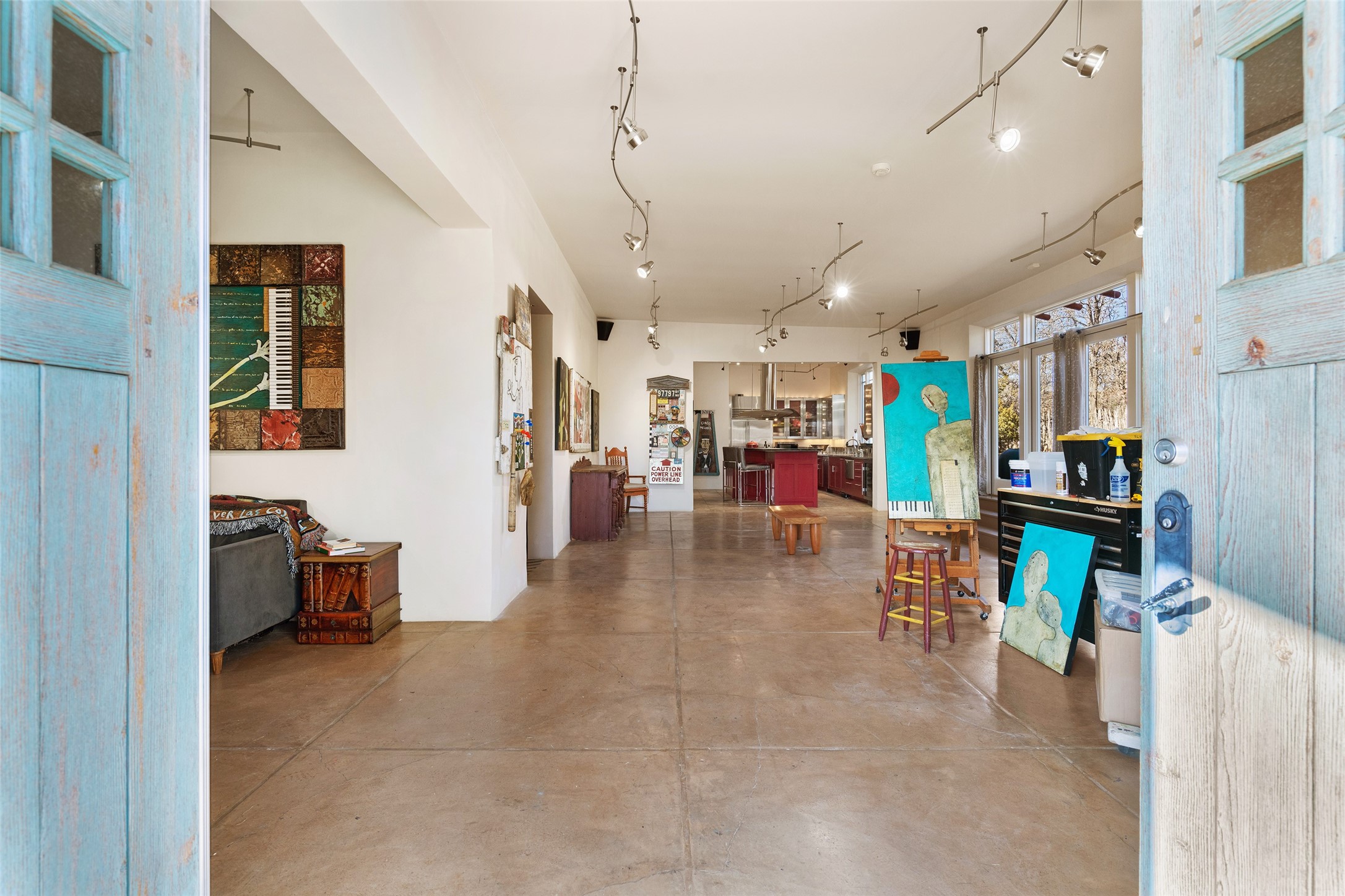 Something Old. Something New. Rare Commercial Opportunity.An exceptional and singular compound in the heart of historic Galisteo, this remarkable property weaves together centuries of heritage with thoughtful modern design. Dating to the 1800s, the 3-bedroom, 2-bath double-adobe Main House once housed the beloved La Mancha Restaurant (1959-1971), where the Ortiz family's New Mexican cuisine earned widespread acclaim.Tastefully renovated in 2012, the Main House features new brick floors, interior plaster walls, updated kitchen and baths, modern plumbing fixtures, and skylights, while honoring the home's original character, authenticity, and soul.Complementing the historic residence is a striking studio/gallery building originally designed by award-winning architect Beverly Spears and constructed in 1995 using Rastra construction for artist Linda Durham. A comprehensive 2006 remodel transformed the space into an extraordinary studio, gallery, and entertaining venue, featuring soaring 12-foot ceilings, exceptional lighting, integrated sound throughout, a home theater with surround sound and retractable screen, a bath, and a chef's kitchen equipped with Wolf, Sub-Zero, Miele, and Fisher & Paykel appliances, Bob Pepper custom cabinetry, and a generous pantry.The inviting Guest House, built in 2006, offers a warm and comfortable retreat with a living room, bedroom with fireplace, kitchen, and bath, ideal for visitors or extended stays.Commercially zoned and among the few such properties in Galisteo, this compound presents rare possibilities for a boutique B&B, restaurant, gallery, or creative retreat. Enclosed by historic adobe and stone walls and graced with fruit trees, this truly special offering invites vision, imagination, and opportunity in one of New Mexico's most cherished villages.