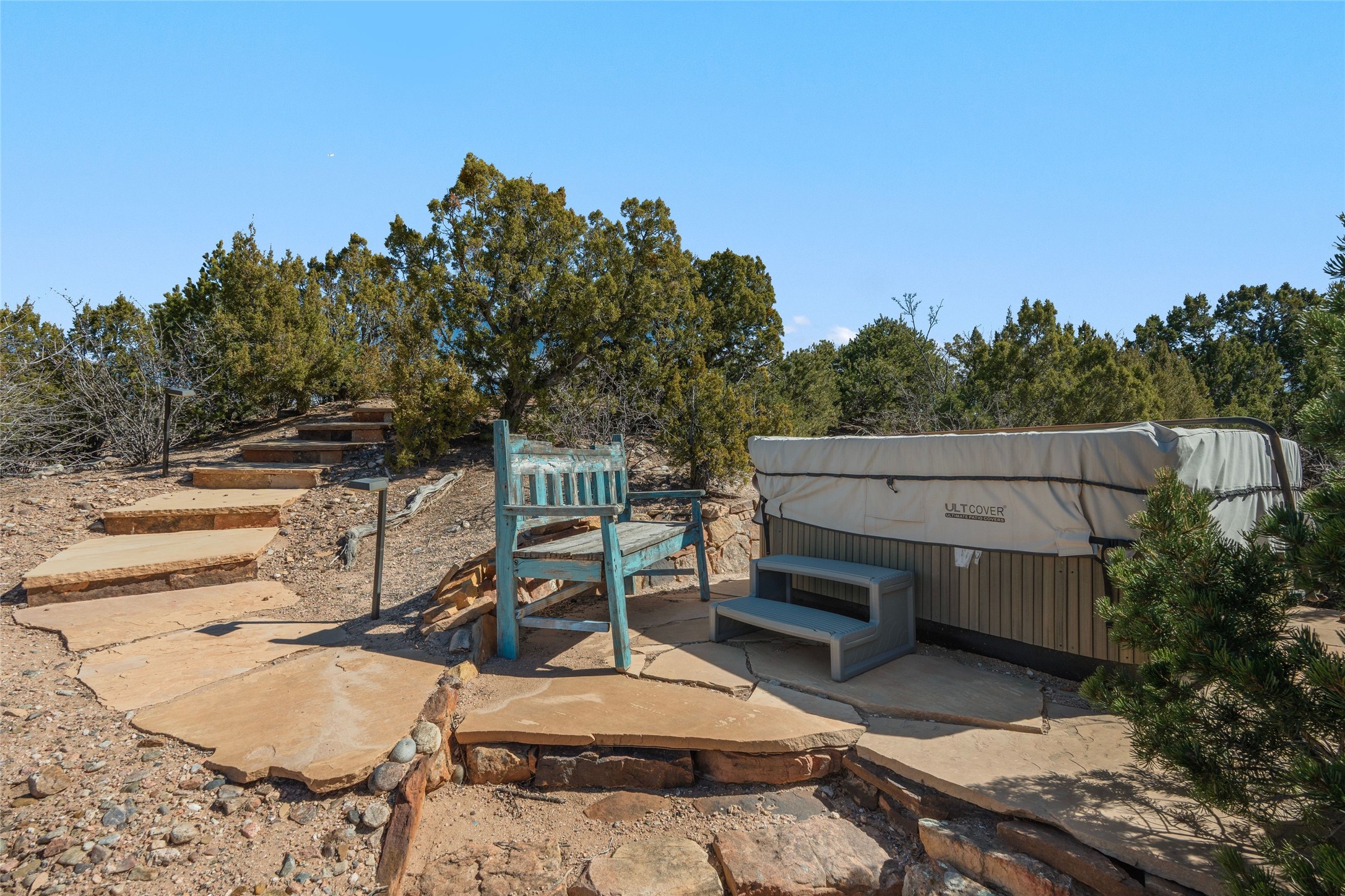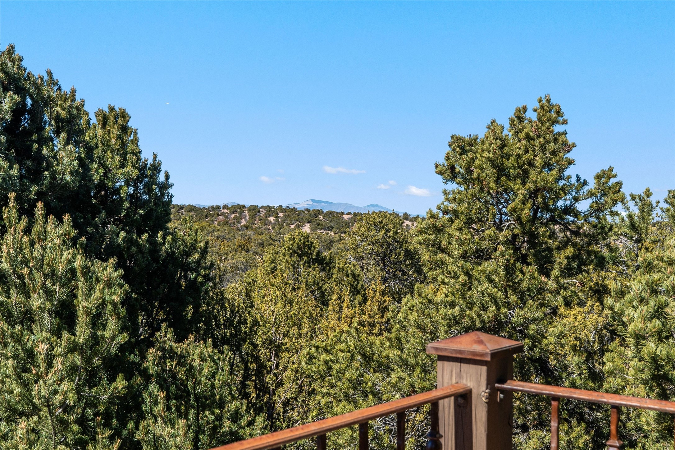 This custom-built 3 bedroom, 3 bathroom home in the gated community of Tesuque Hills offers the perfect escape from the downtown frenzy, while being less than 15 minutes from the heart of Santa Fe. Here, you enjoy the tranquility of the northern foothills with quick access to everything the city has to offer. Set on a tree-covered, 1-acre lot, the home is surrounded by wooded views that create a peaceful and private retreat. Multiple portals invite you to relax and take in the natural beauty, while sunsets filter through the trees and paint the sky in unforgettable color. The spacious interior is thoughtfully designed to feel open to nature, with generous living areas that capture both light and views, seamlessly blending indoor comfort with the outdoors. At the heart of the home is an amazing Chef's kitchen, built for cooking and entertaining. Wrap-around granite countertops, custom cabinetry, double ovens, stainless steel appliances, and a wine refrigerator make it ideal for everything type of chef. The open flow into the main living areas ensures the cook is always part of the conversation. Nearly all of the home is single level, with the primary suite set up a few steps above the main floor. From its own deck, enjoy stunning mountain views and peaceful mornings. One guest room offers an ensuite bathroom while the third bedroom could be used as an office. Slate floors with in-floor radiant heat and classic viga/beamed ceilings further enhance the warmth and authenticity of the home. A secluded hot tub provides the perfect place to stargaze beneath New Mexico's brilliant night skies. Even further up the hill, a fire table creates a magical gathering space. Imagine spending evenings there with friends and family, taking in sweeping, "killer" views of the majestic Sangre de Cristo Mountains--a truly unforgettable backdrop. Experience for yourself why the serenity--yet close proximity--of the northern foothills remains one of Santa Fe's best-kept secrets.